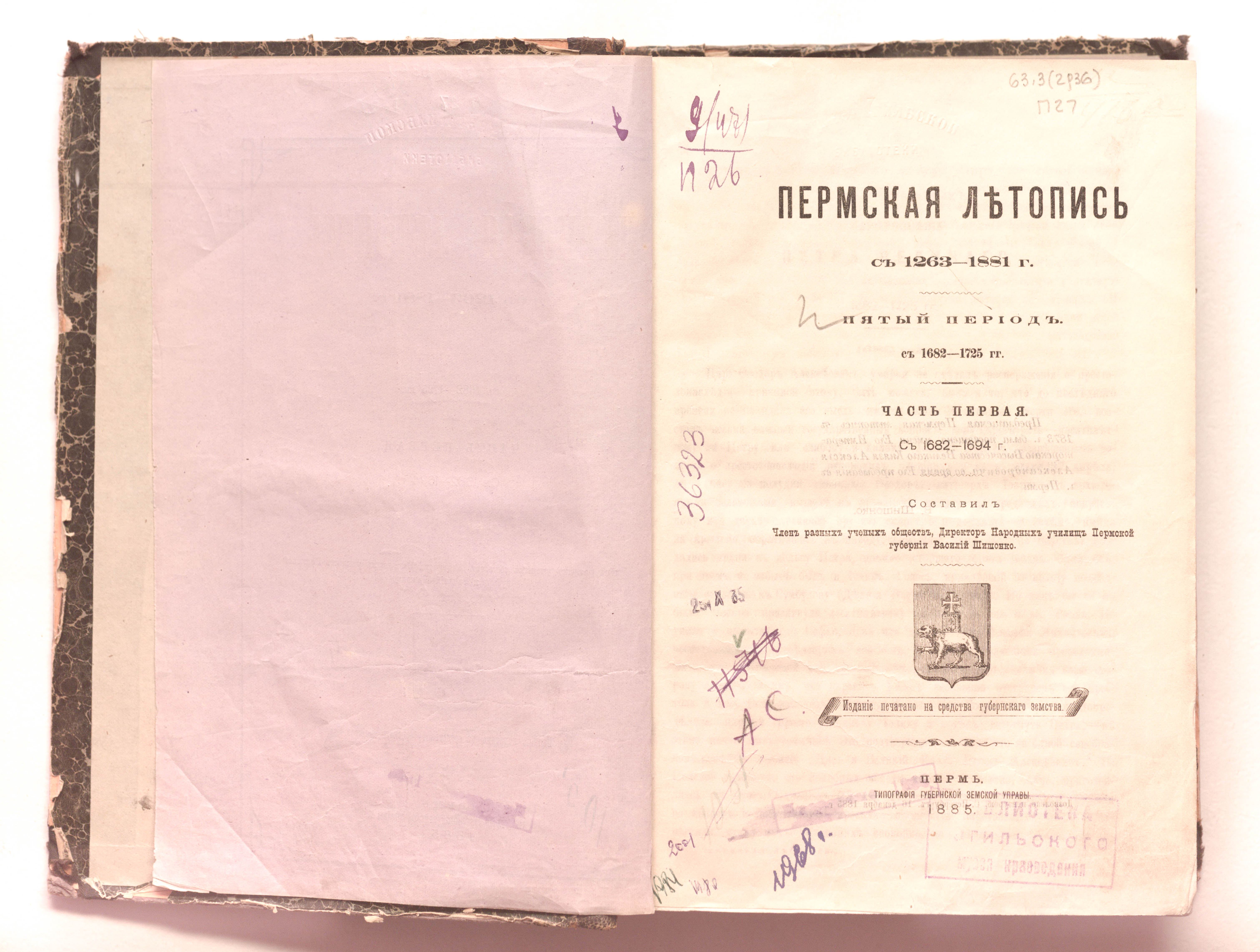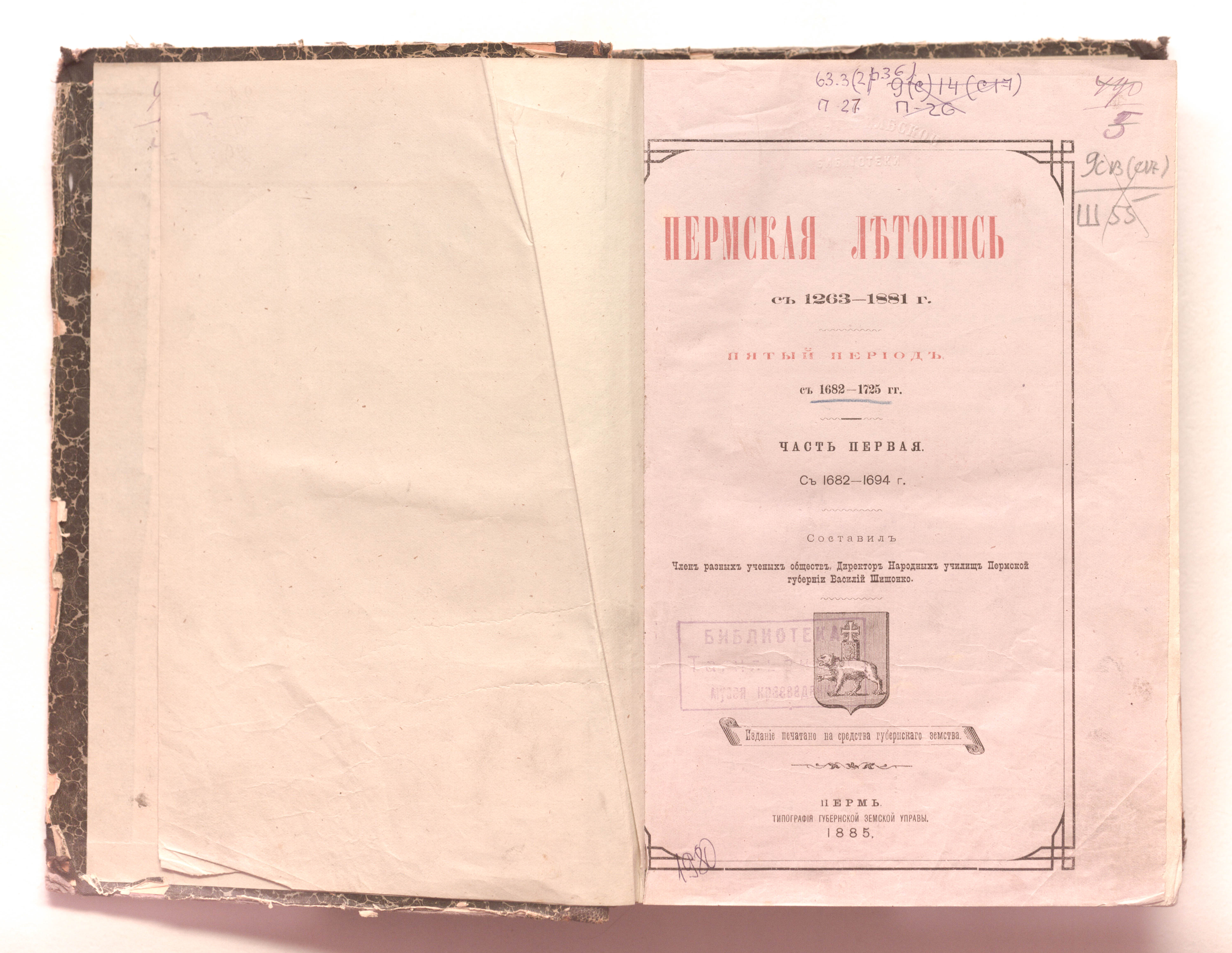 Пермская летопись с 1263- 1881 г. : научное издание / сост. чл. разных учен. о-в, директор нар. училищ Перм. губ. Василий Шишонко. – Издание печатано на средства Губернского земства. – Пермь : Типография Губернской Земской управы, 1881 - 1889.