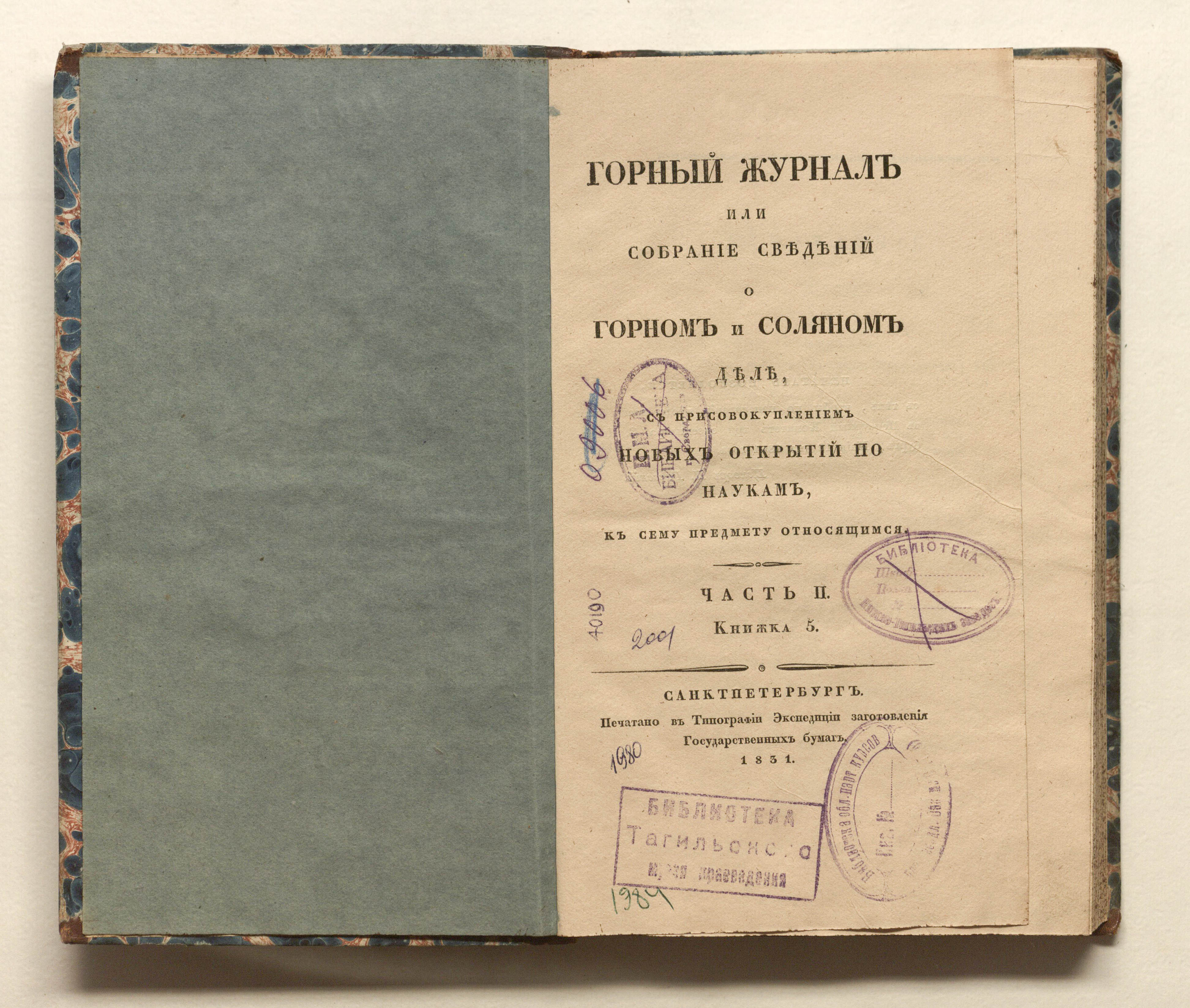 Ч. 2. Кн. 5. – Санкт-Петербург : печатано в типографии Экспедиции заготовления государственных бумаг, 1831. – [4], 163-329, [1] с. : 1 л. Черт. ; 24х14 см.