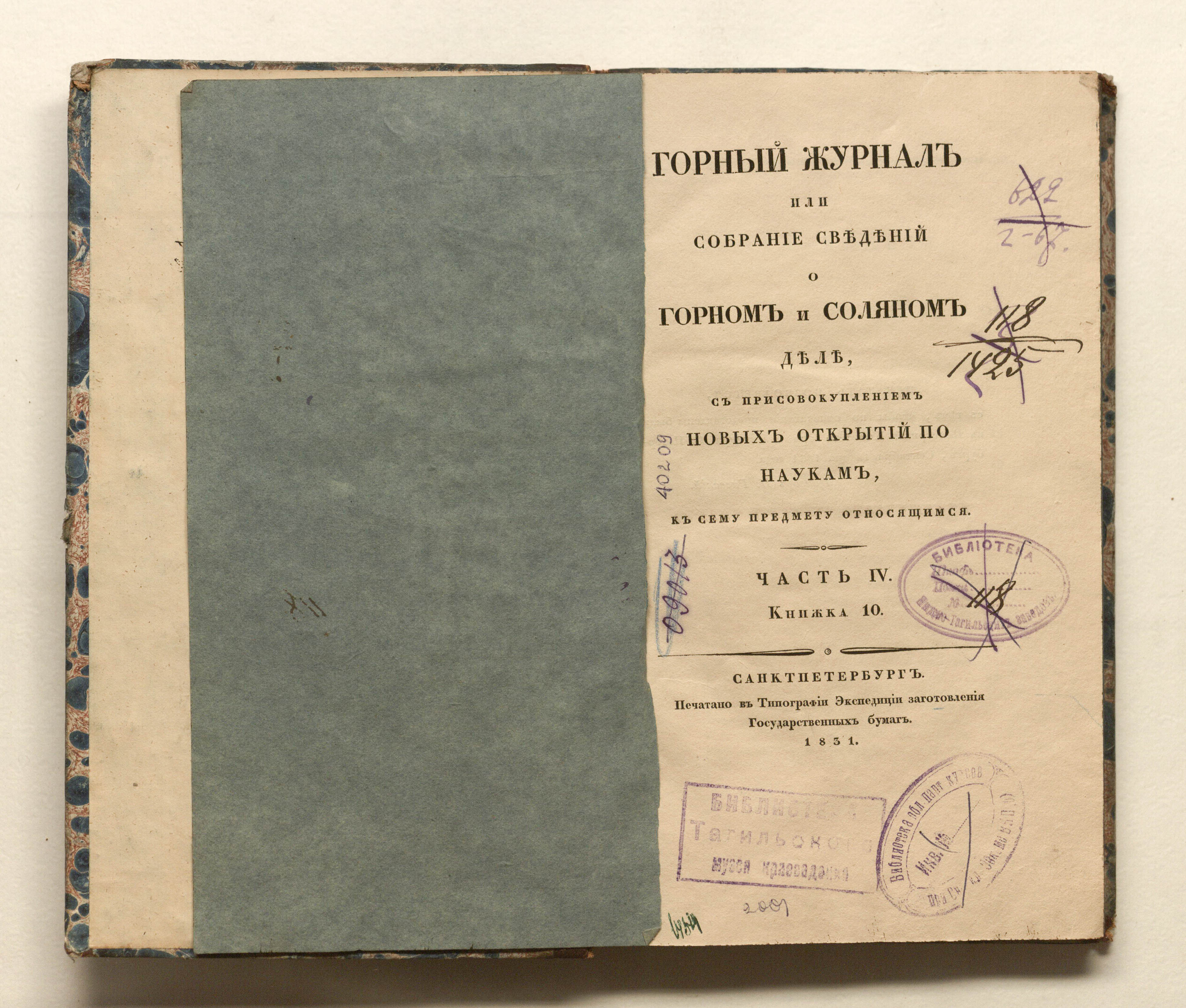 «Библиотека Нижне-Тагильских заводов. № 118» (изд. обл., тит. л.);