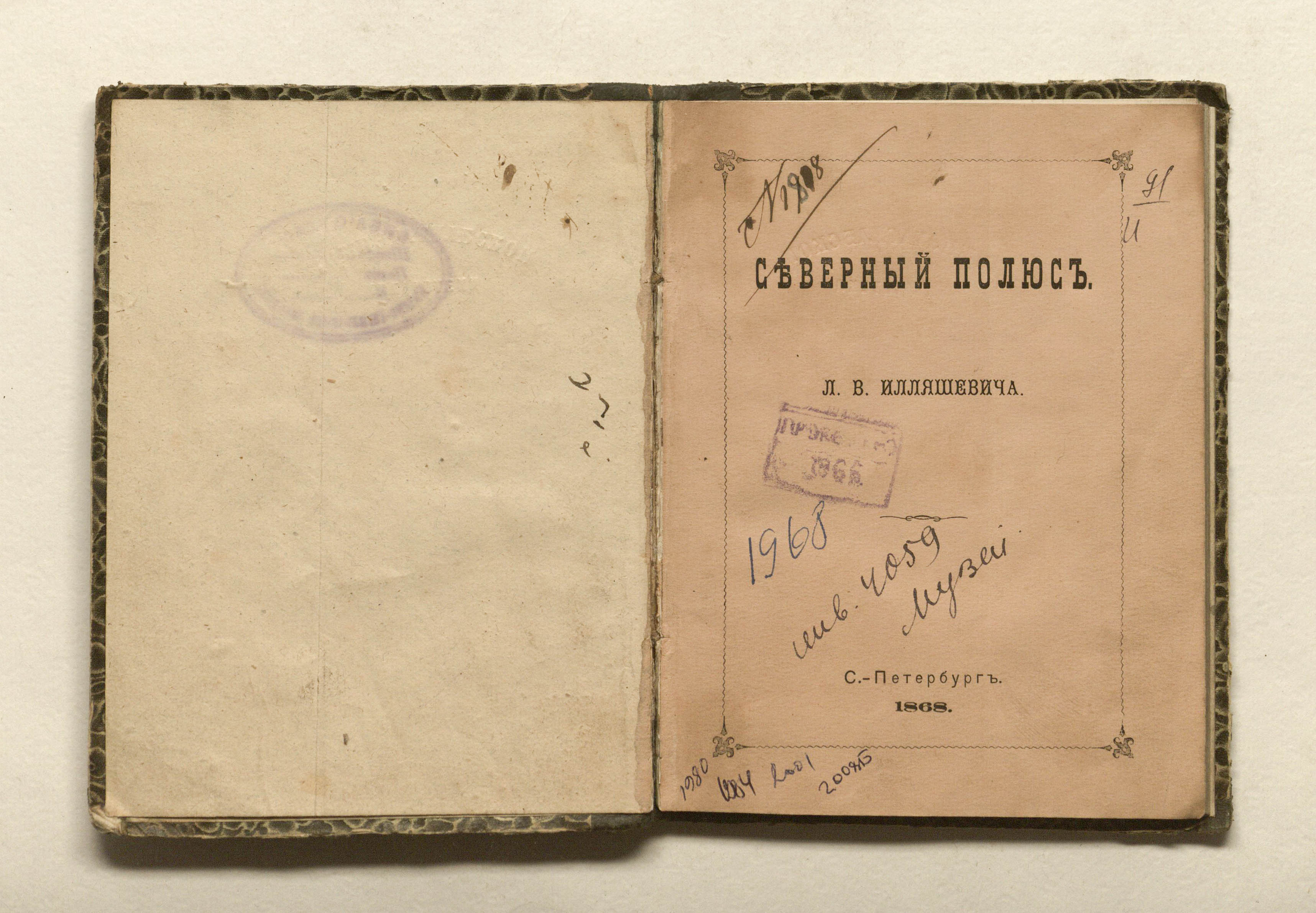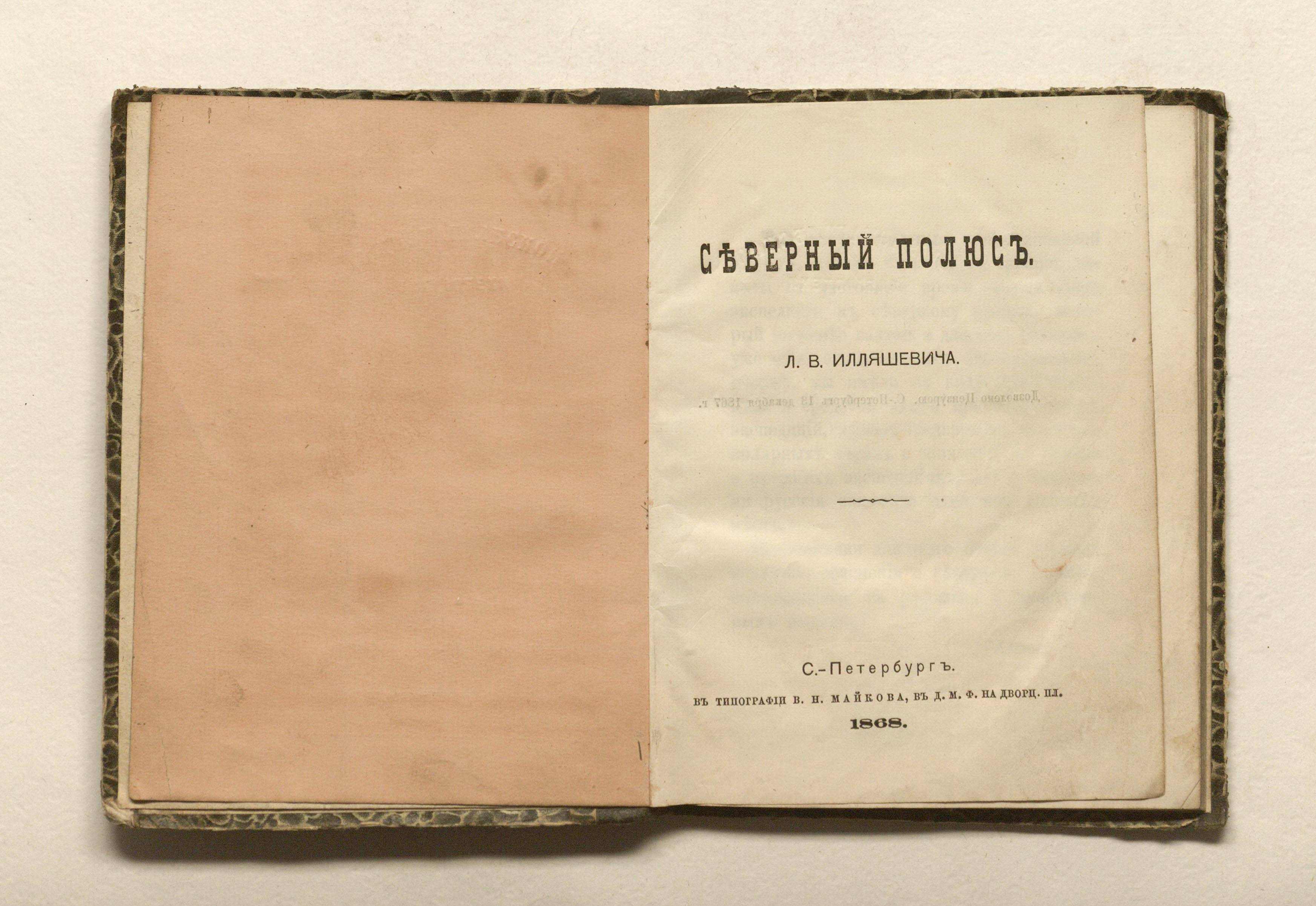 Илляшевич, Лев Васильевич. Северный полюс : [Очерк] / Л. В. Илляшевич. — Санкт-Петербург : тип. В.Н. Майкова, 1868. — 102, [1] с. ; 16х12 см.