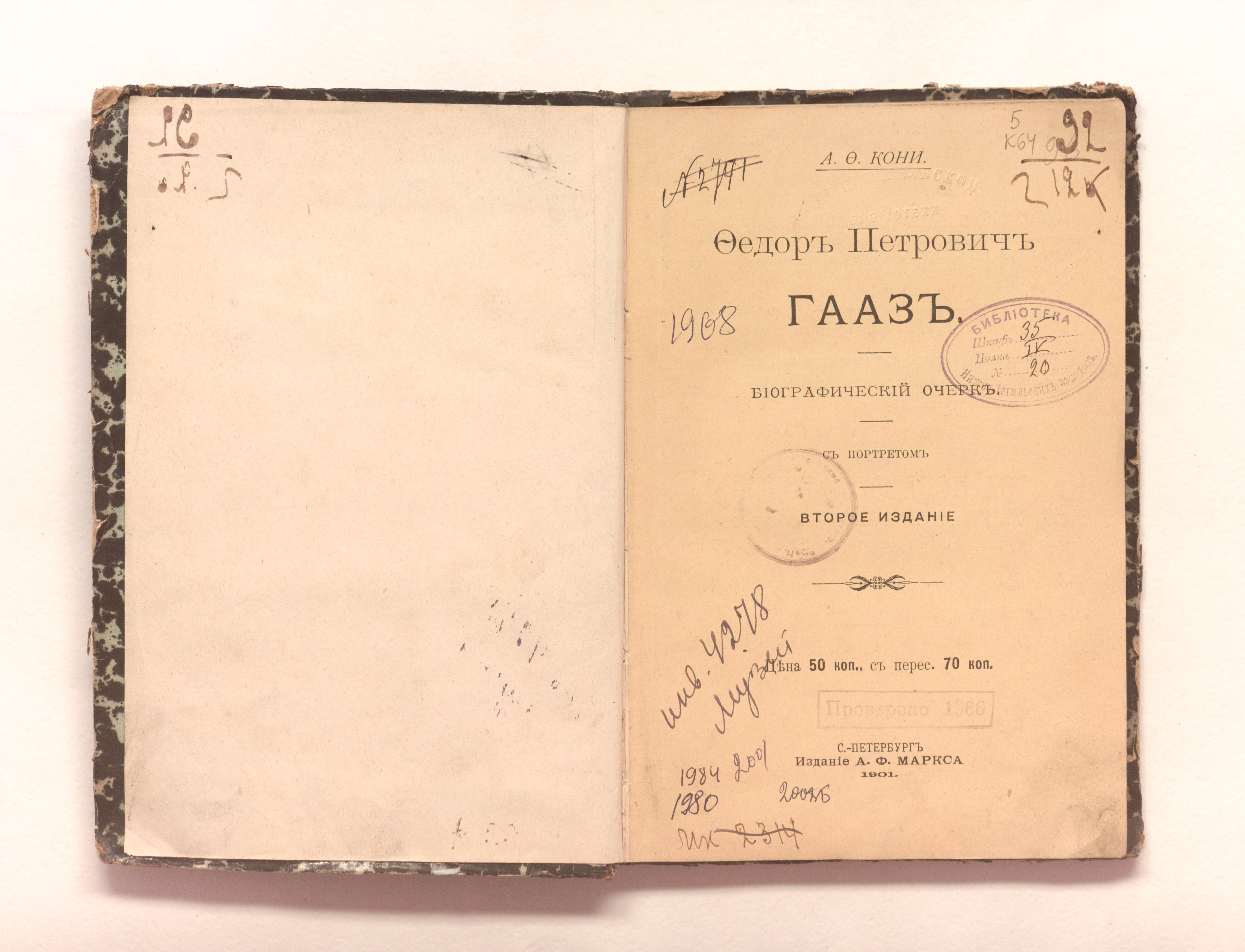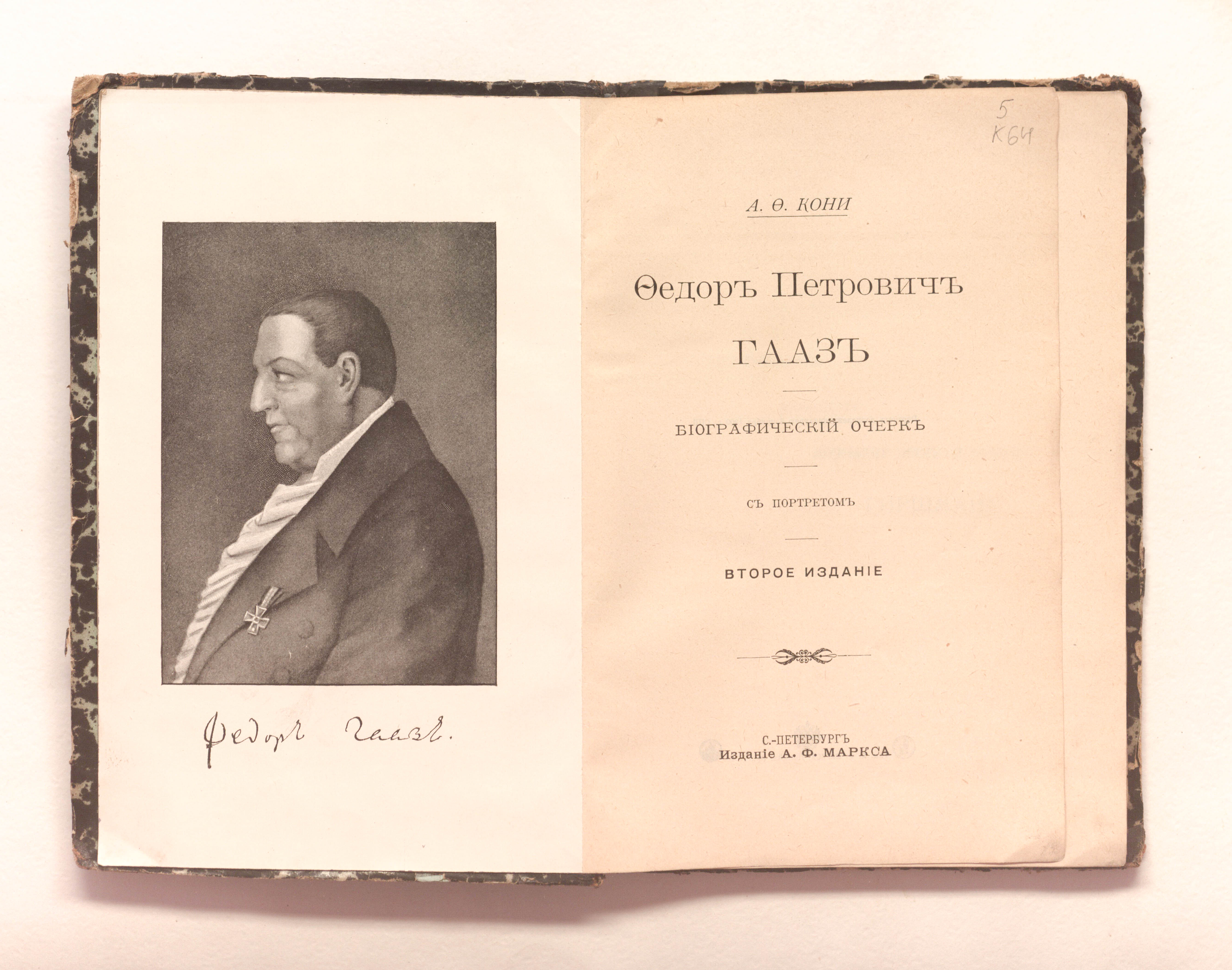 Федор Петрович Гааз : биографический очерк с портретом / А. Ф. Кони. — 2-е изд. — Санкт-Петербург : издание А. Ф. Маркса, 1901. - 174 с. : портрет ; 21х14,5 см.