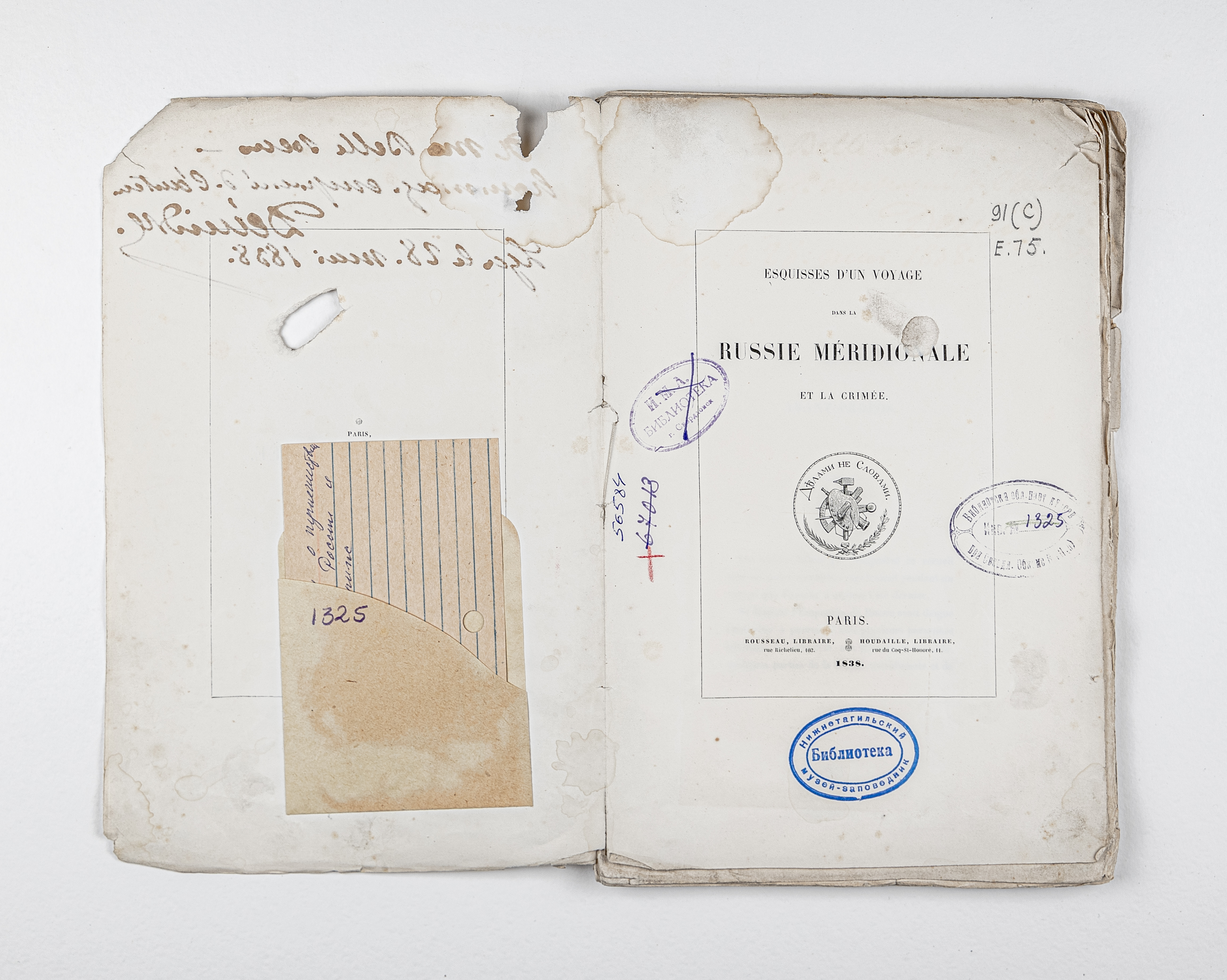 Demidoff, Anatoly (1812-1870). Esquisses d'un voyage dans la Russie Meridionale et la Crimee / AnatolyDemidoff. – Paris : Rousseau et Houdaille, 1838. – [4], 102 p. ; 26,5х17,5 cm.