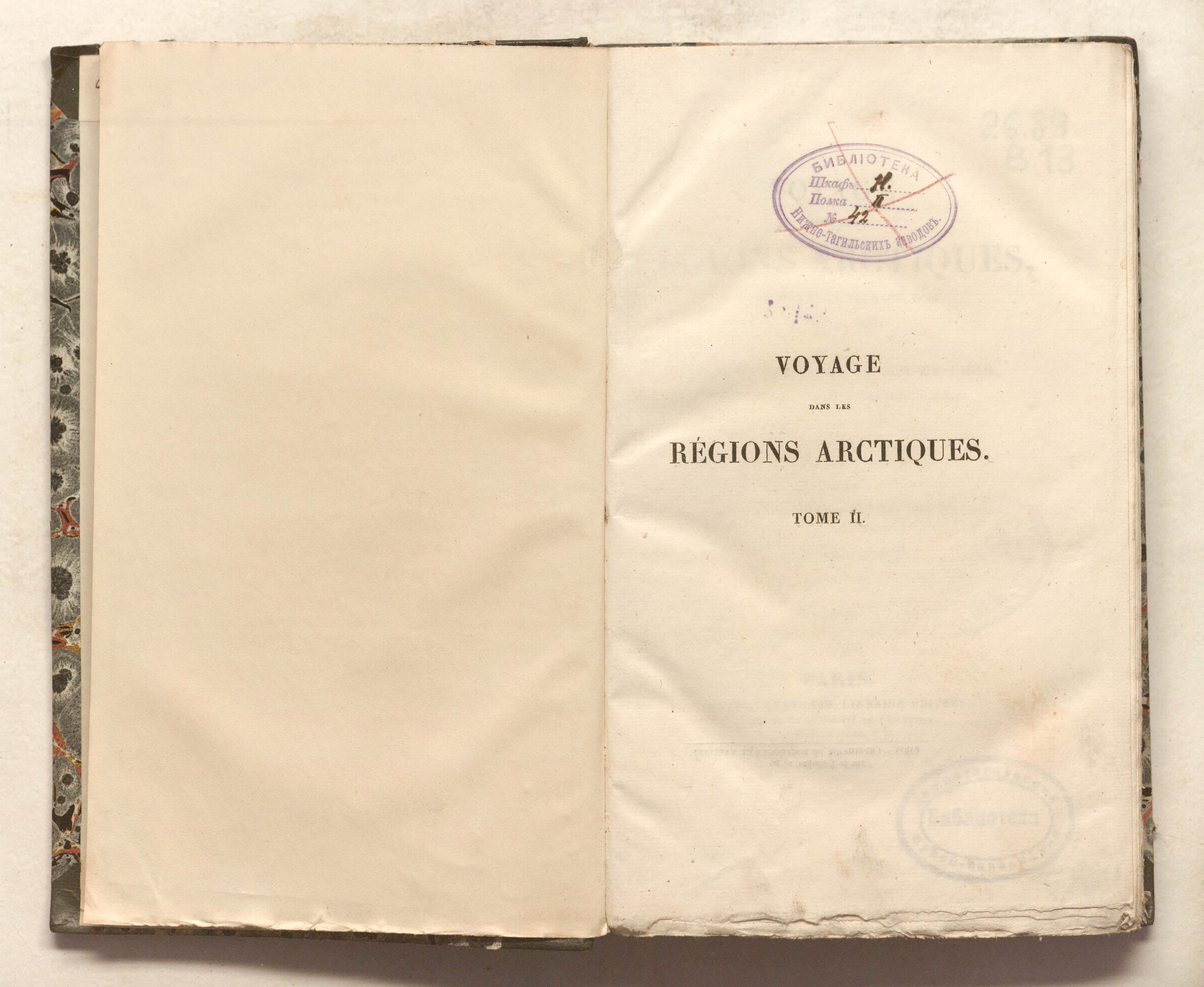 Путешествие в арктические регионы в поисках капитана Росса в 1834 и 1835 годах и разведка реки Тлеу-и-Чо, ныне великой реки Бак / [Сочинение ] капитана Бака...; перевод М. П. Казо... – 2 т. – Т. 2. – Париж : Артюс Бертран, 1836. – 407 с. ; 15х22,5 см.