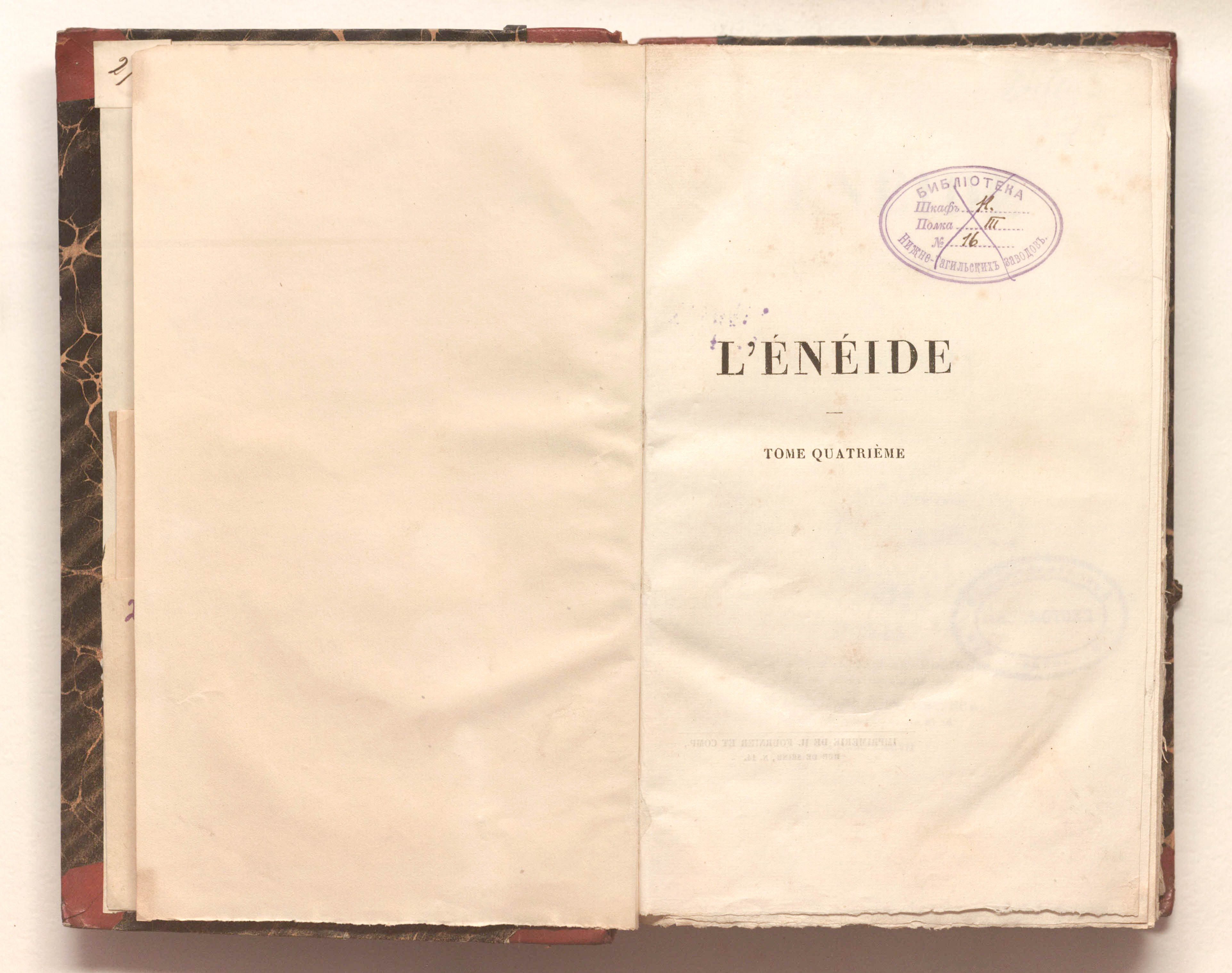 "Библиотека Нижне-Тагильских заводов. Шкаф H. Полка III. №16» (авантитул);