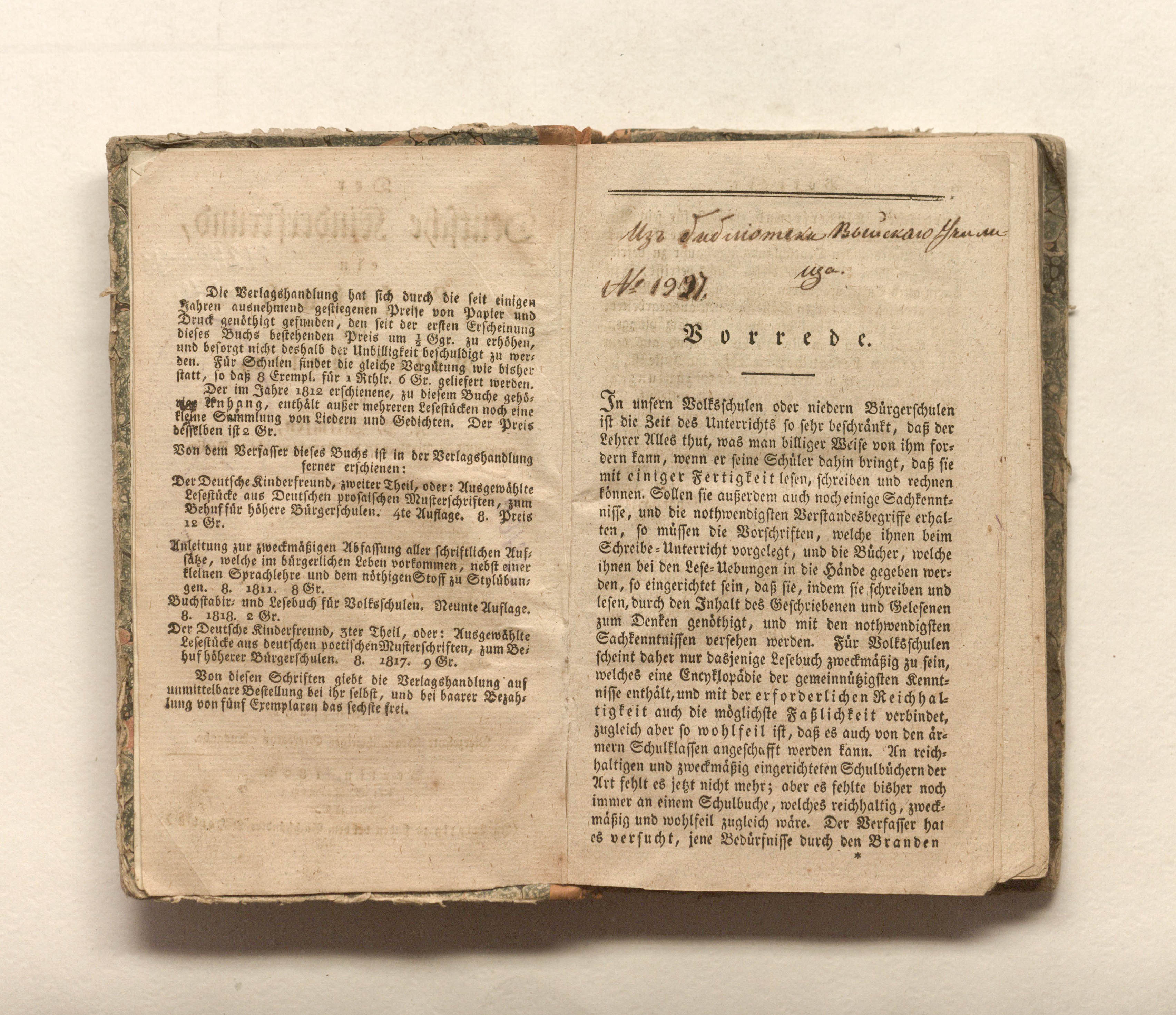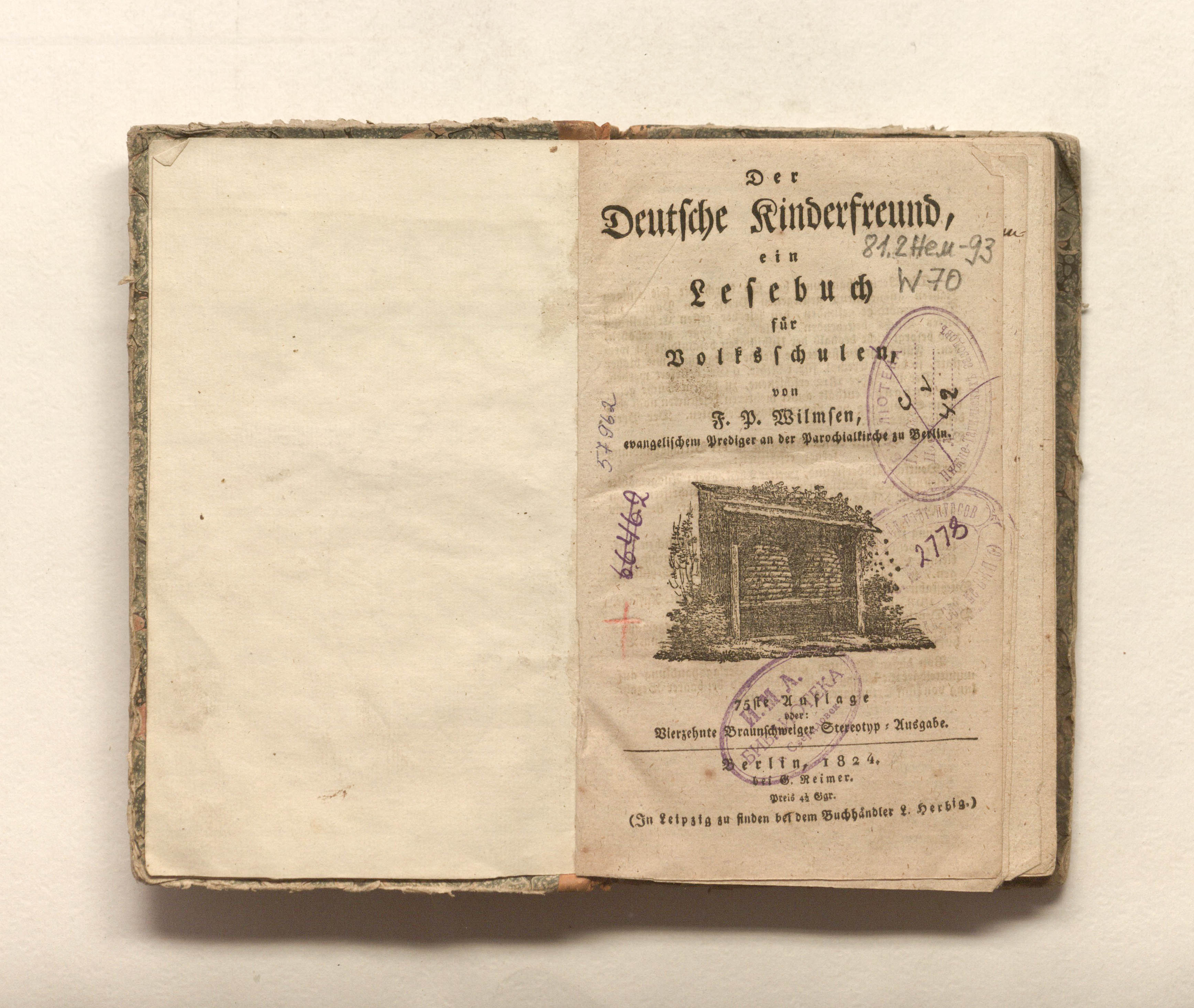 Вильмсен, Фридрих Филипп (1770-1831). Друг немецких детей, книга для чтения для начальной школы, Ф.П. Вильмсена. – 75-е изд. – Берлин: Г. Раймер, 1824. — [1], VI, 234 с. ; 11x18,5 см.