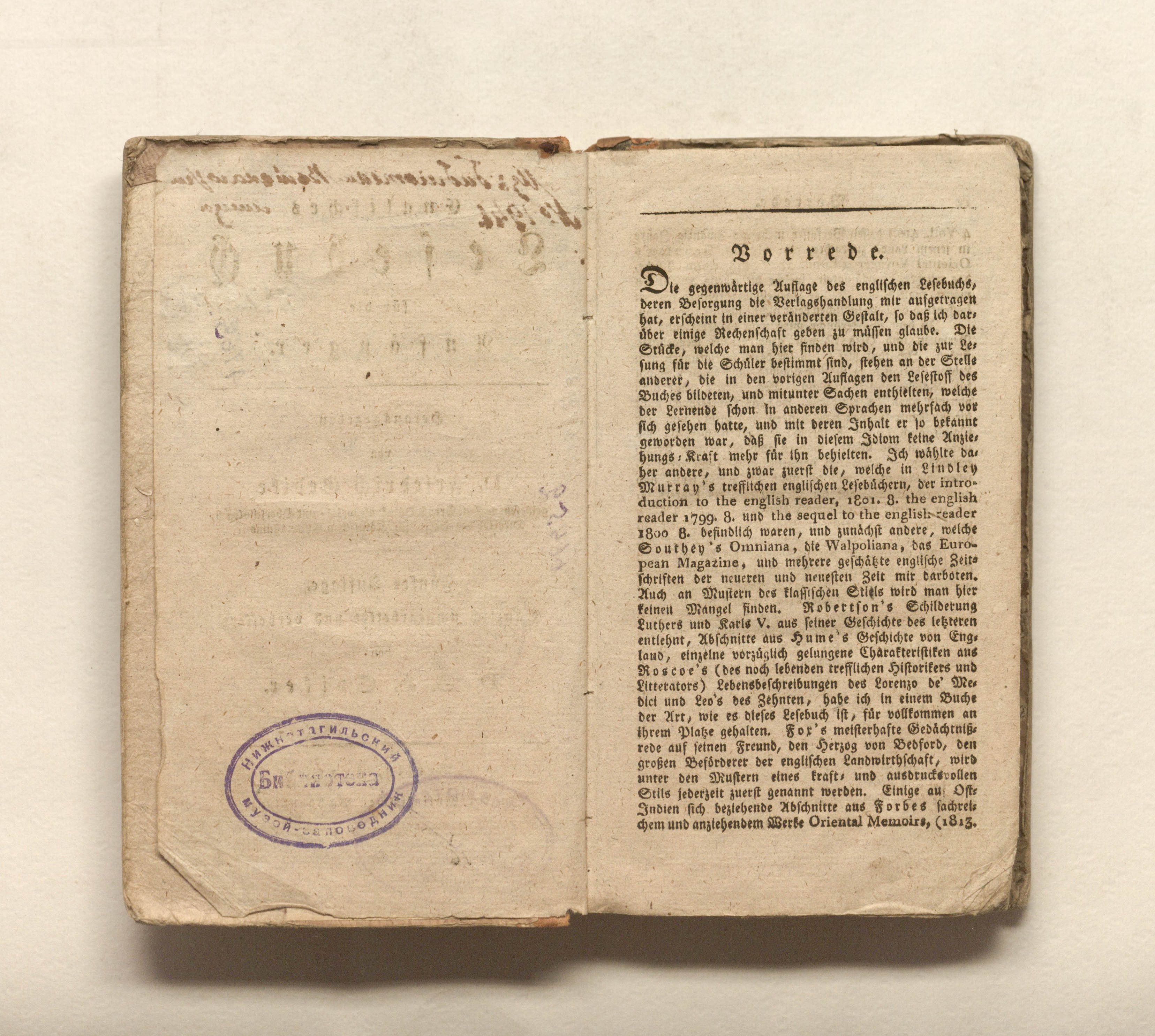 Гедике, Фридрих (1754-1803) Английский язык для начинающих (Книга для чтения на английском языке для начинающих). Под редакцией Д. Фридриха Гедике ... Издание пятое. Переработано и улучшено Д. Г. Х. Шпикером. – Берлин: Август Мюлиус, 1818. – IV, 281 с. ; 10х18 см.