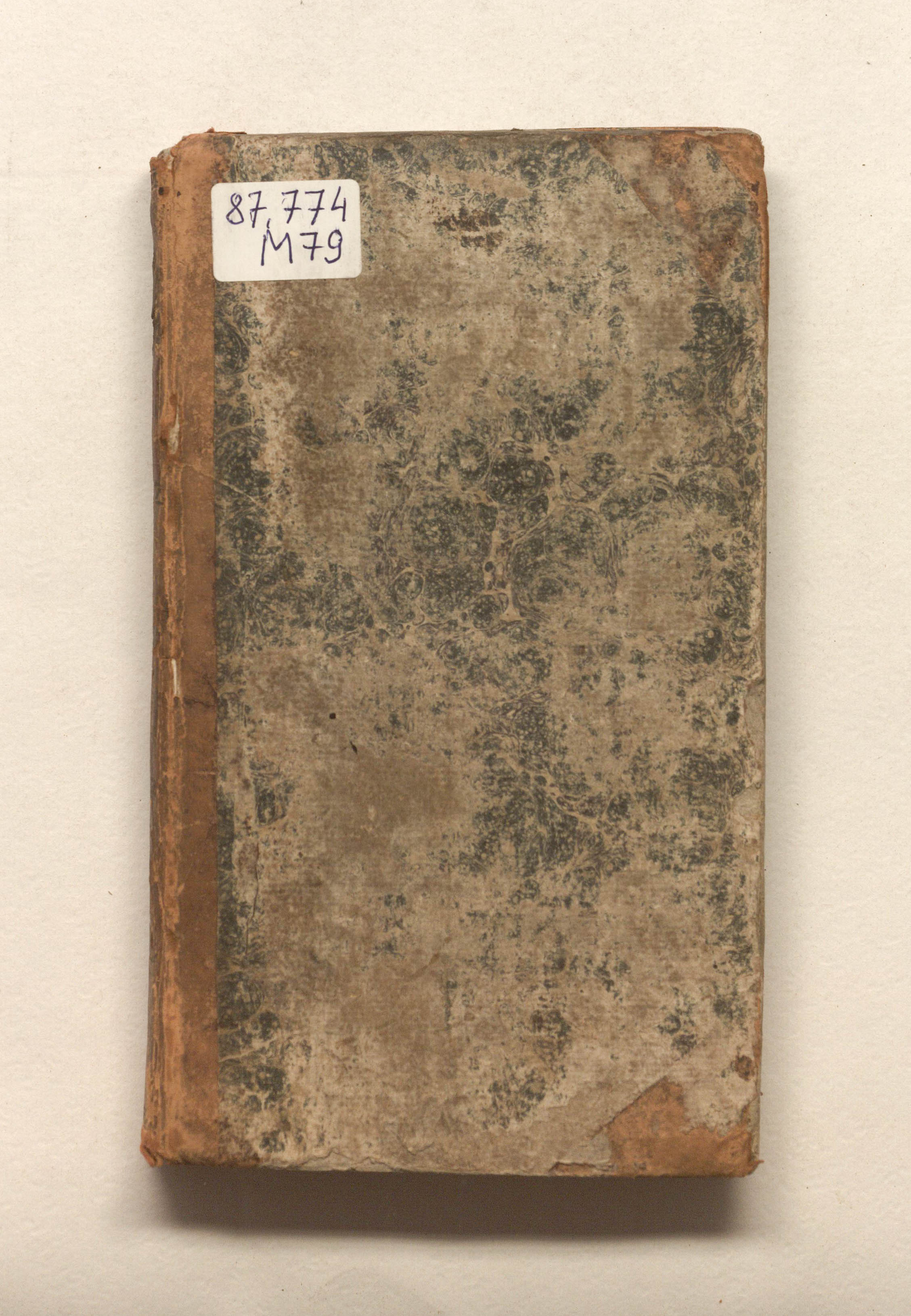 Книга в полукожаном владельческом переплете. На обороте передней сторонки надпись орешковыми чернилами (зачеркнута): "Сия книга принадлежит А.Шорникову с 1-го августа 1822 года".