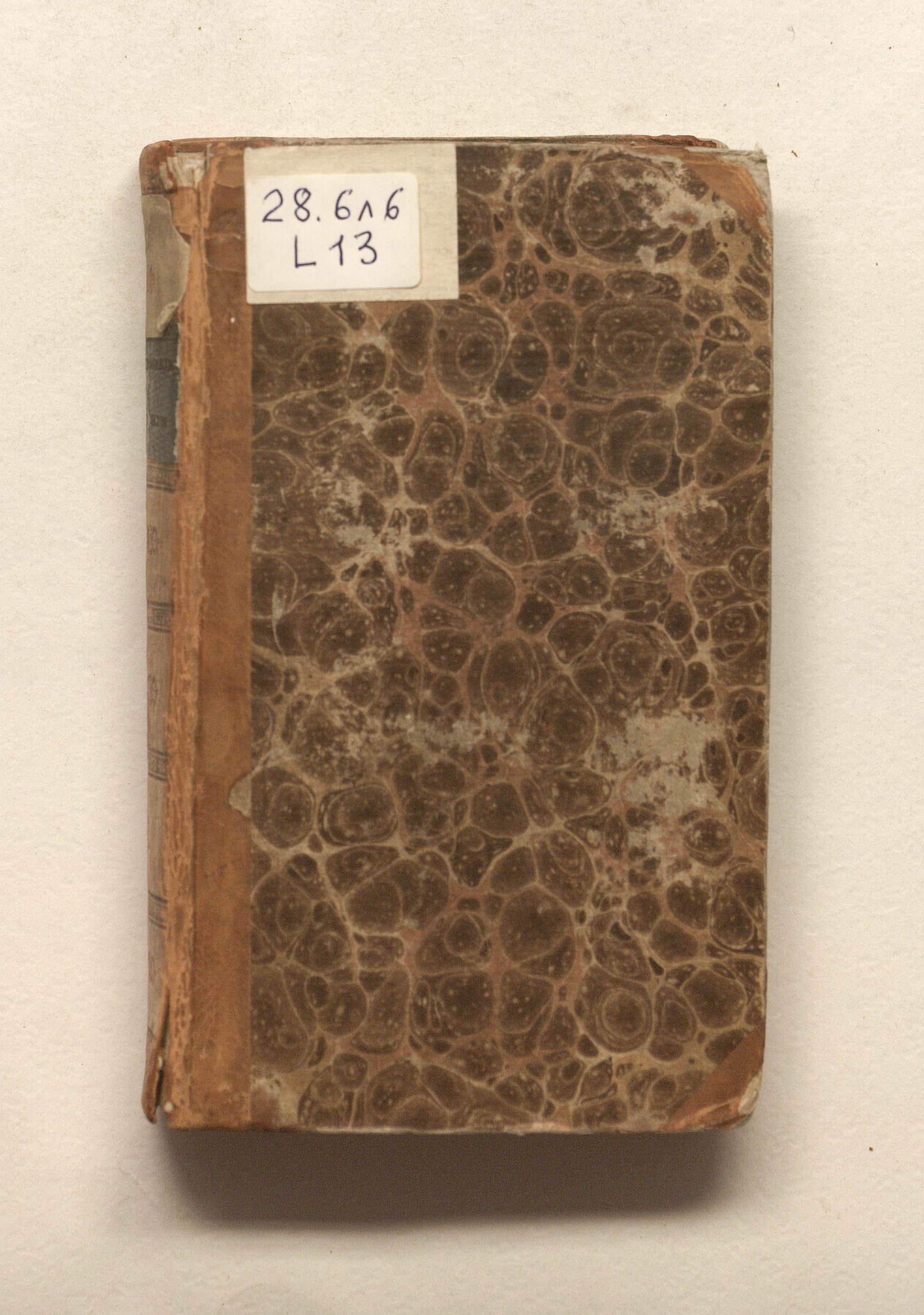 Книга в полукожаном владельческом переплете. На титульном листе надпись орешковыми чернилами: "Из библиотеки Выйского училища. №1901".