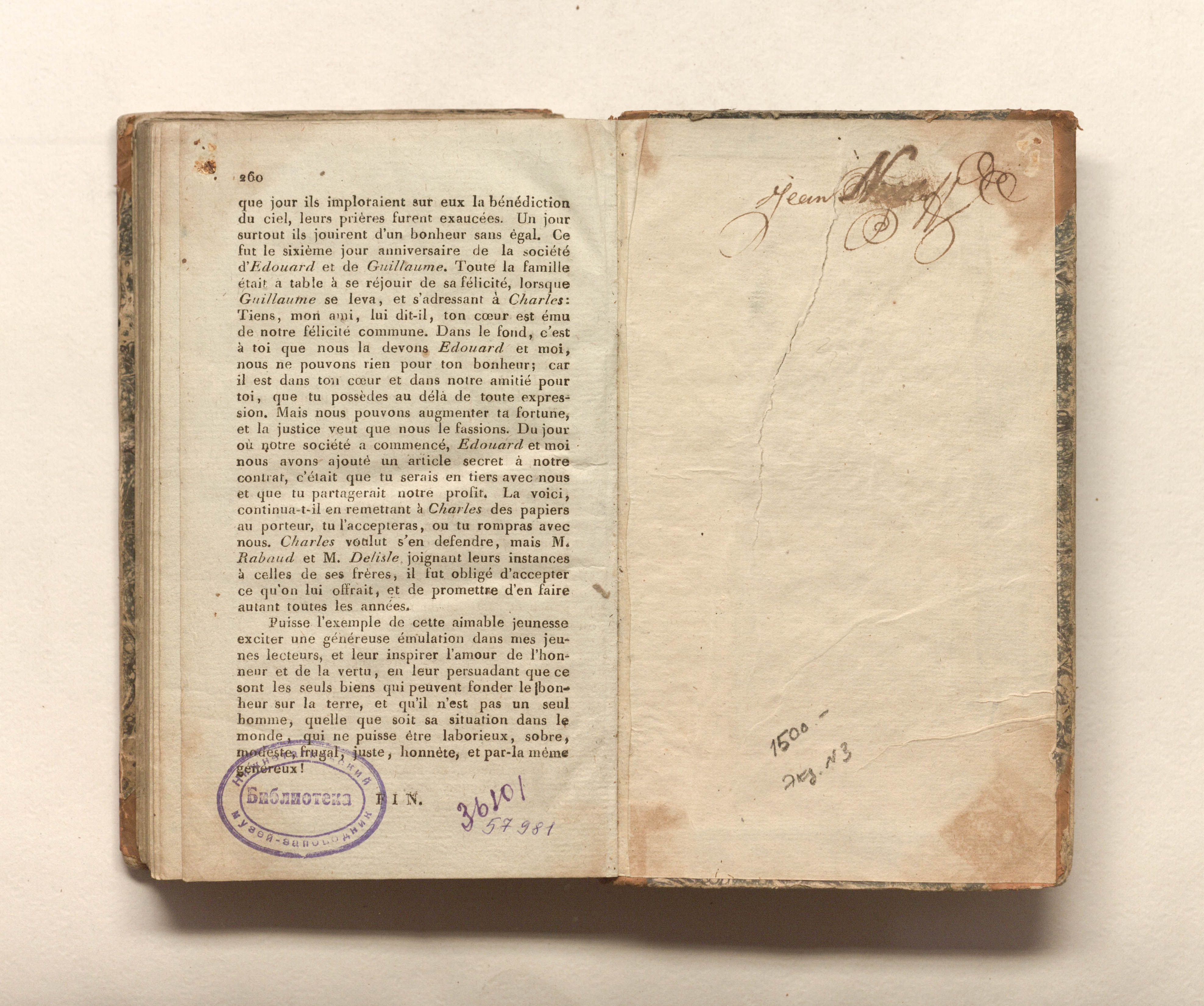 На обороте задней сторонки орешковыми чернилами запись "Jean N (нрзб.)".