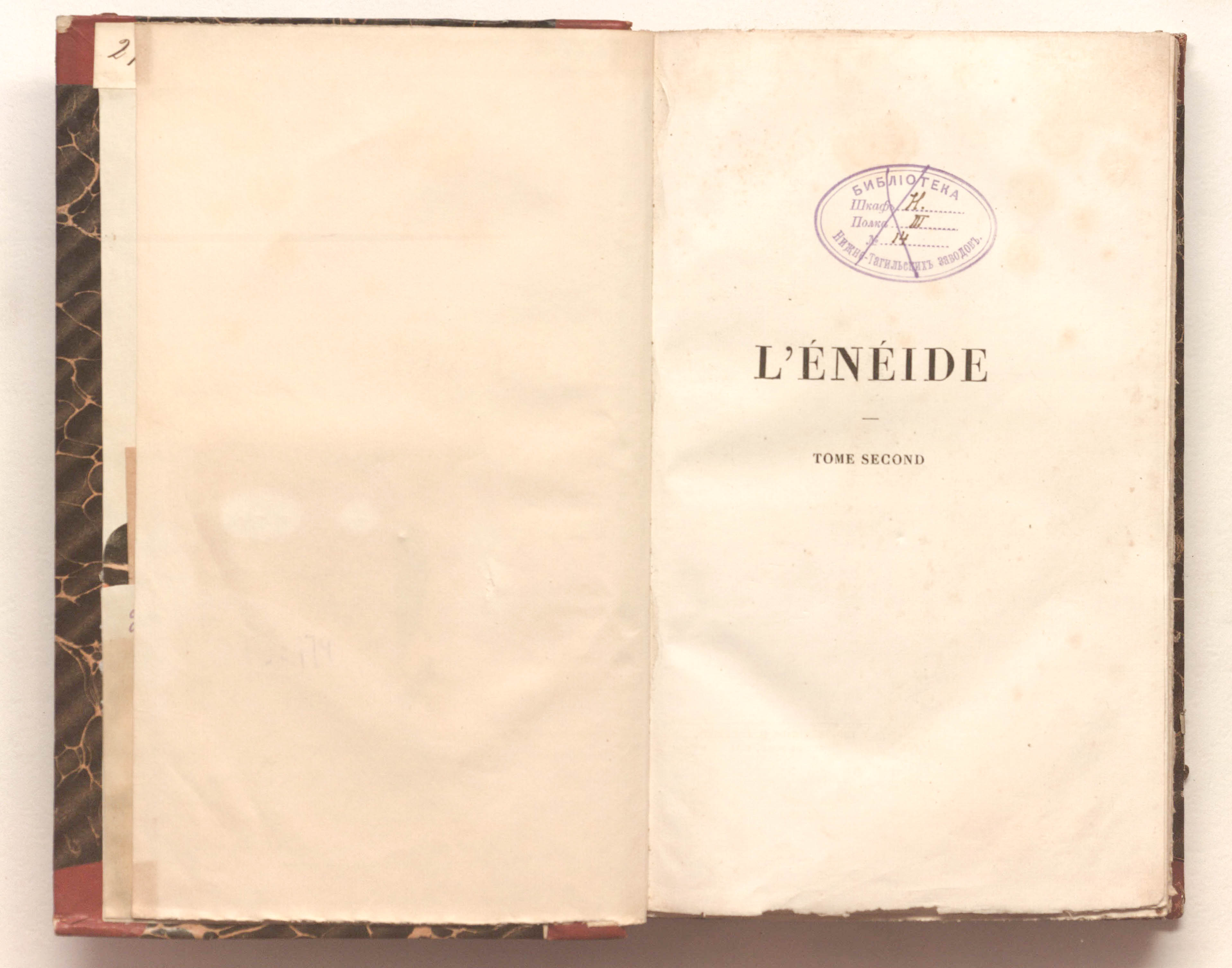 "Библиотека Нижне-Тагильских заводов. Шкаф H. Полка III. №14» (авантитул);