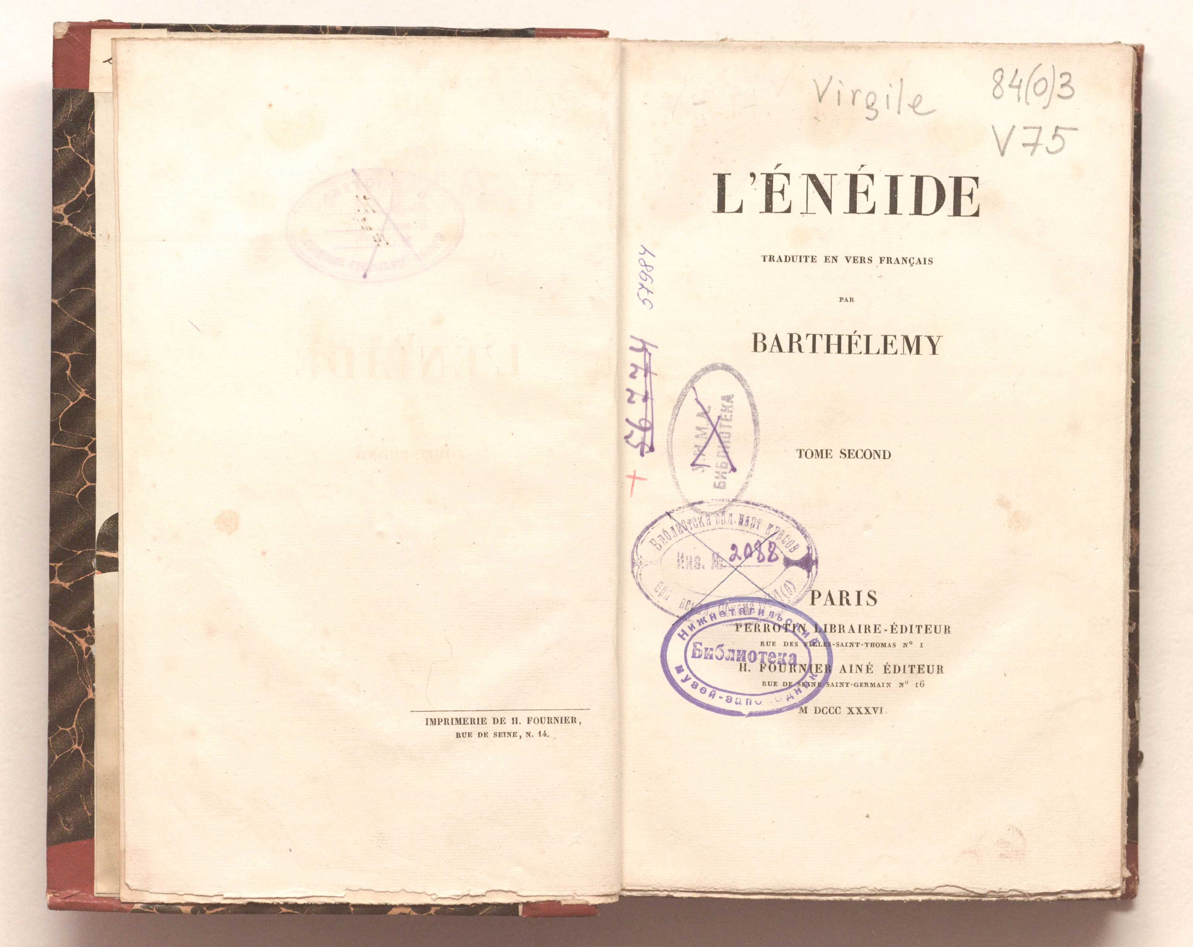 Энеида. Перевод на французский язык в стихах Бартелеми. – 4 т. – Т. 2. – Париж : Перротен; Фурнье старший, 1836. – 392 с.; 14,5х23 см