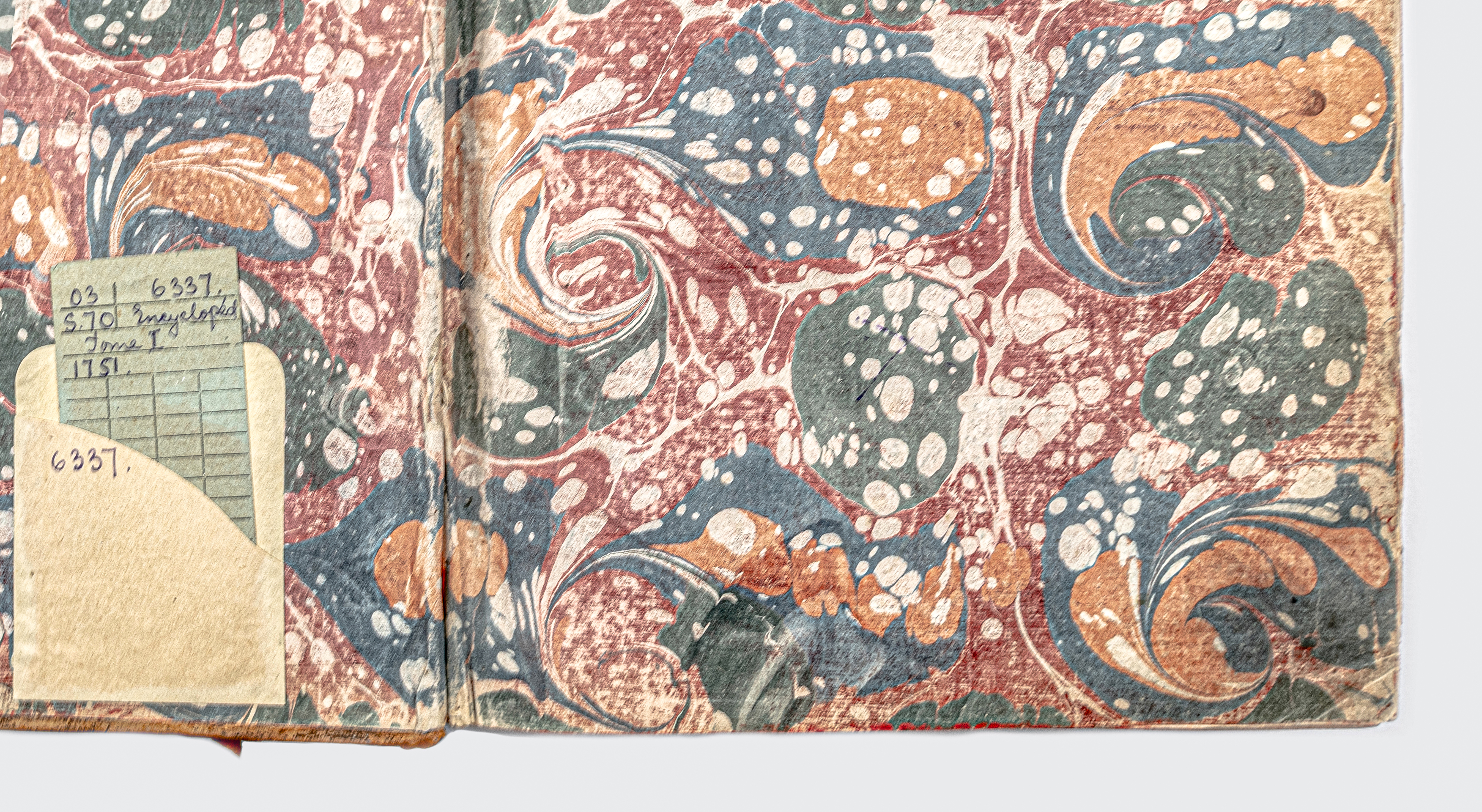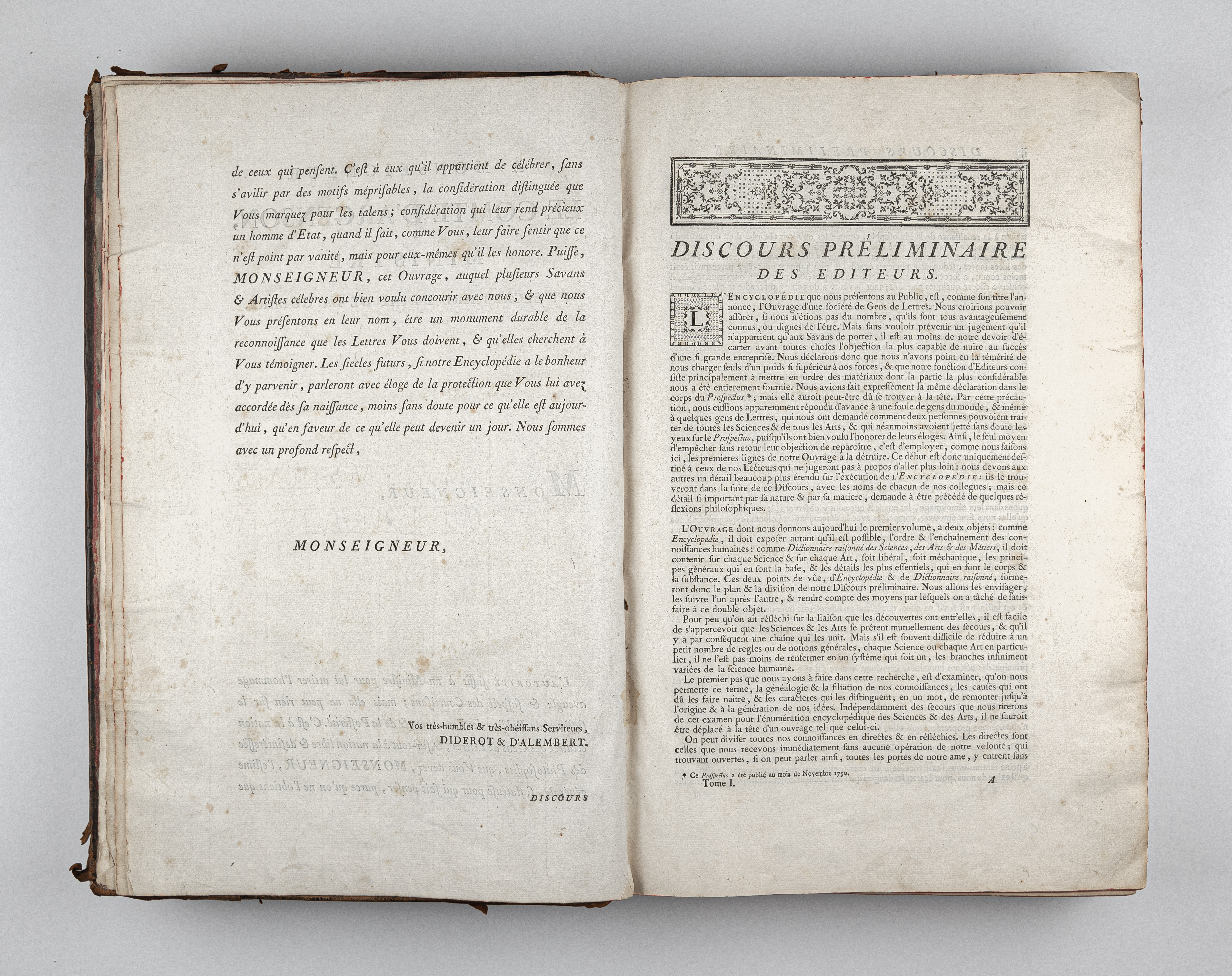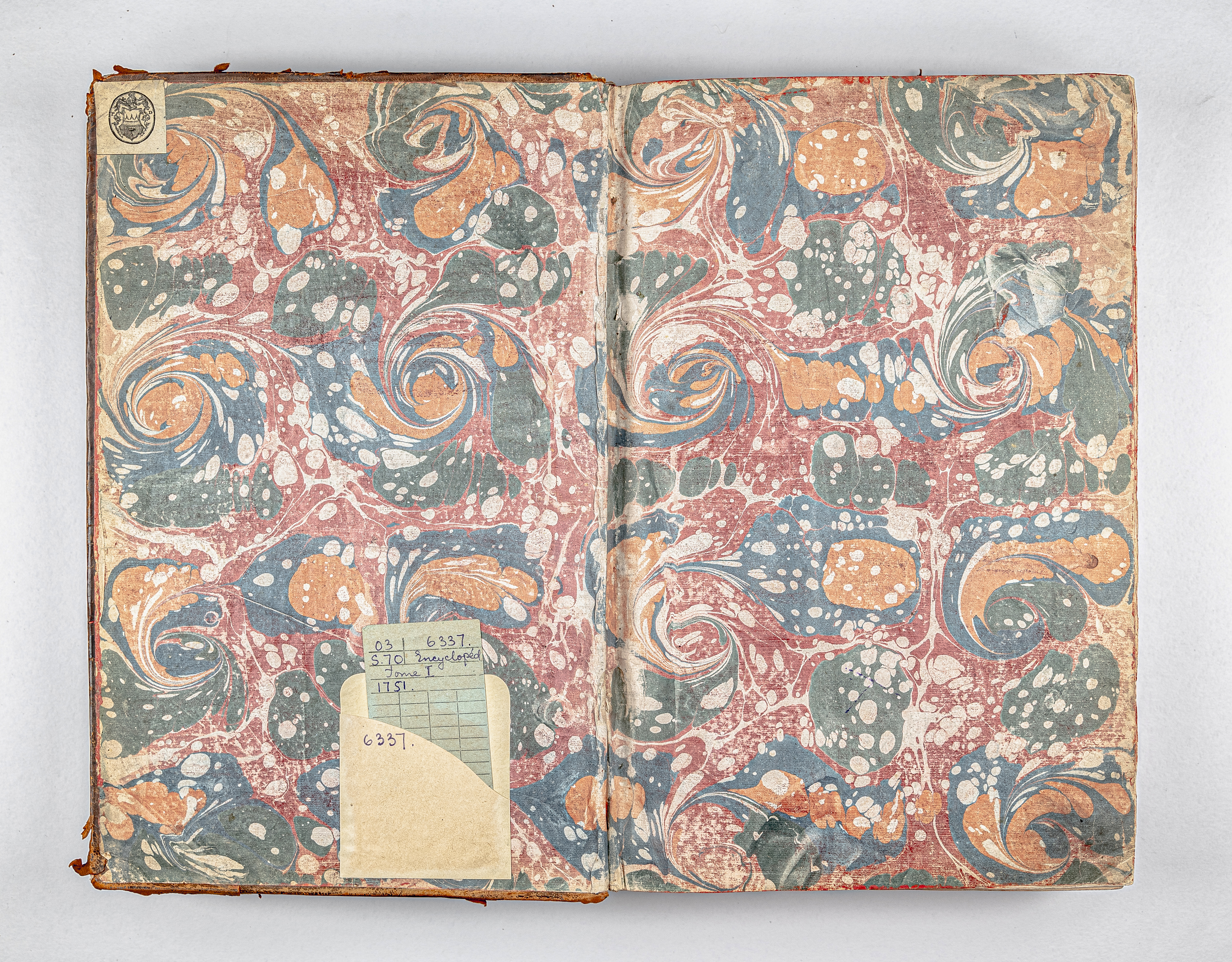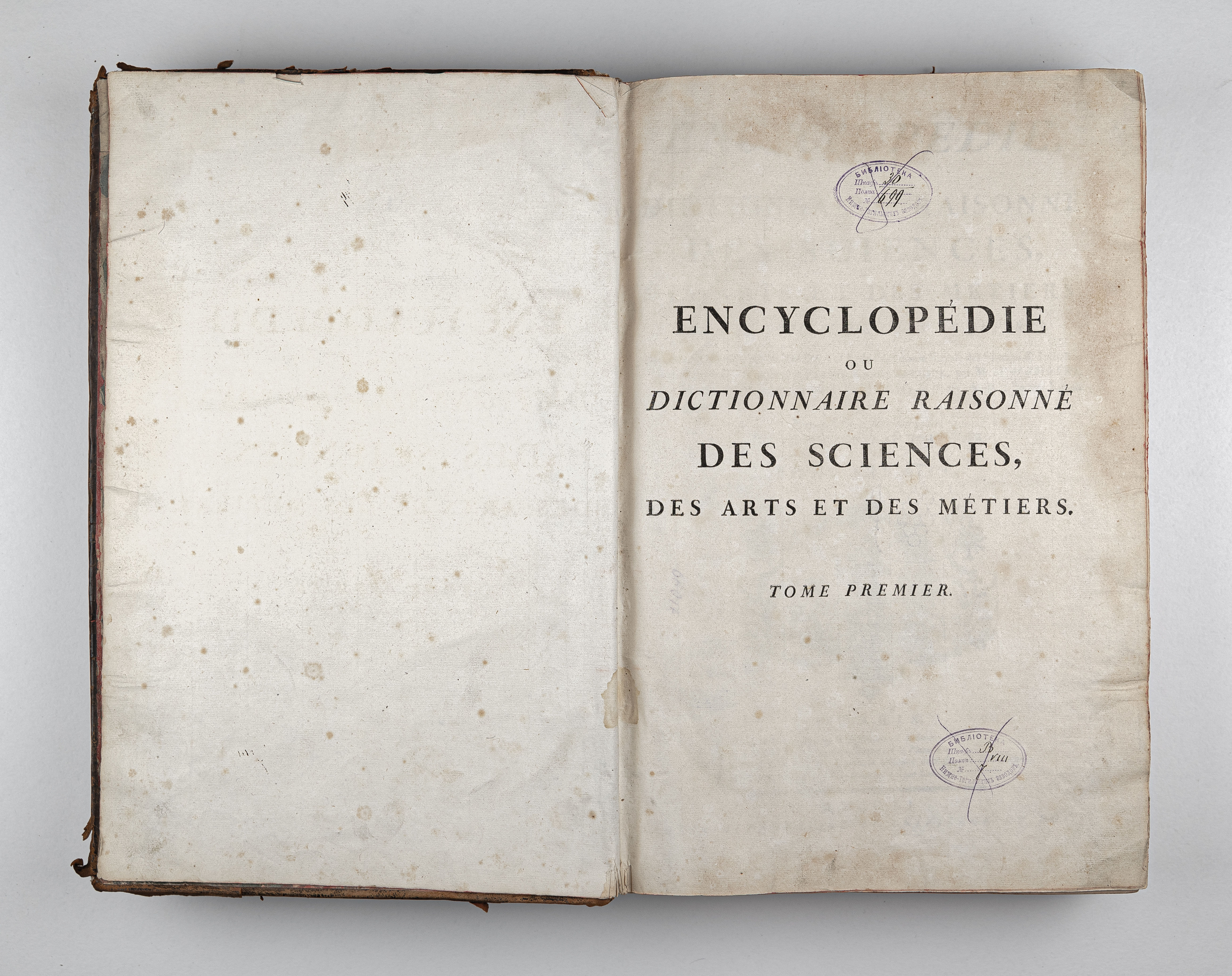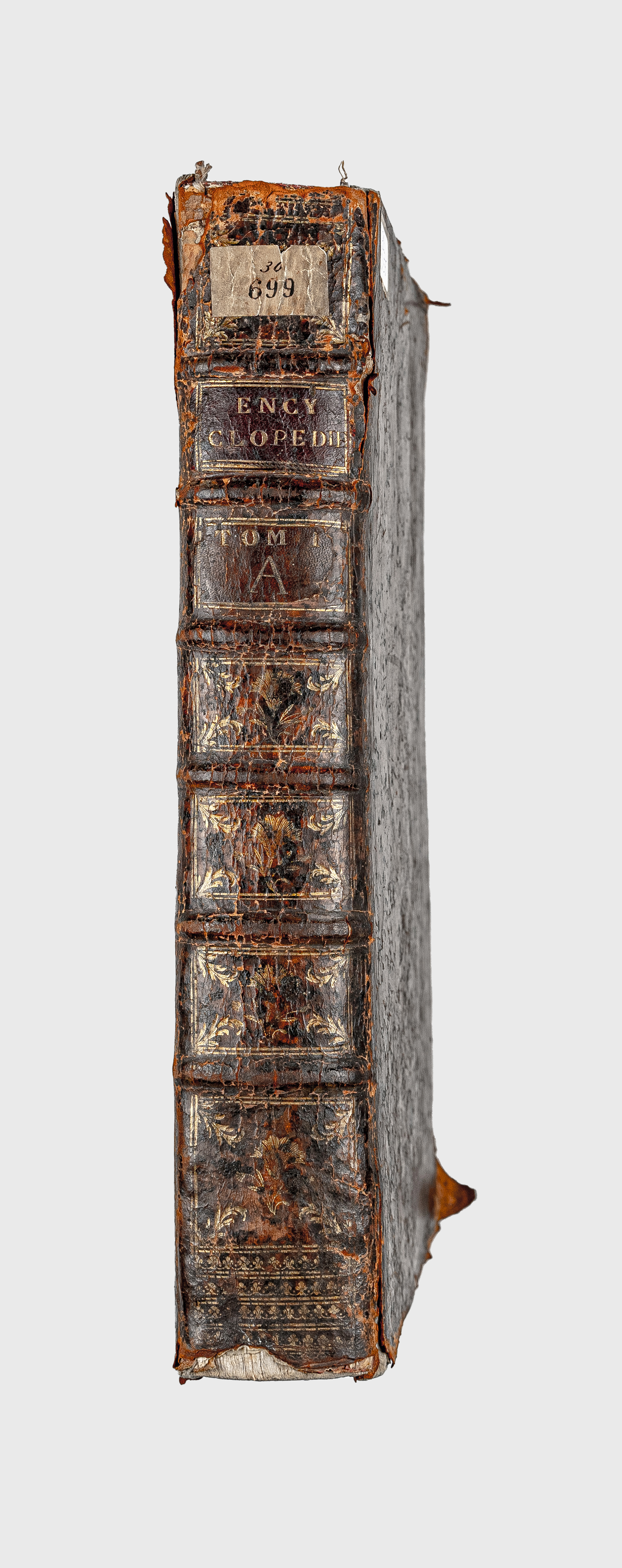 Золототисненое заглавие «ENCYCLOPEDIE. TOM I. А» (на корешке перепл.).