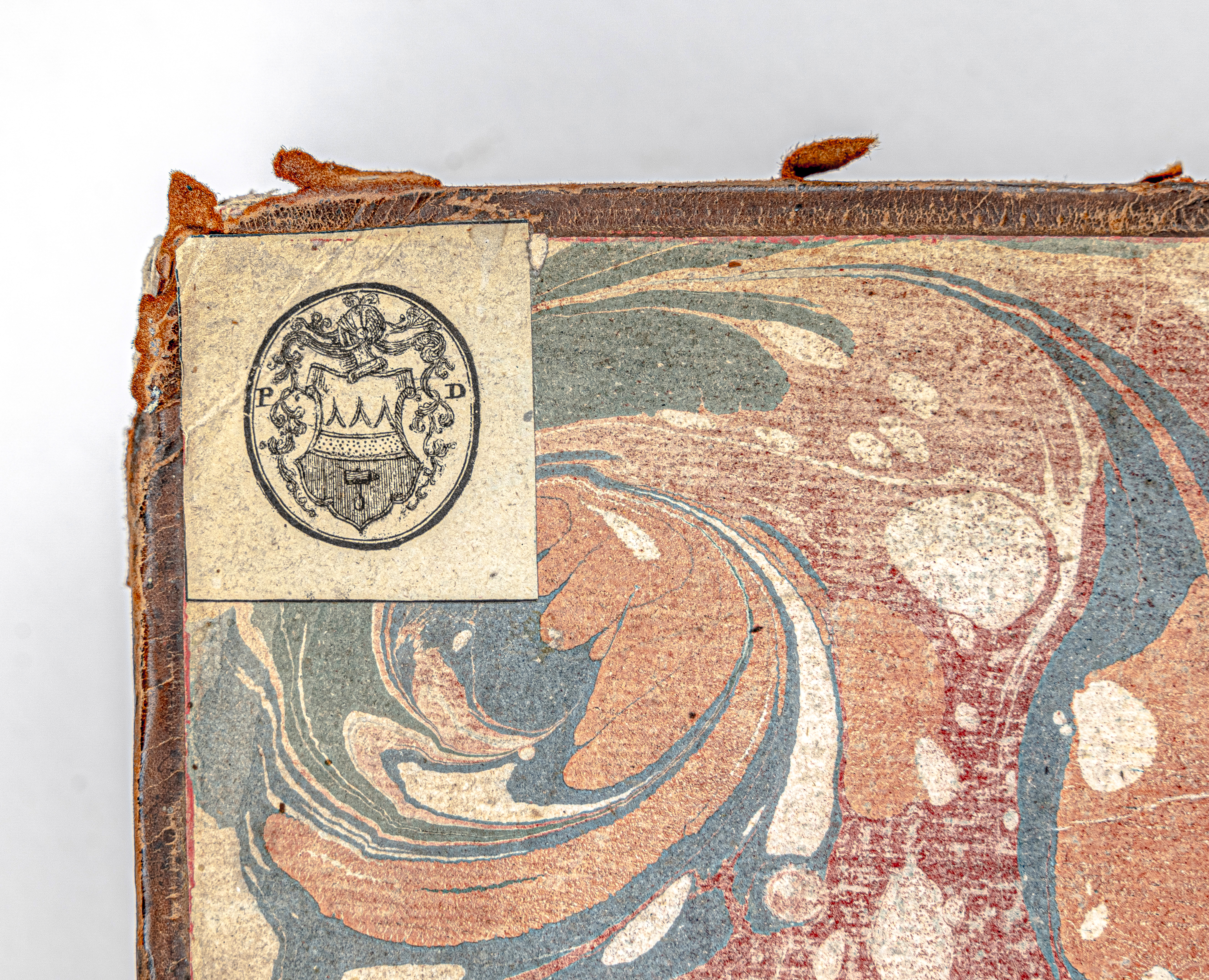 Бумажный гербовый экслибрис инициалами «PD» [Павел Демидов] и гербом рода Демидовых. (на обороте передней крышки перепл.).