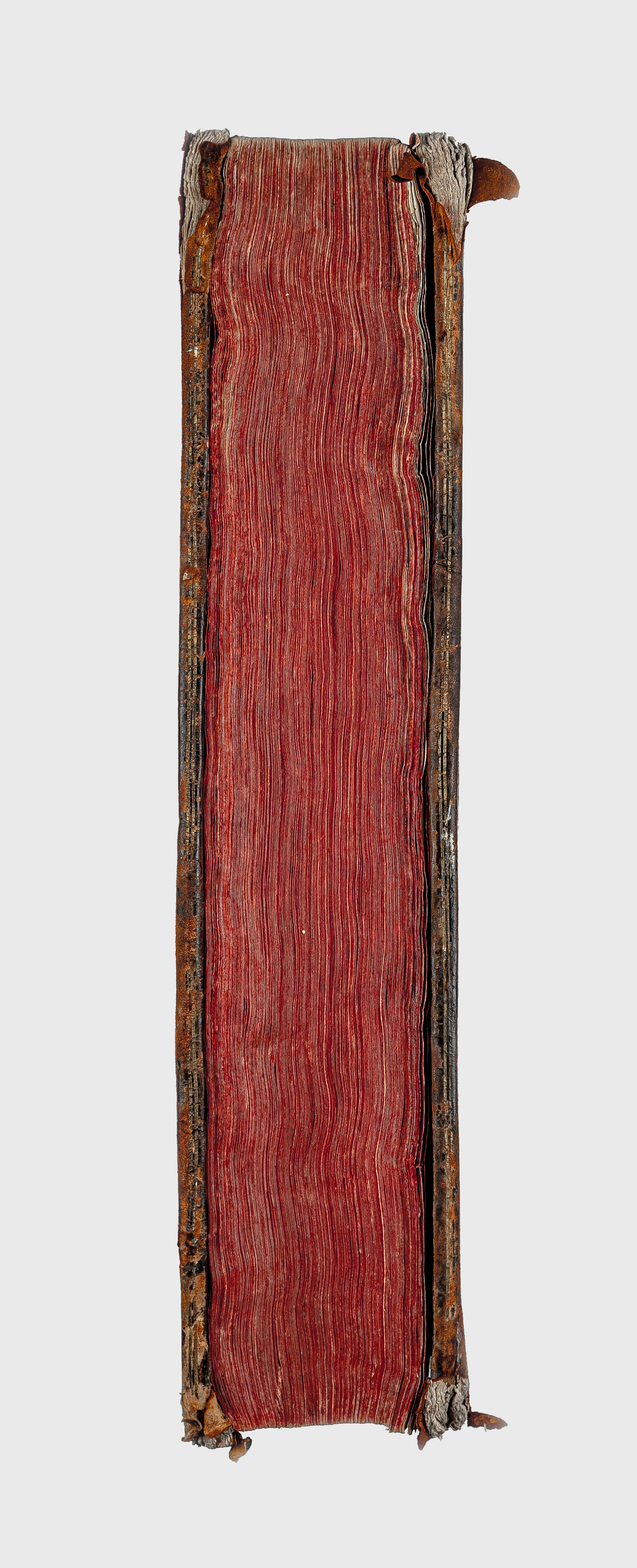 Книга в цельнокожаном владельческом переплете. Обрез тонированный. Бумага верже. Форзацы украшены бумагой с рисунком «павлинье перо».