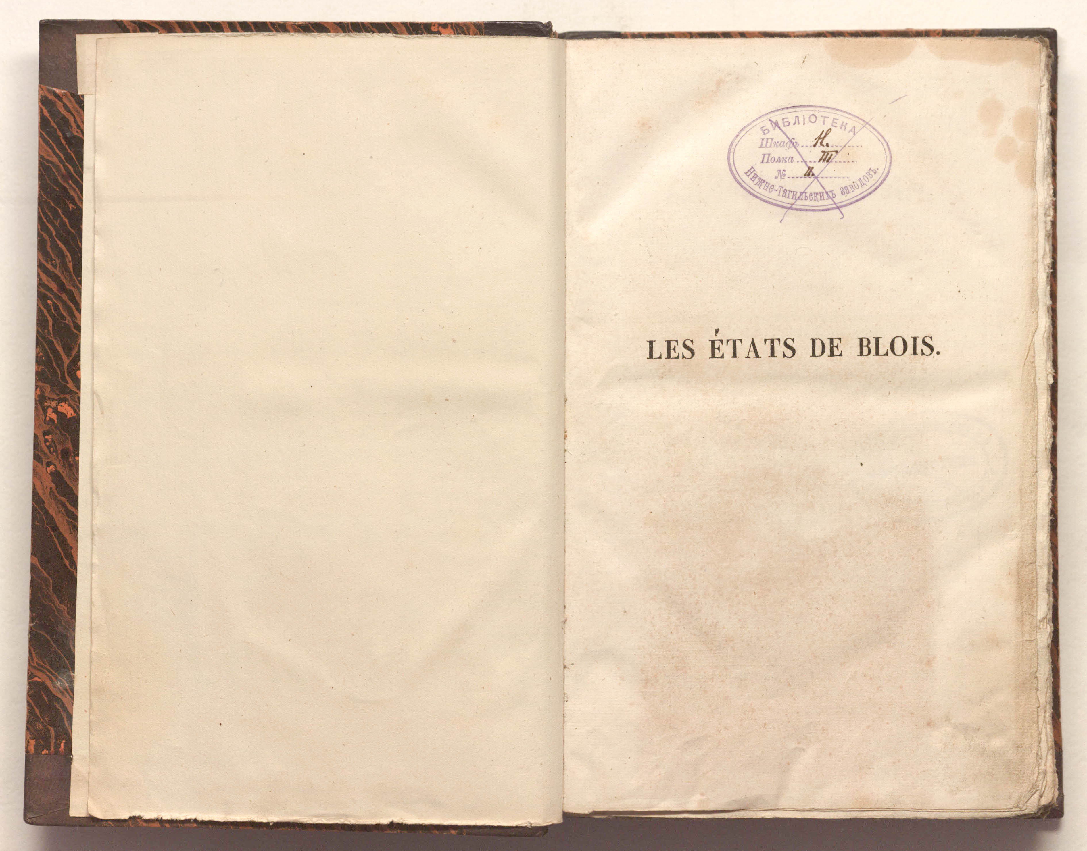 [Генеральные] штаты Блуа, или Смерть г-на де Гиза, исторические сцены, декабрь 1588; автора "Баррикад". – 3-е изд. – Париж : Фурнье, 1829. – VIII, 487 с. : 1 план. ; 15x22,8 см.