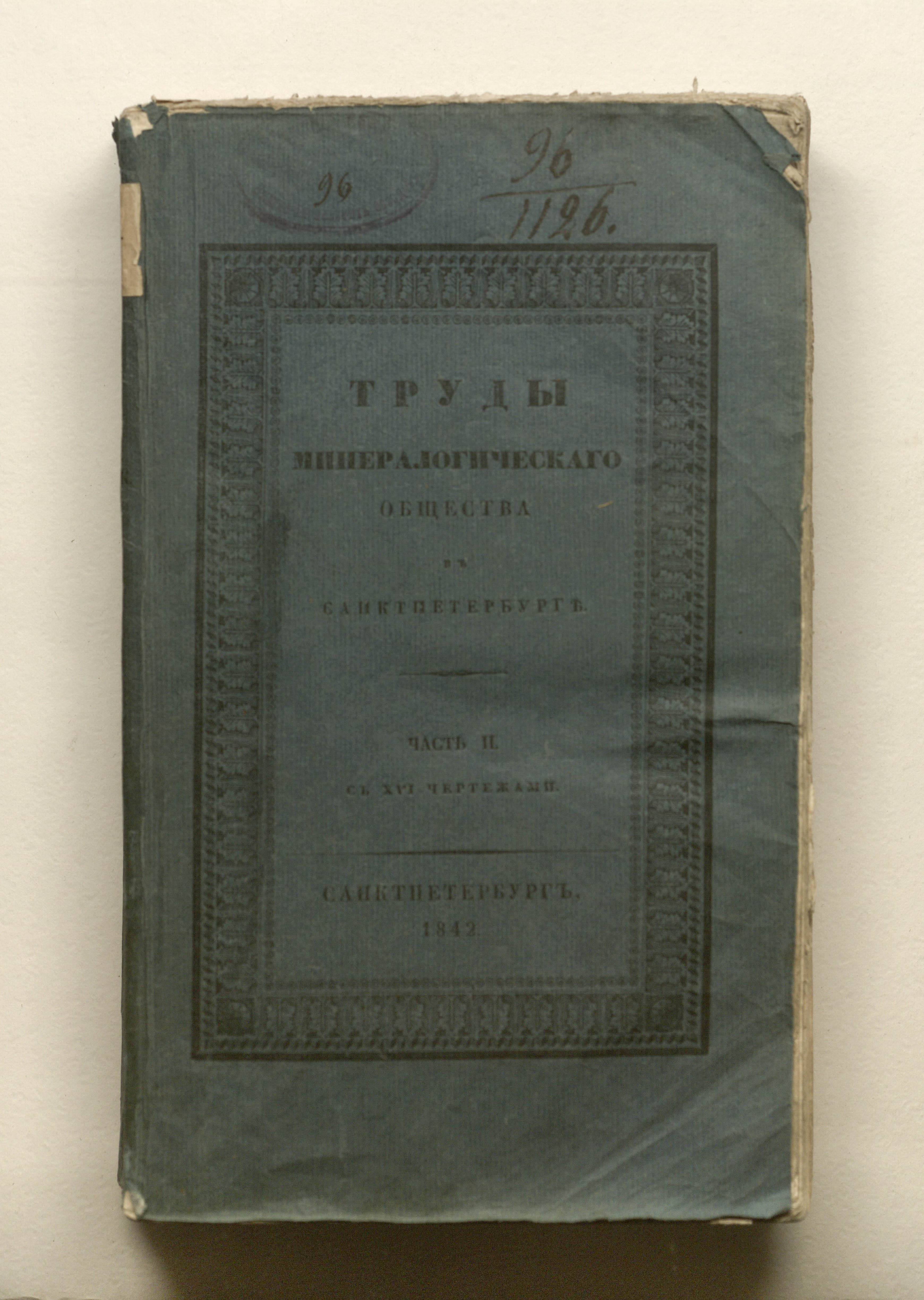 Труды Минералогического общества в Санкт-Петербурге : с XVI чертежами. Ч. 2. — Санкт-Петербург : типография Н. Греча, 1842. — [4], 452 с. : табл. ; 25х15 см.