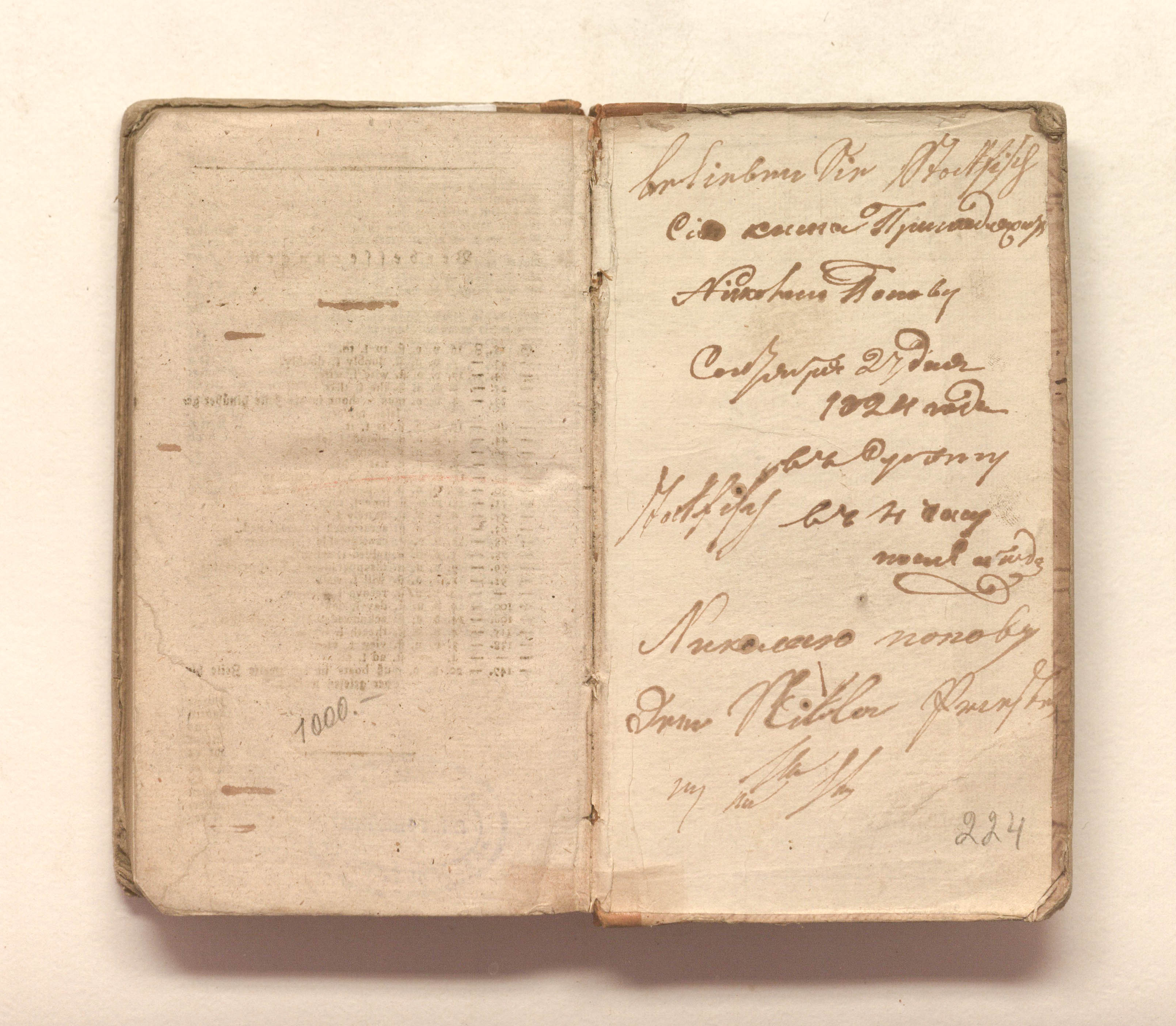 На c. III орешковыми чернилами надпись: "Из библиотеки Выйского училища. №1938". На обороте верхней крышки запись орешковыми чернилами: "Принадлежит Николаю Попову". На обороте нижней крышки записи орешковыми чернилами: "Сия книга принадлежит Николаю Попову. Сентября 27 дня 1824 года". Далее неразборчивая запись.