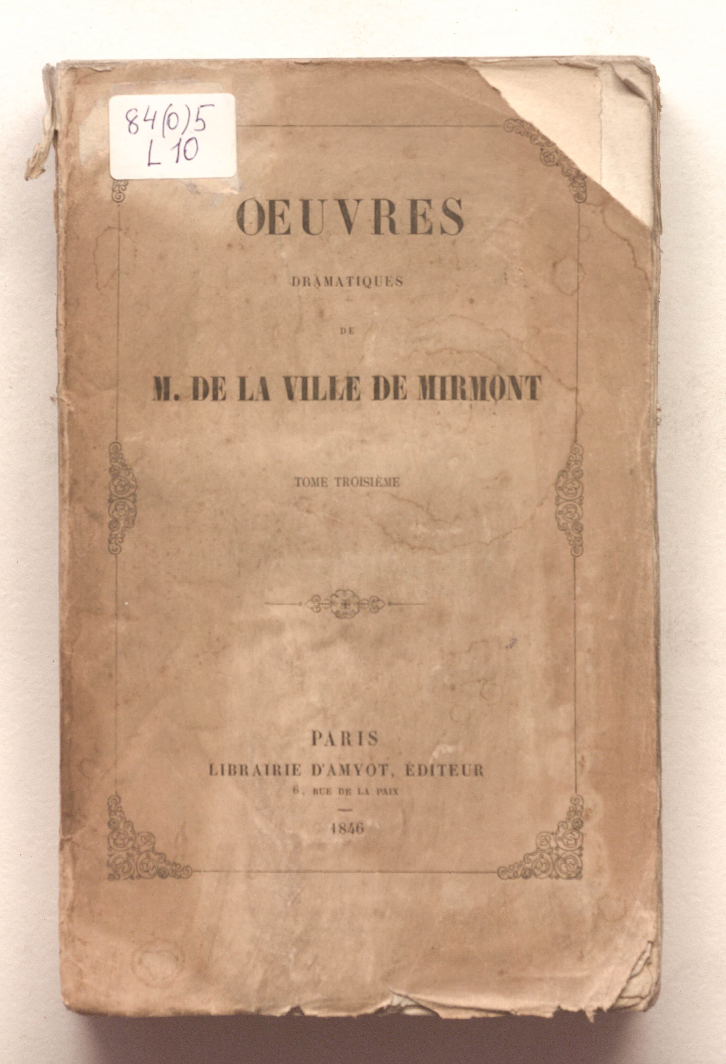 Oeuvres dramatiques de M. de La Ville de Mirmont. – 4 t. – T. 3. – Paris : Amyot, 1846. - 631, [1] p.; 14x23 cm.