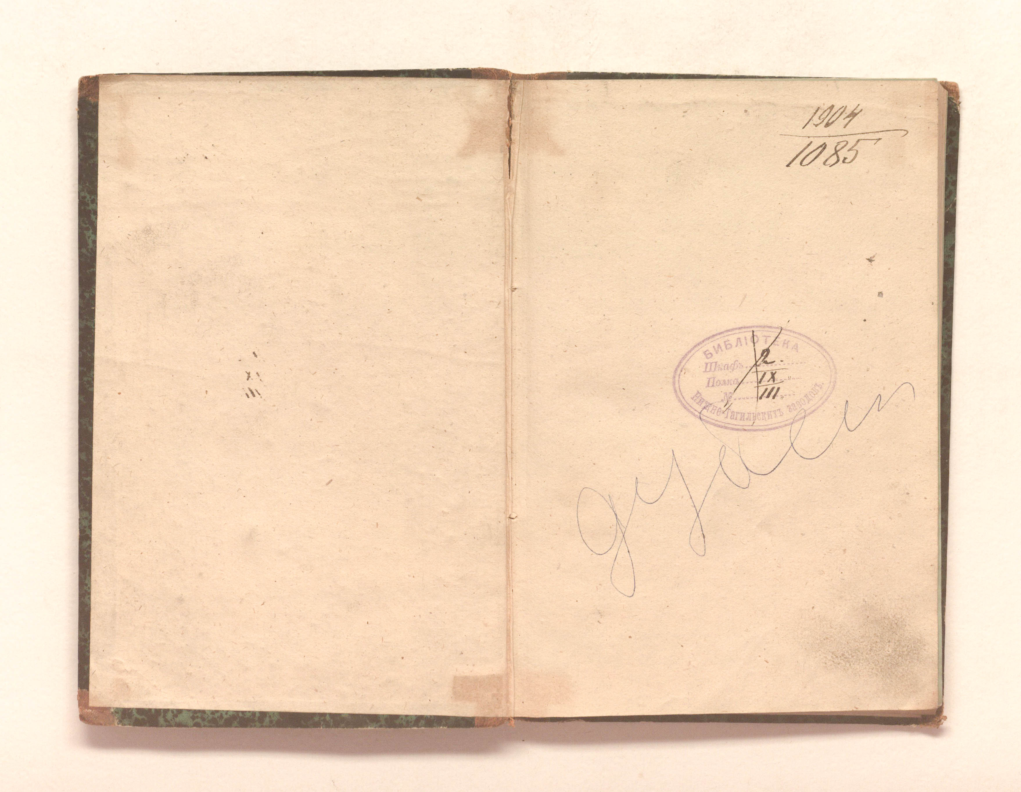 «Библиотека Нижне-Тагильских заводов. Шкаф 2. Полка IX. № III» (форзац);