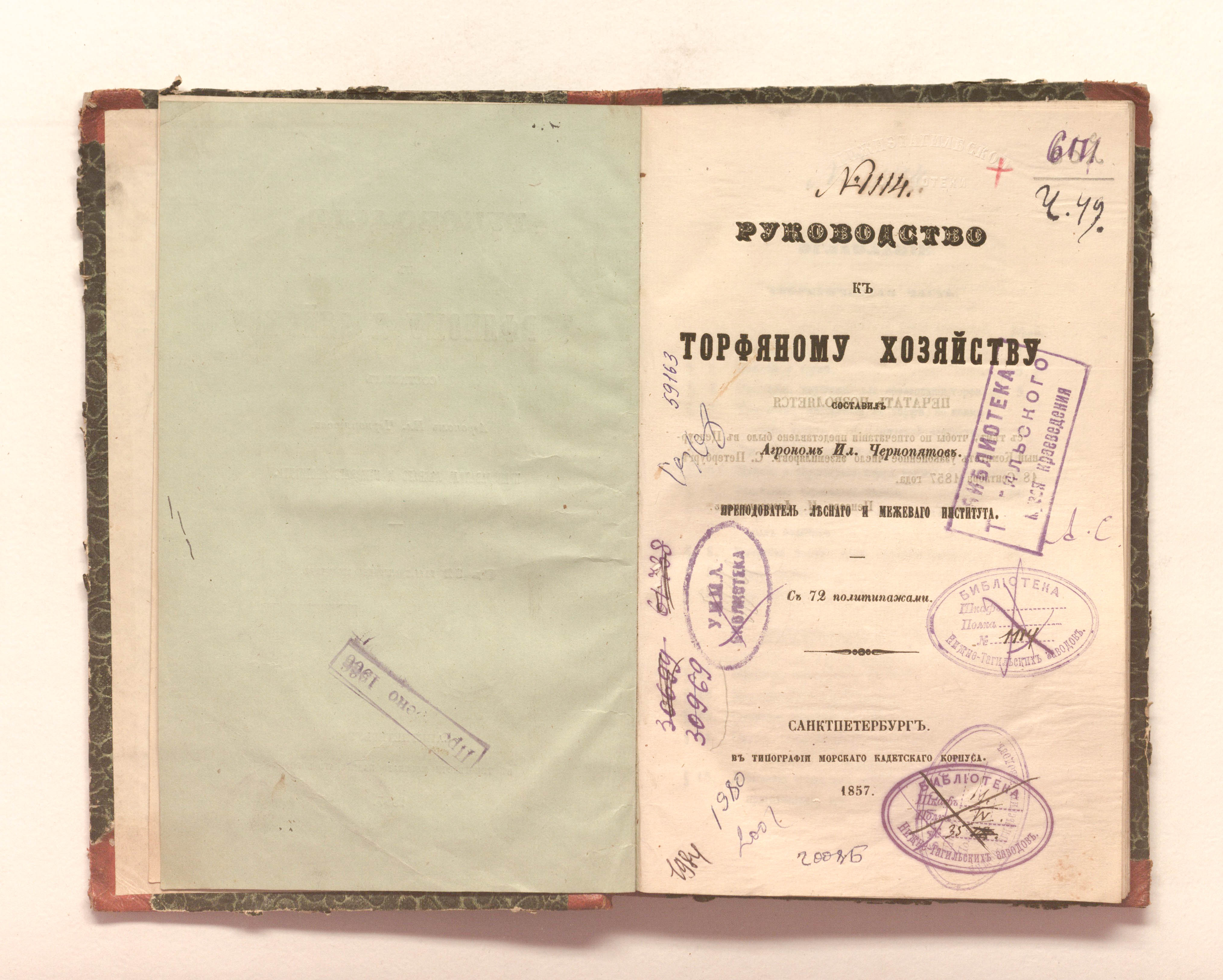 «Библиотека Нижне-Тагильских заводов. № 1114» (форзац, тит. л.);