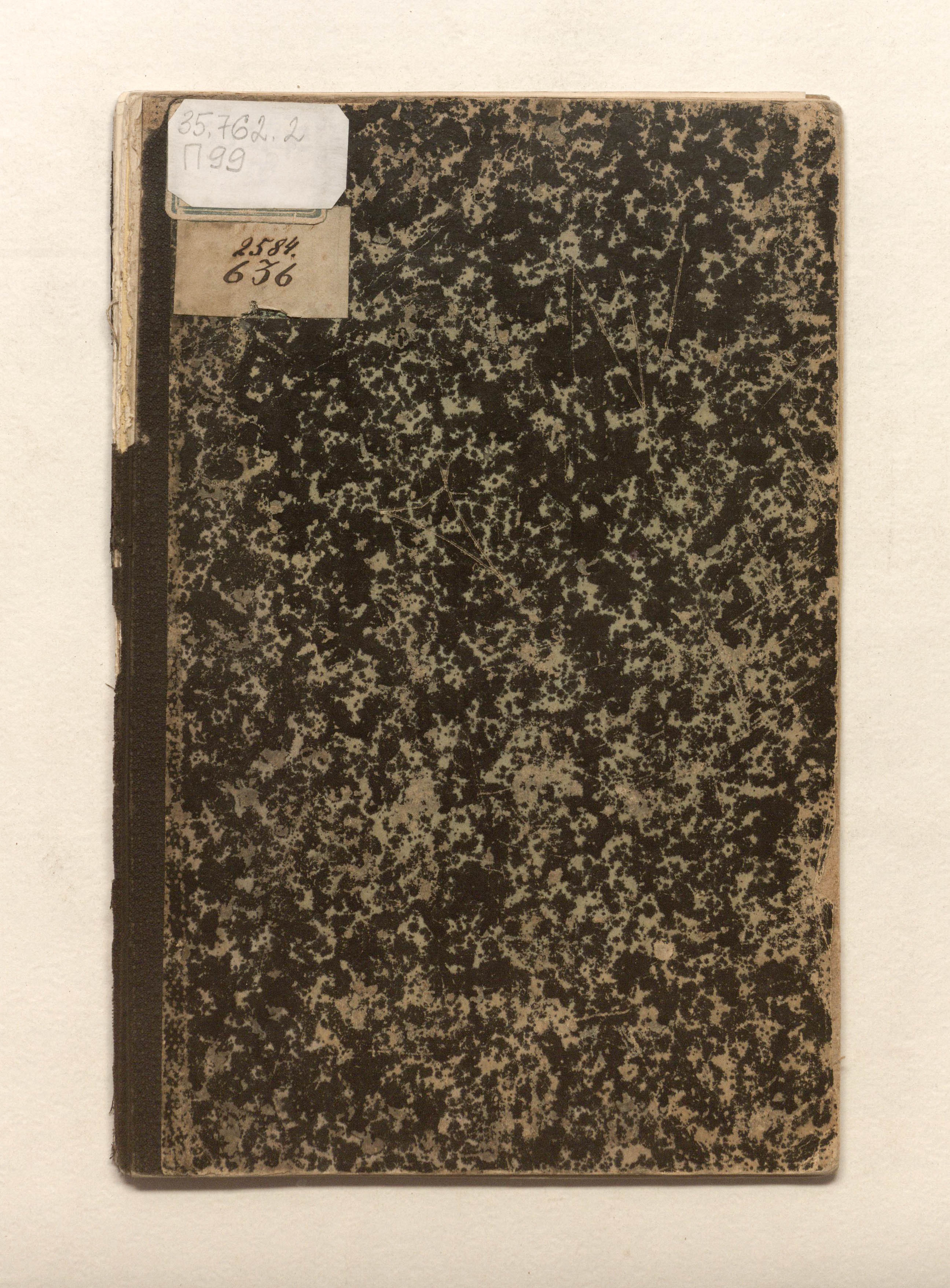 Книга в картонном владельческом переплете. Мраморная бумага.