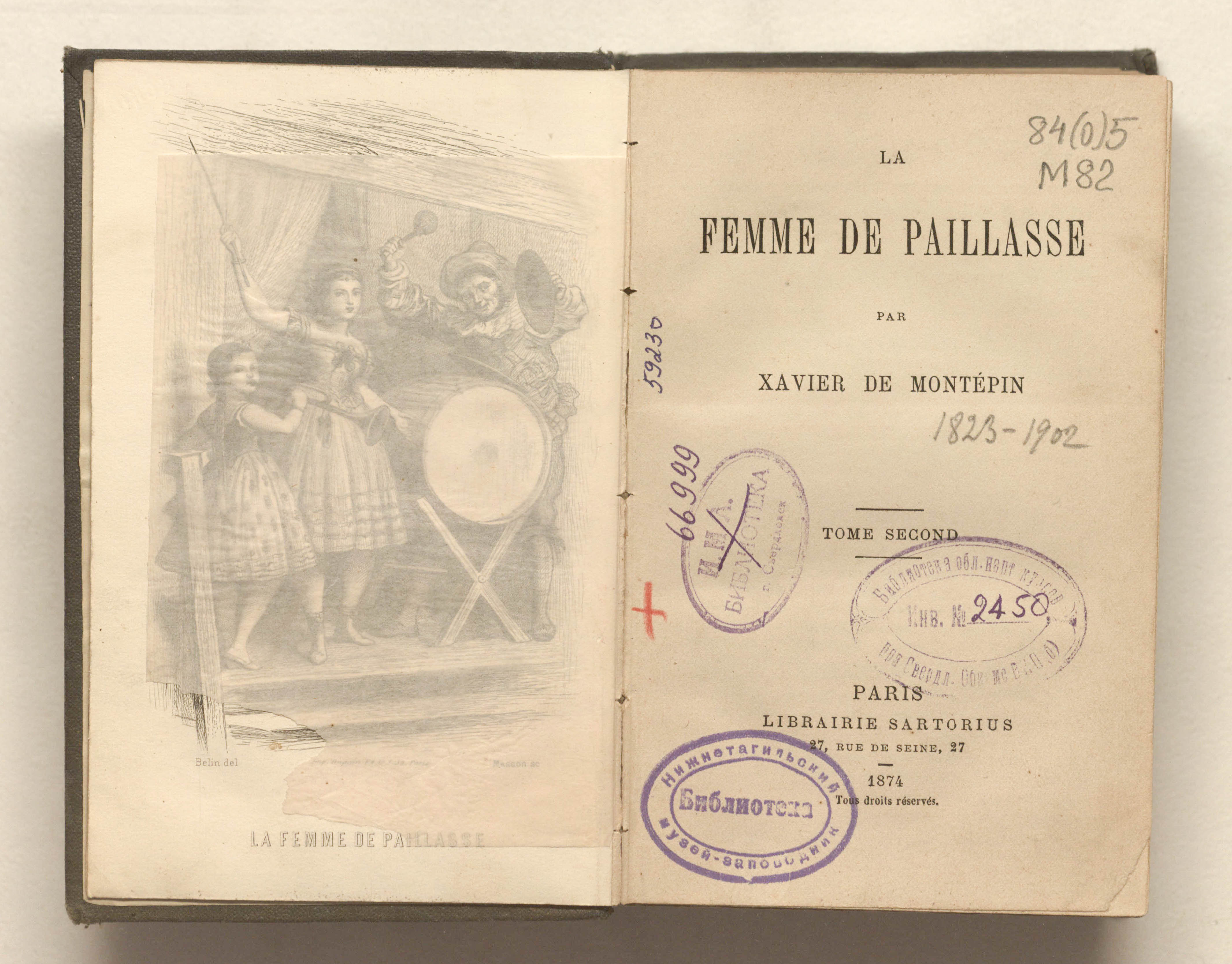 La femme de paillasse, par Xavier de Montepin. – 2 t. – T. 2. - Paris : Sartorius, 1874. - 352, 8 p. : grav. front.; 11,5x18 cm.