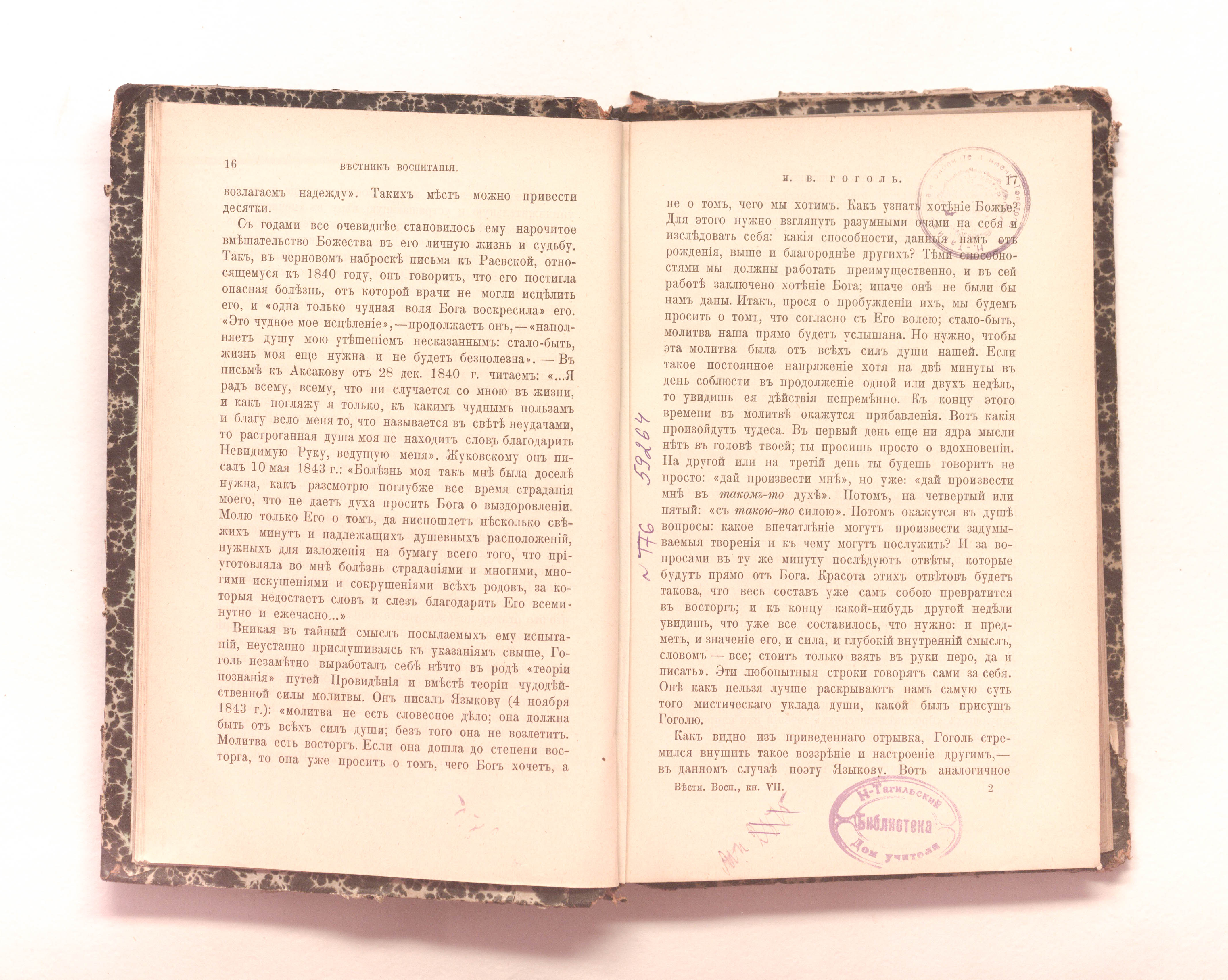 «Библиотека Нижне-Тагильских заводов. Шкаф 34. Полка IV. № 30» (изд. обл.);
