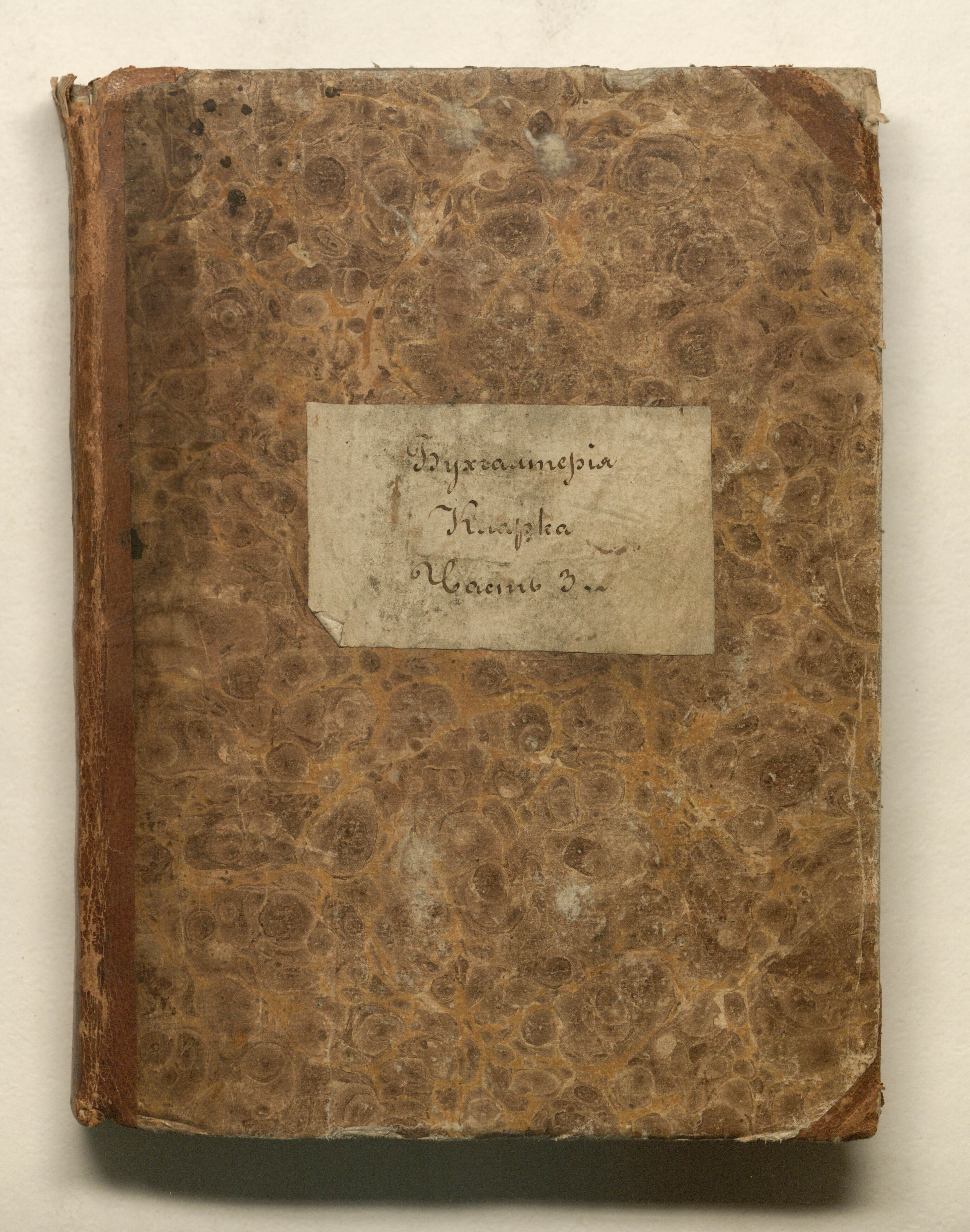 Книга в полукожаном владельческом переплете. Мраморная бумага.