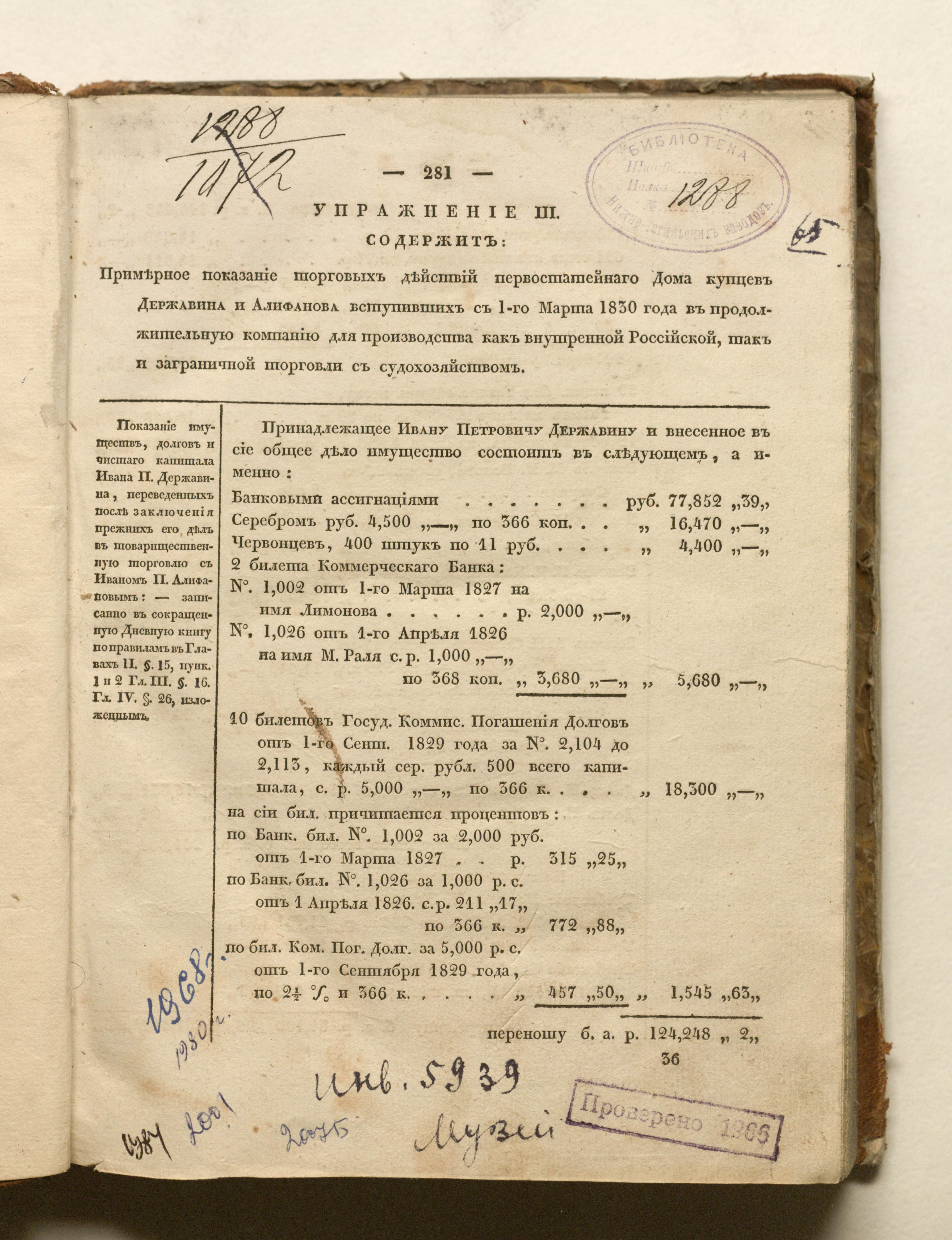 «Библиотека Нижне-Тагильских заводов. № 1288» (форзац, с. 281).