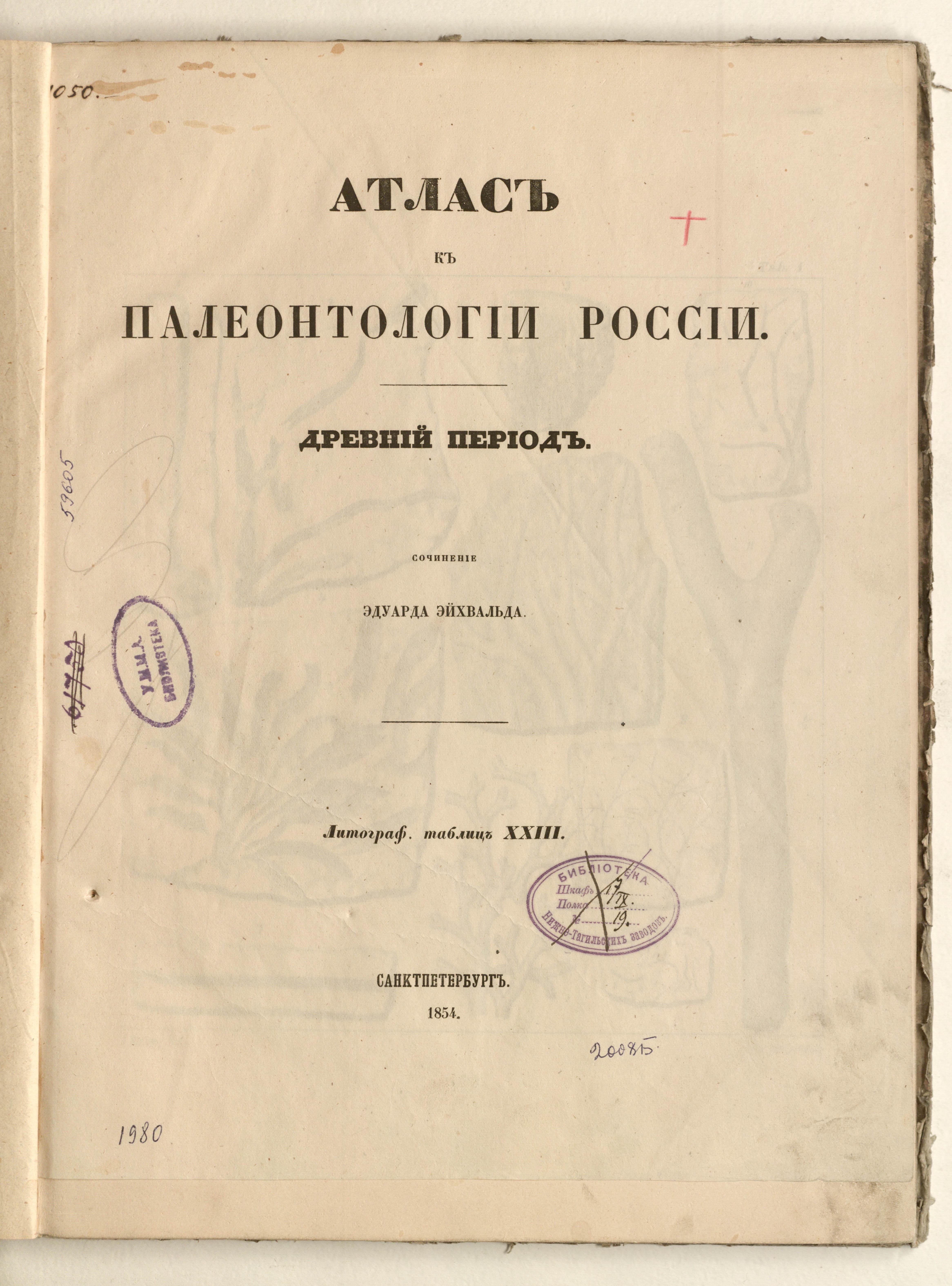 Атлас к Палеонтологии России. Древний период / Э. И. Эйхвальд. — Санкт-Петербург : [б. и.], 1850. — XIV табл. ; 37х28 см.