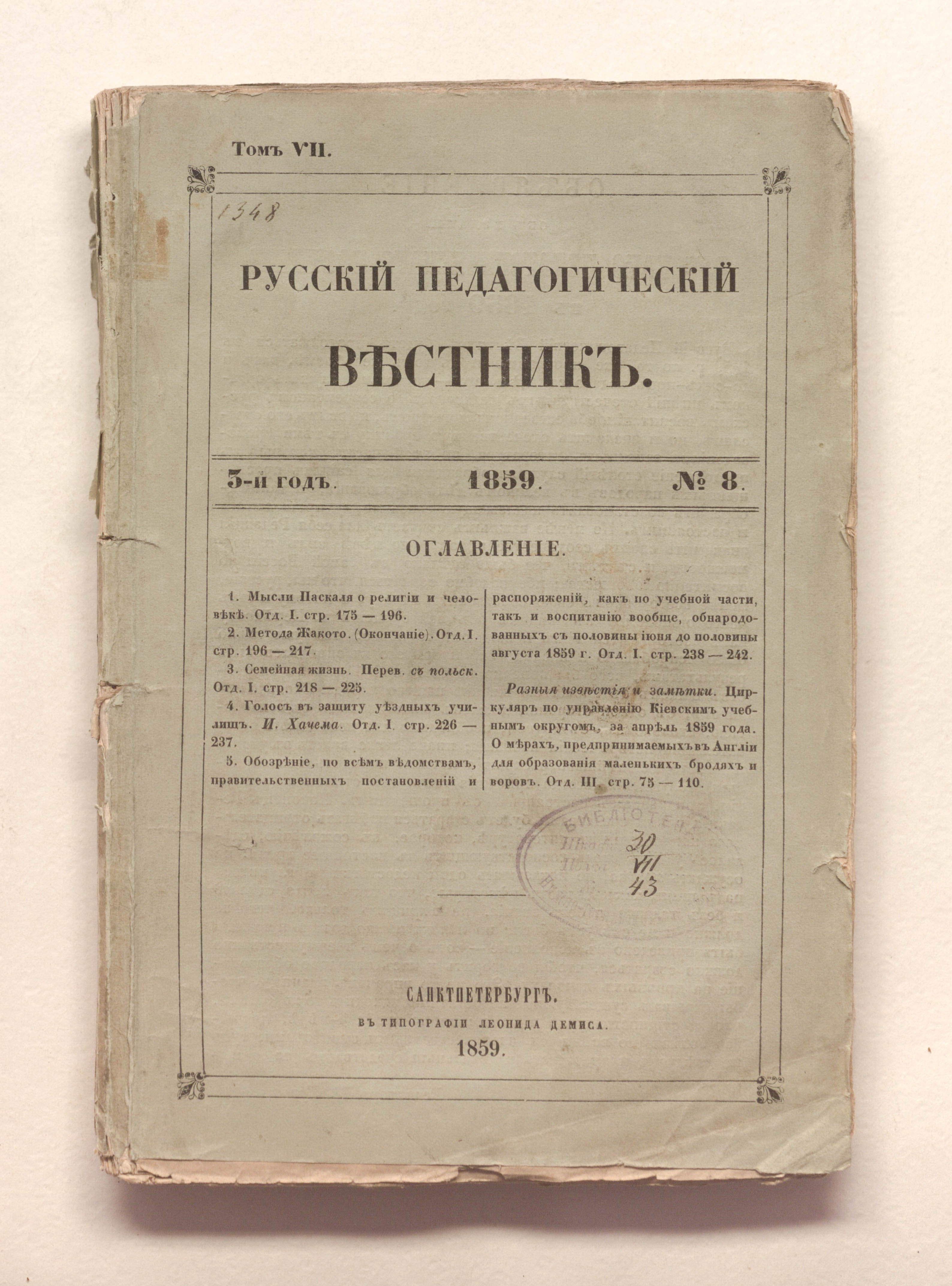 Русский педагогический вестник. – Санкт-Петербург : [б. и.], 1857 – 1861.