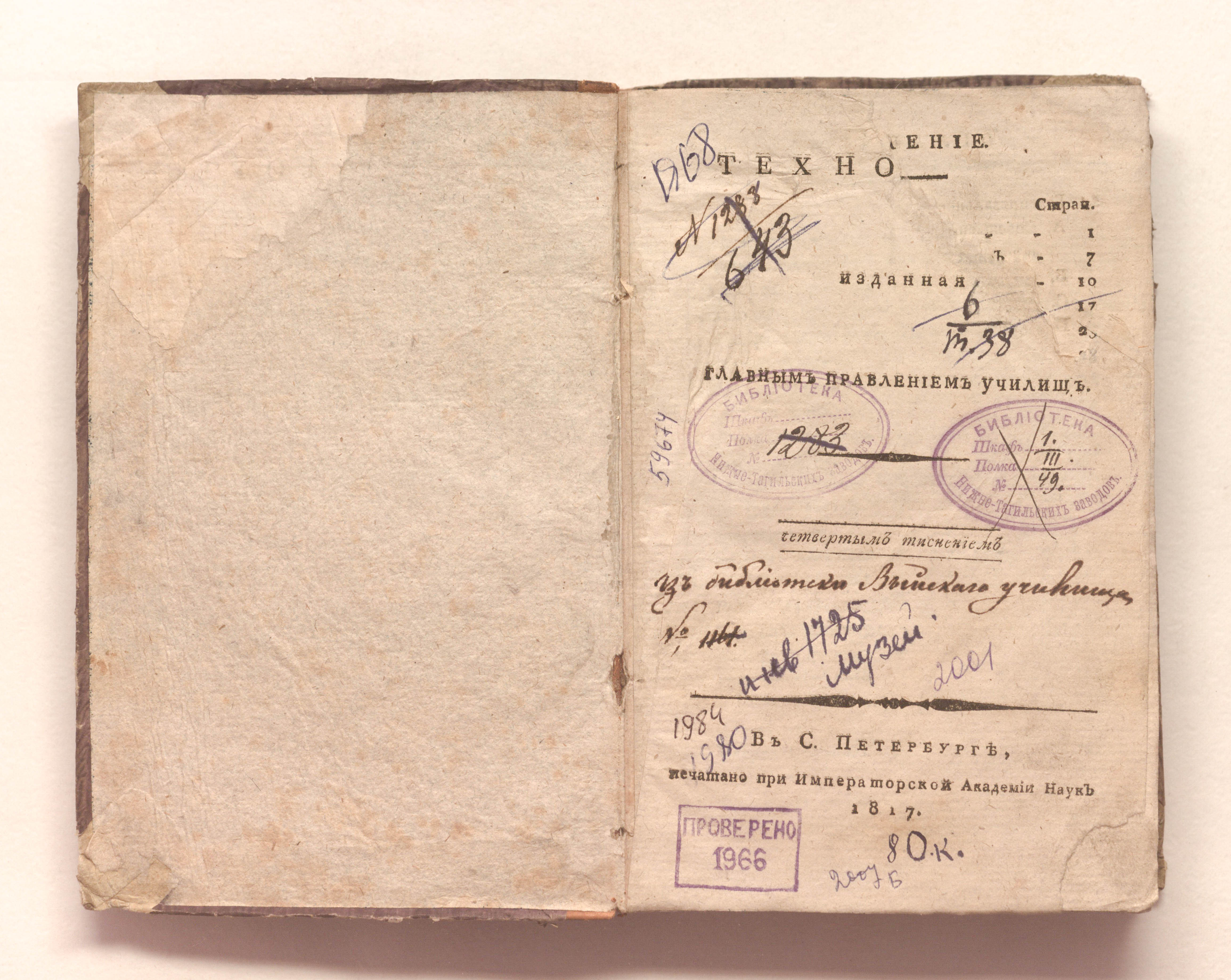 Технология, изданная Главным правлением училищ : четвертым тиснением. – Санкт-Петербург : печатано при Императорской Академии наук, 1817. – VI, 312 с. ; 19,5х12,5 см.