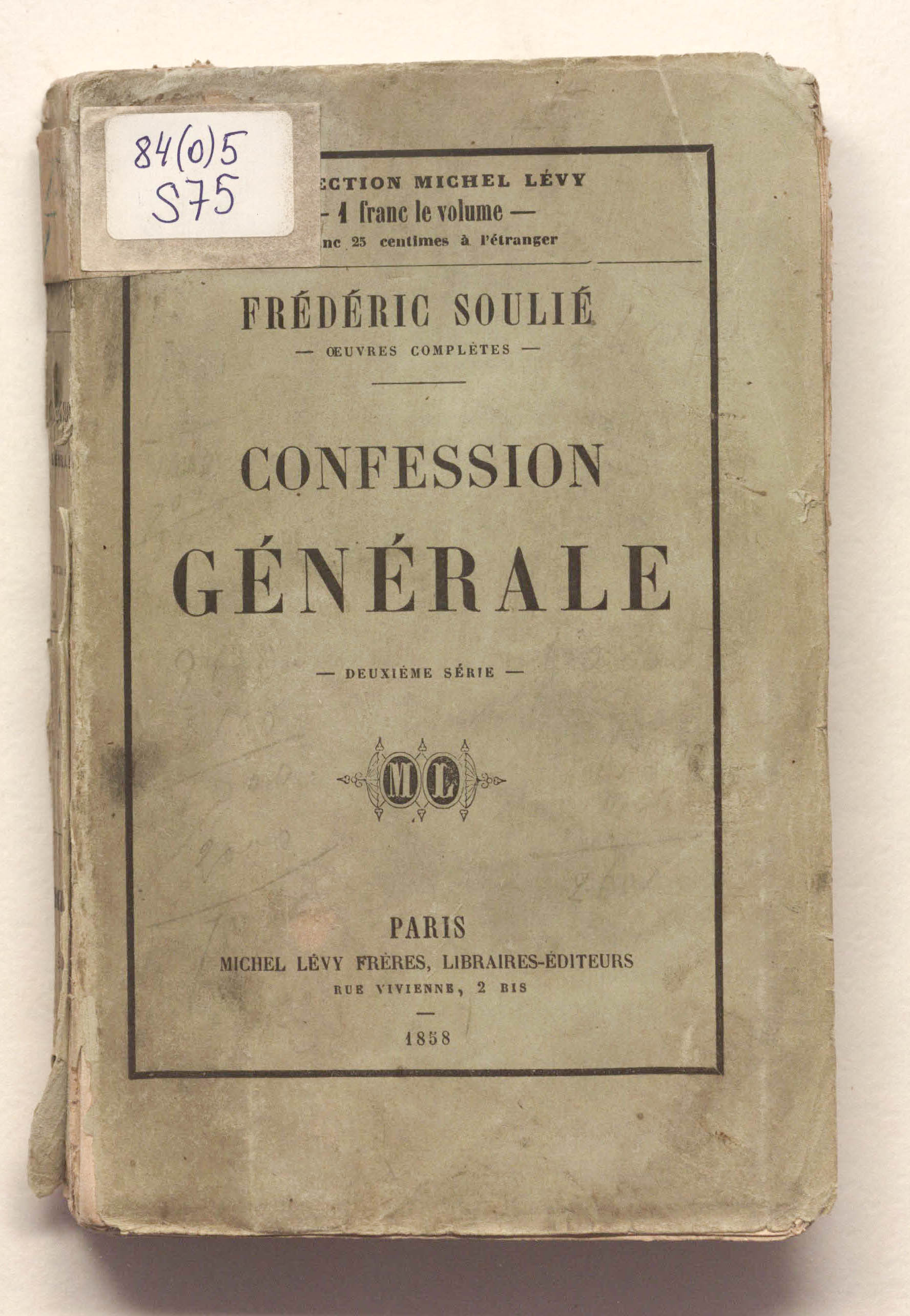 Confession générale par Frédéric Soulié / Oeuvres complètes de Frédéric Soulié. – Paris : Michel-Lévy frères, 1858. – 342 p. ; 12x18,5 cm.