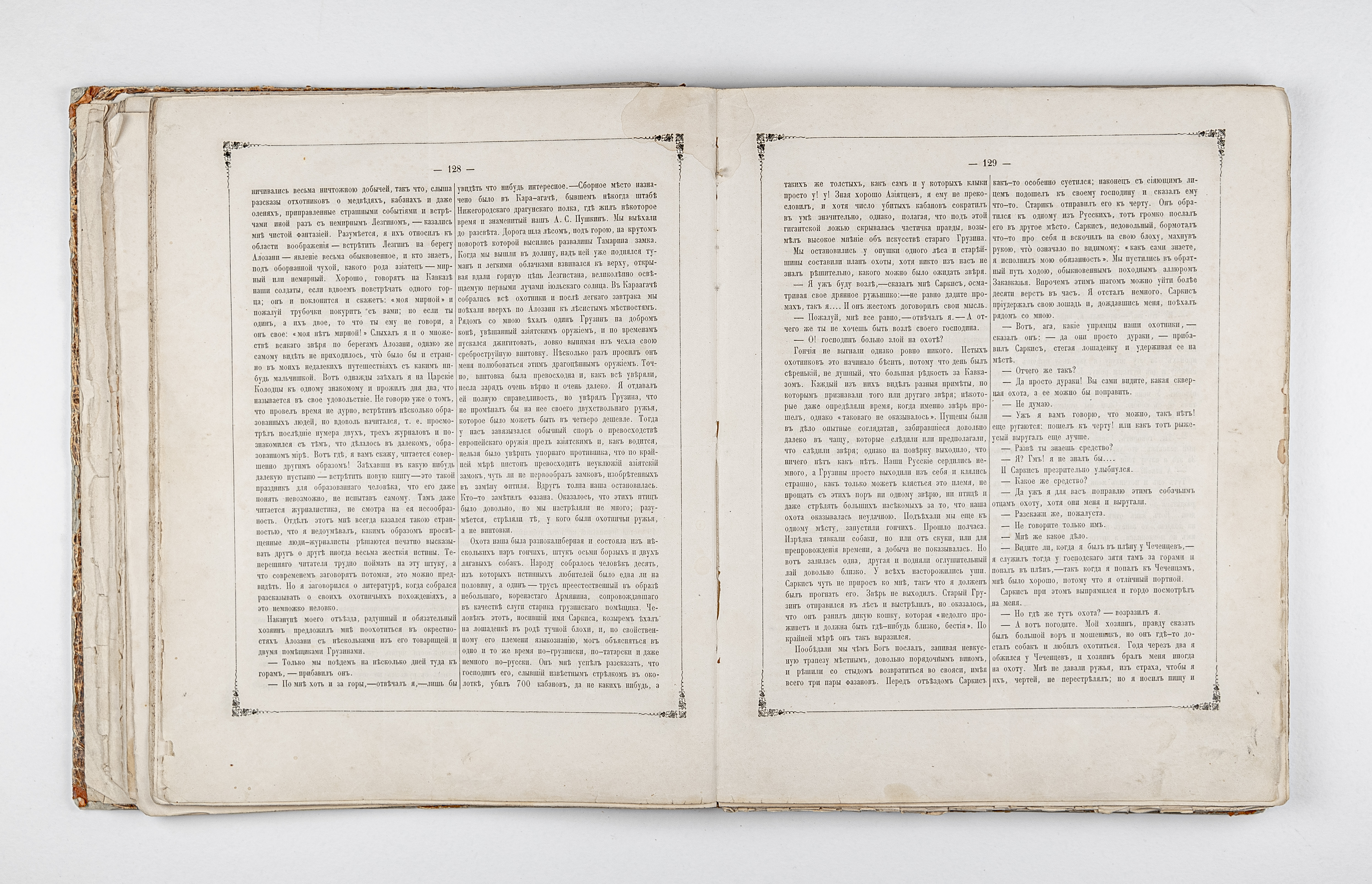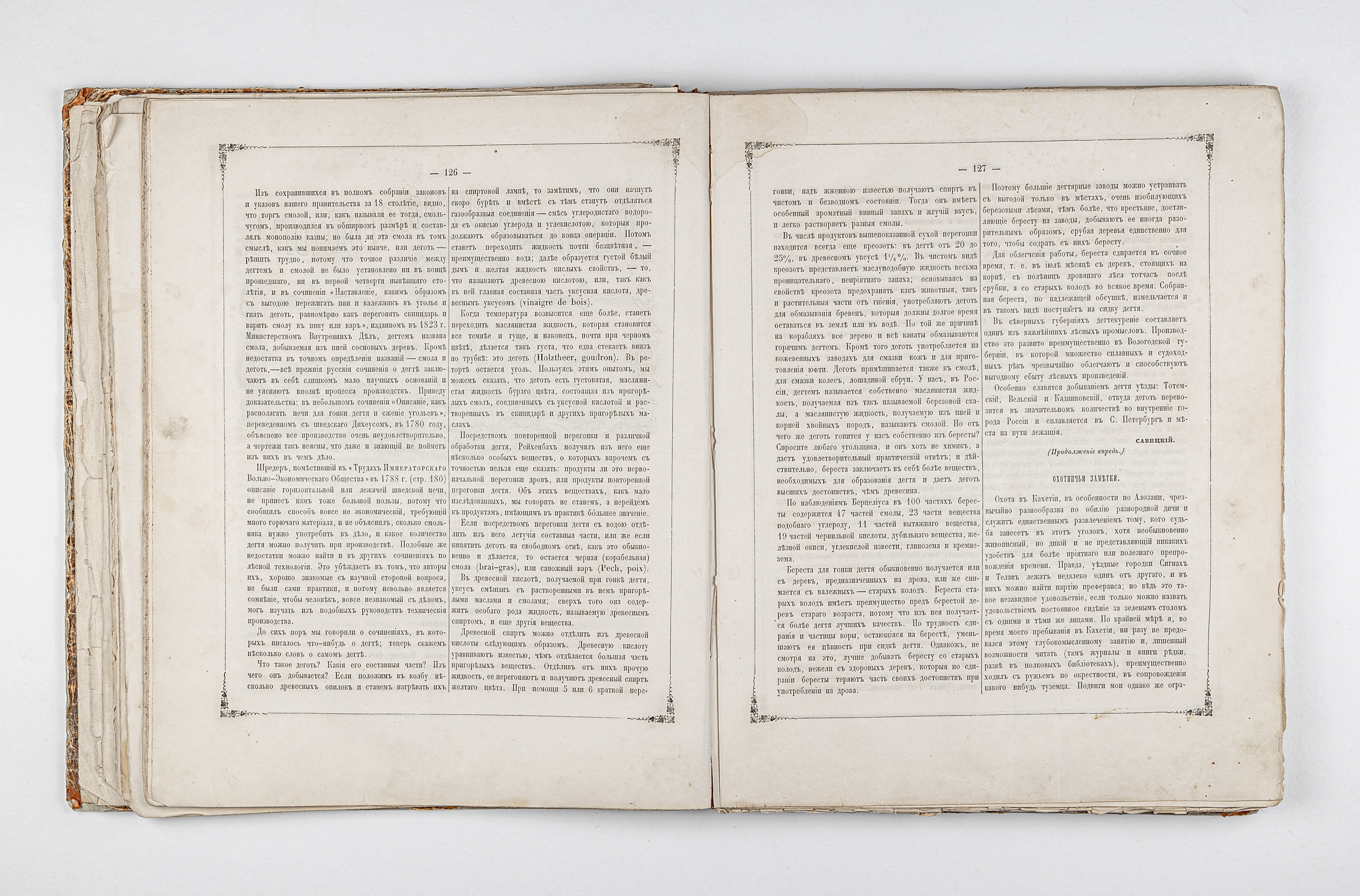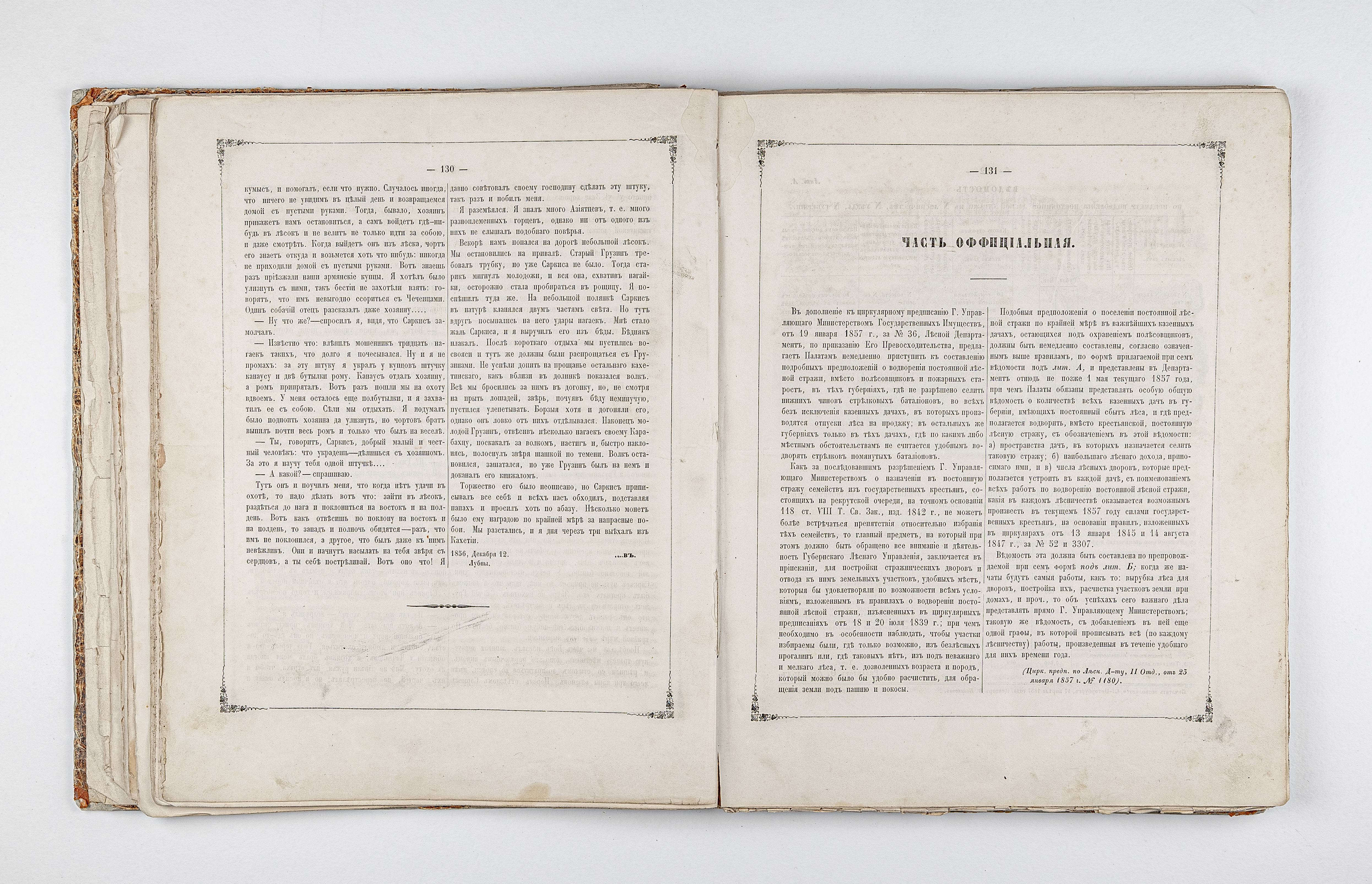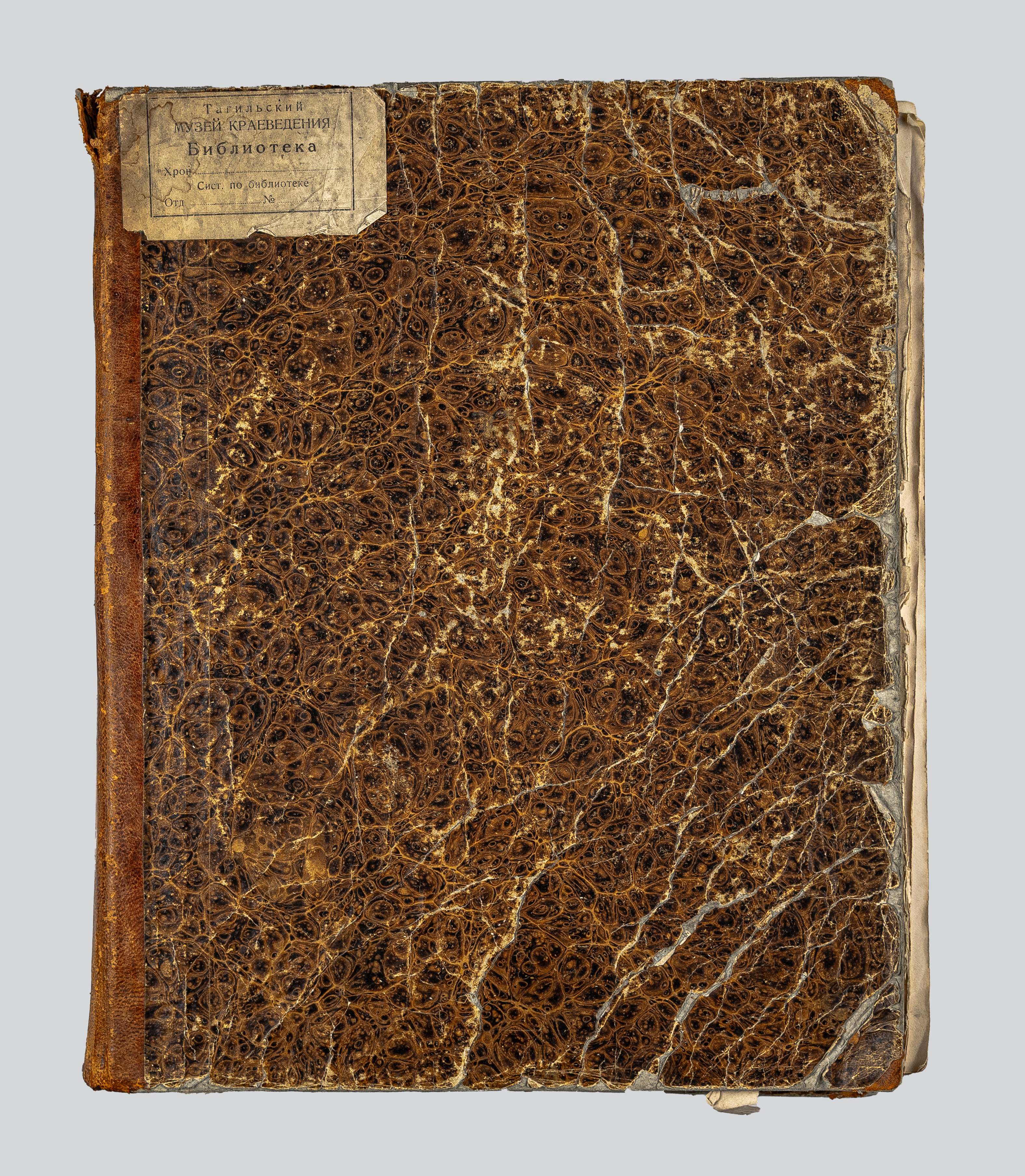 Подшивка в полукожаном владельческом переплете. Крышки переплета обтянуты бумагой с рисунком «под мрамор».