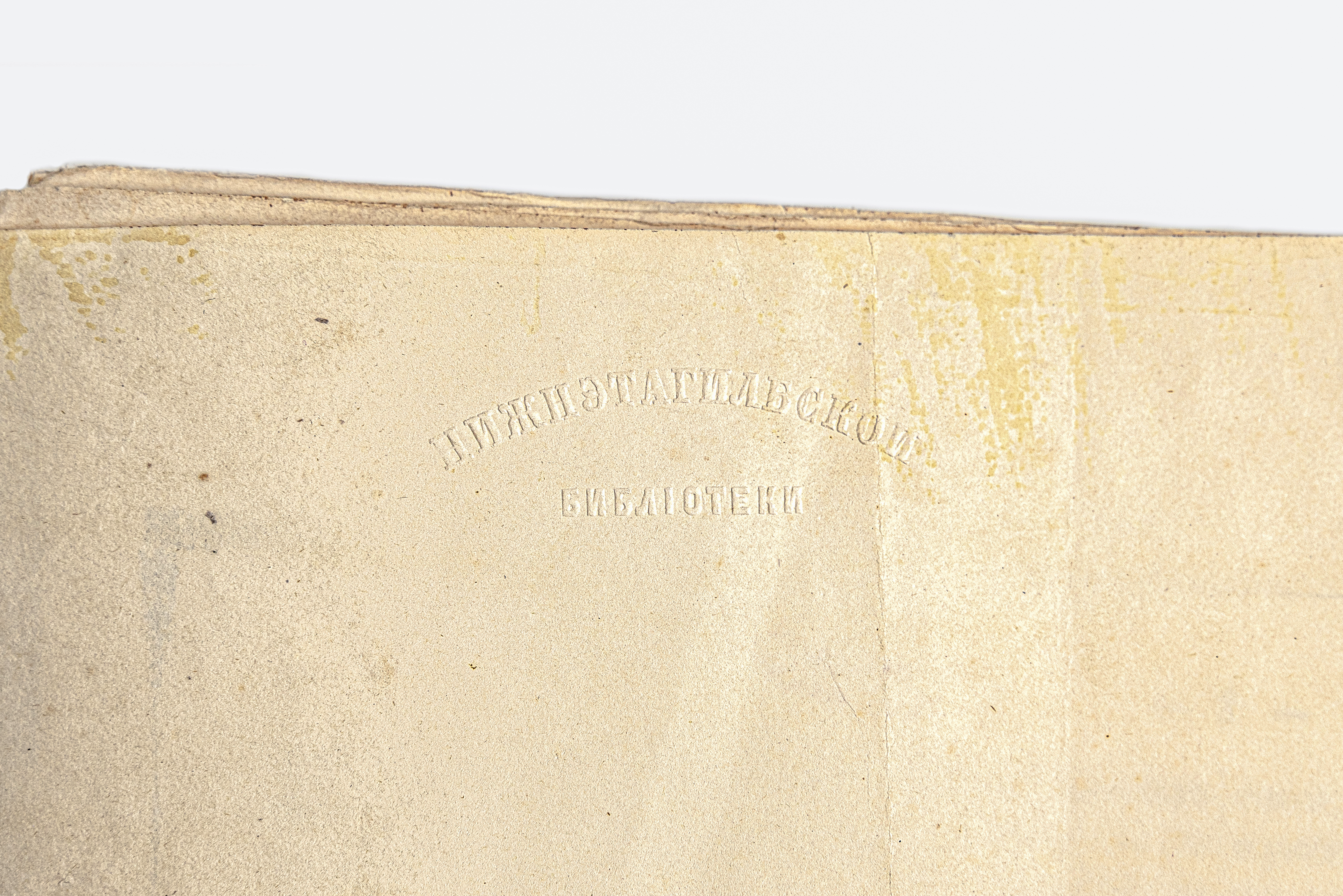 Конгревное тиснение «Нижнэтагилбской библиотеки» (тит. л.).
