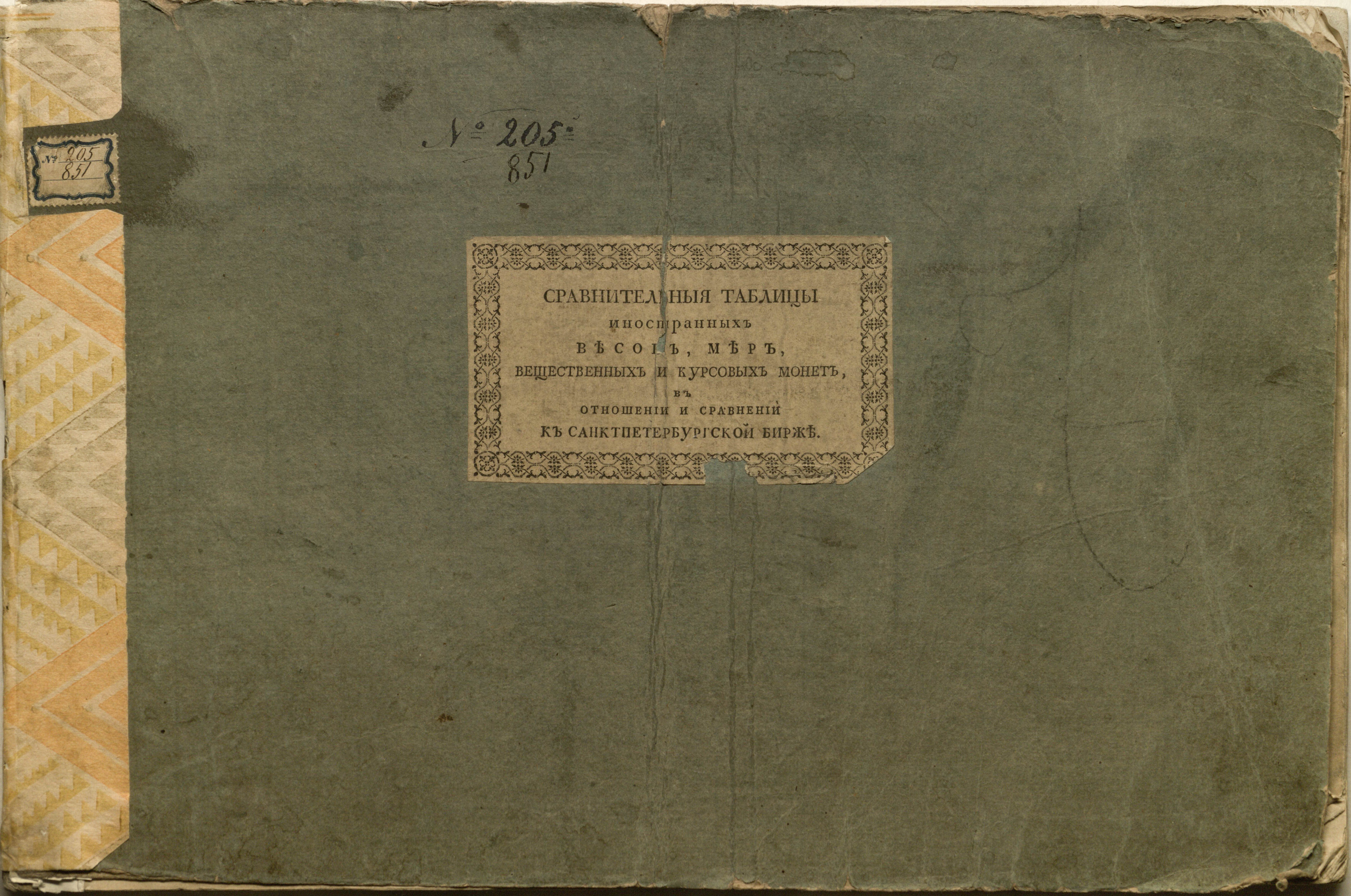 Сравнительныя таблицы иностранных весов, мер, вещественных и курсовых монет, в отношении и сравнении к Санктпетербургской бирже