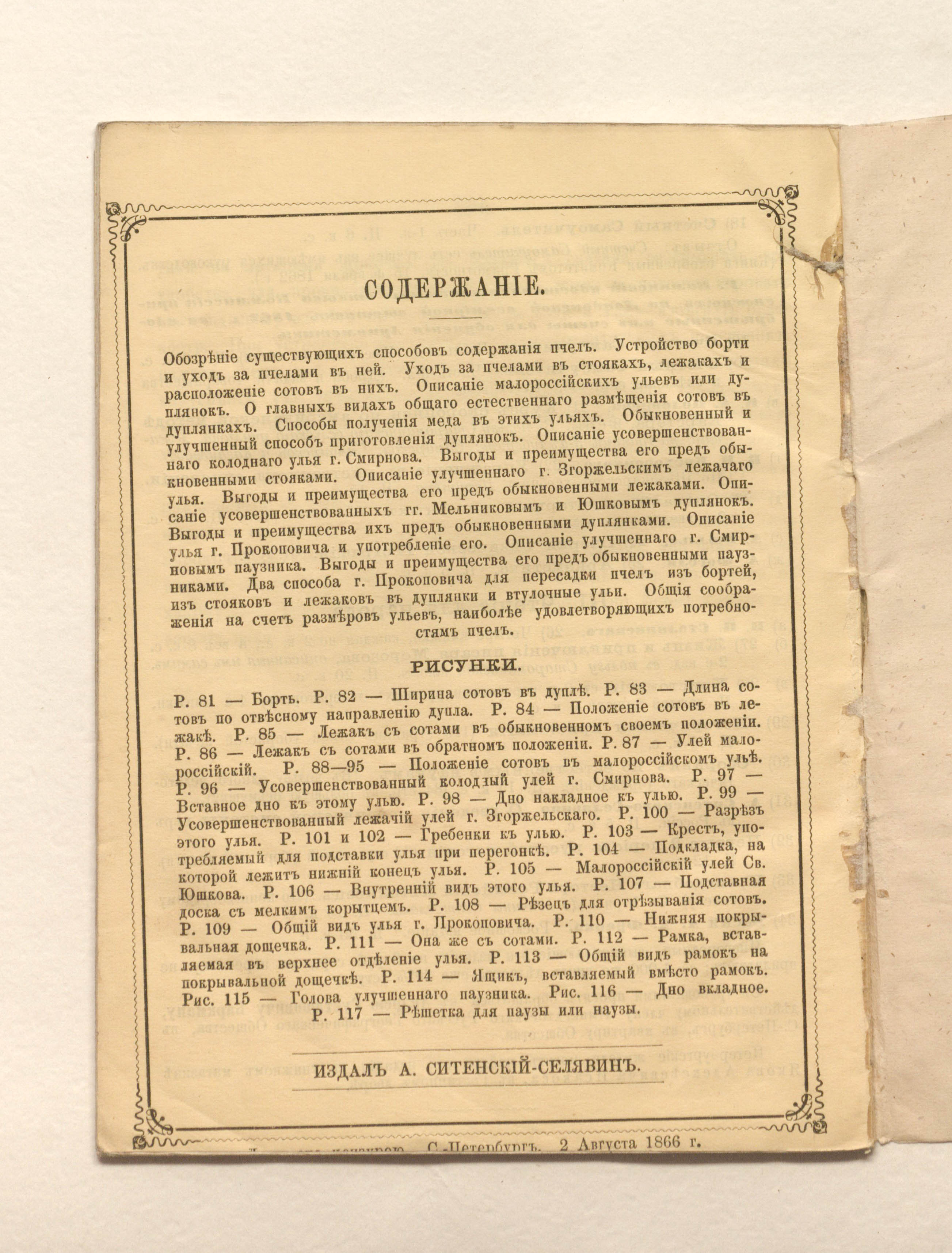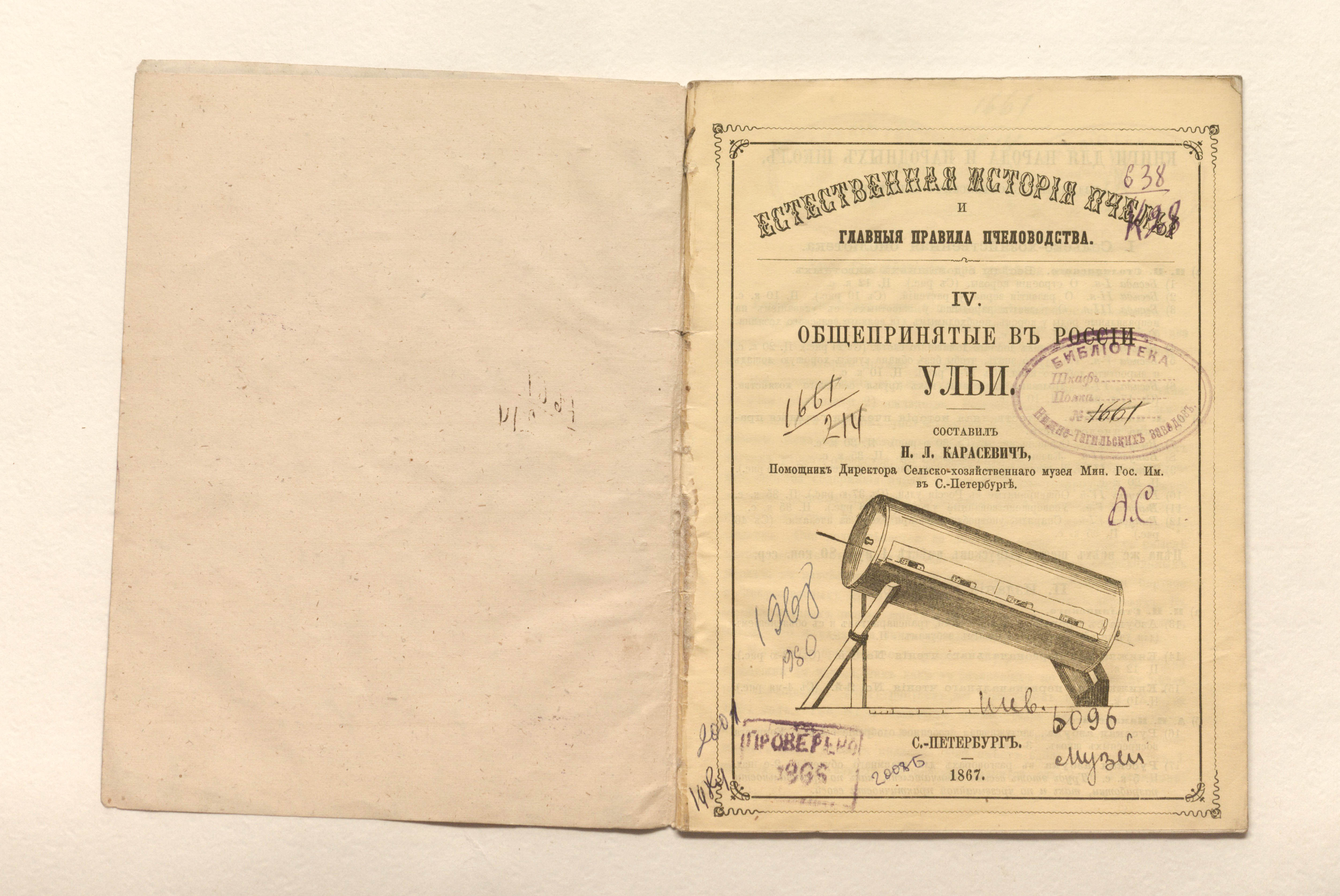Естественная история пчелы и главныя правила пчеловодства / Н. Л. Карасевич. – Санкт-Петербург : типография В. Безобразова, Ч. I-VI, 1866-1867. Ч. IV. Общепринятые в России ульи, 1867. – 141-190 с. : ил. ; 17,5х13 см.