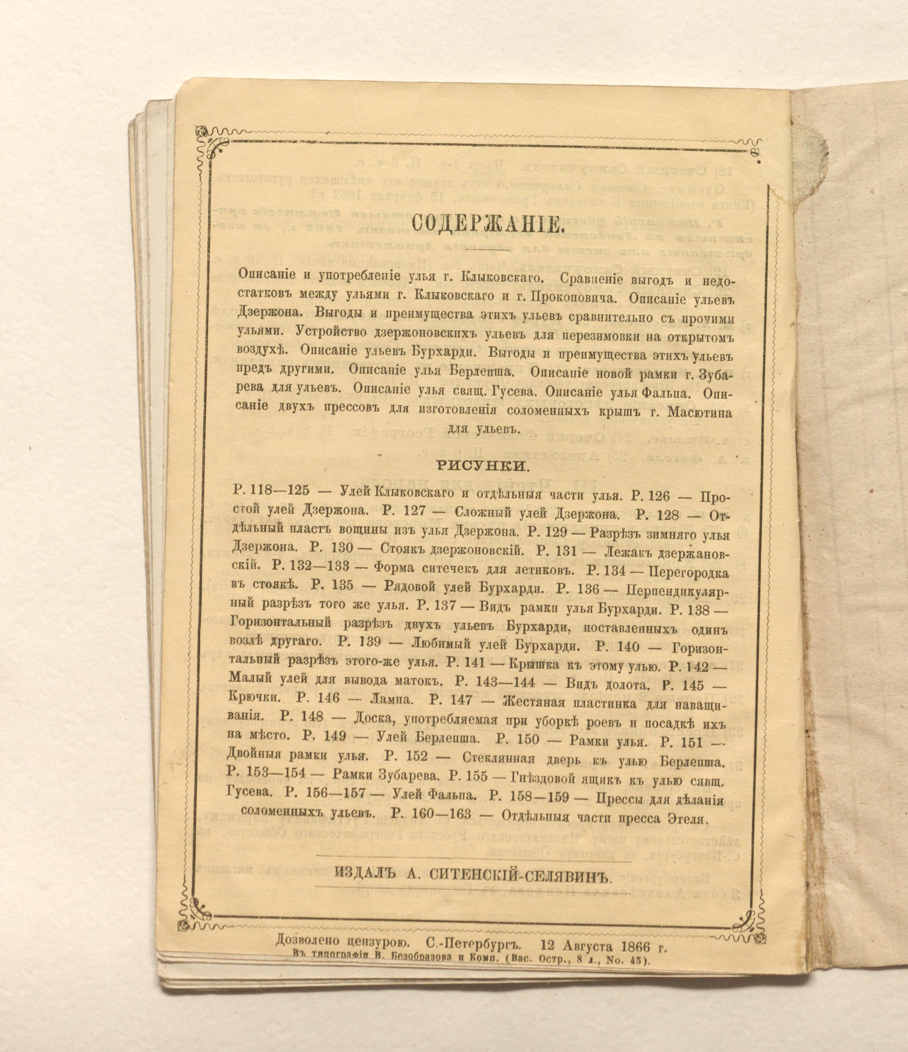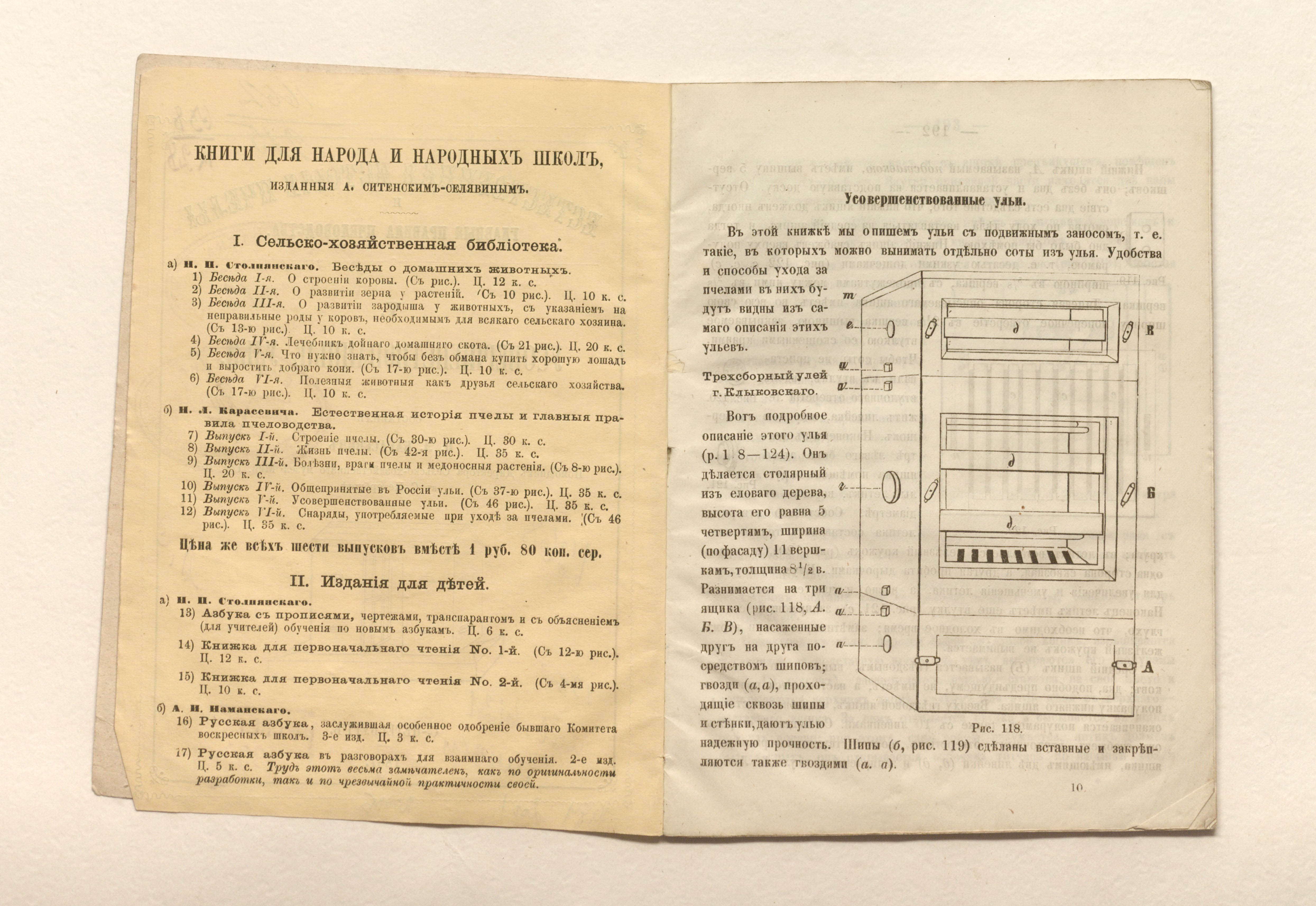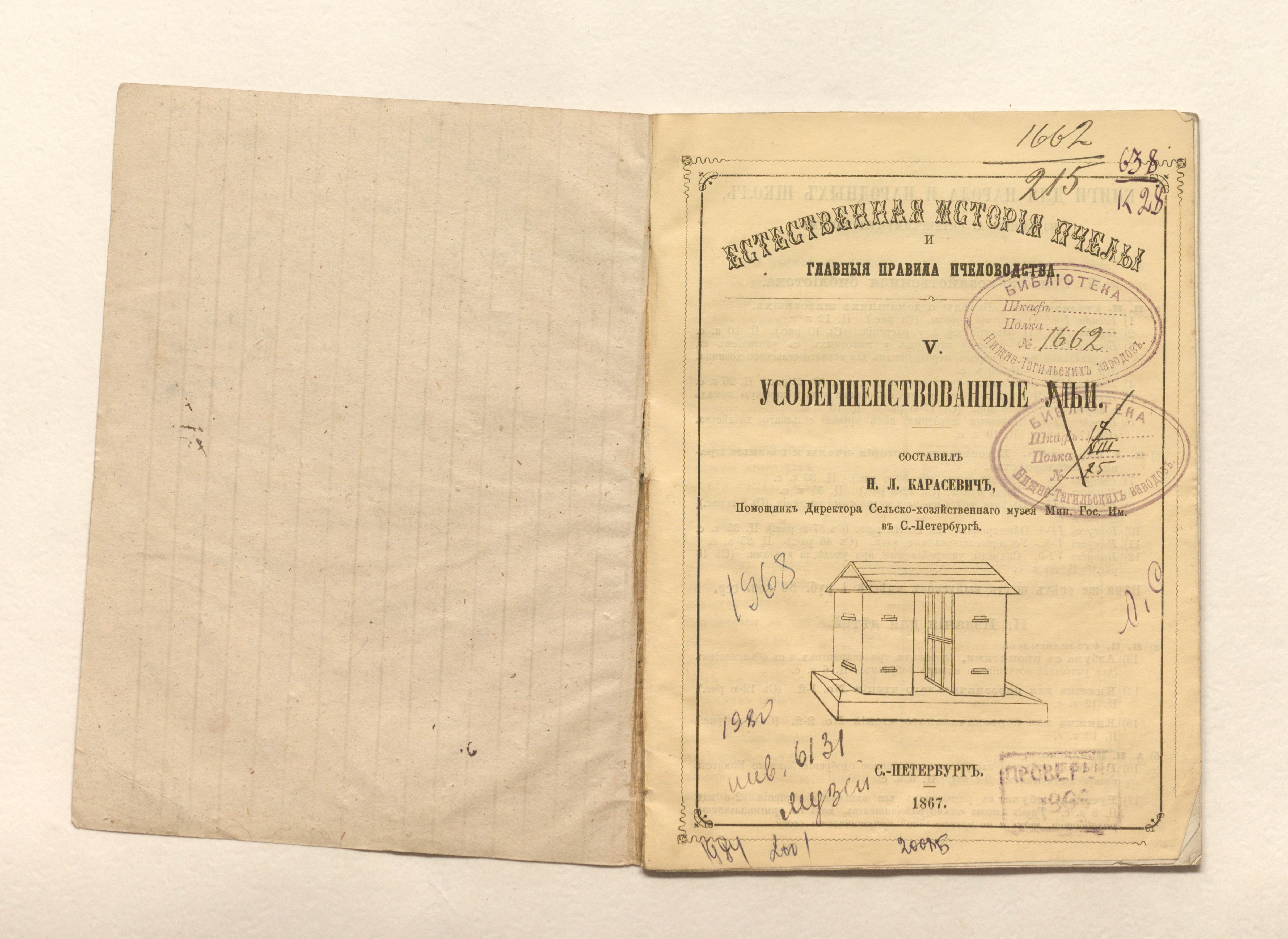 Естественная история пчелы и главныя правила пчеловодства / Н. Л. Карасевич. – Санкт-Петербург : типография В. Безобразова, Ч. I-VI, 1866-1867. Ч. V. Усовершенствованные ульи, 1867. – 191-242 с. : ил. ; 17,5х13 см.