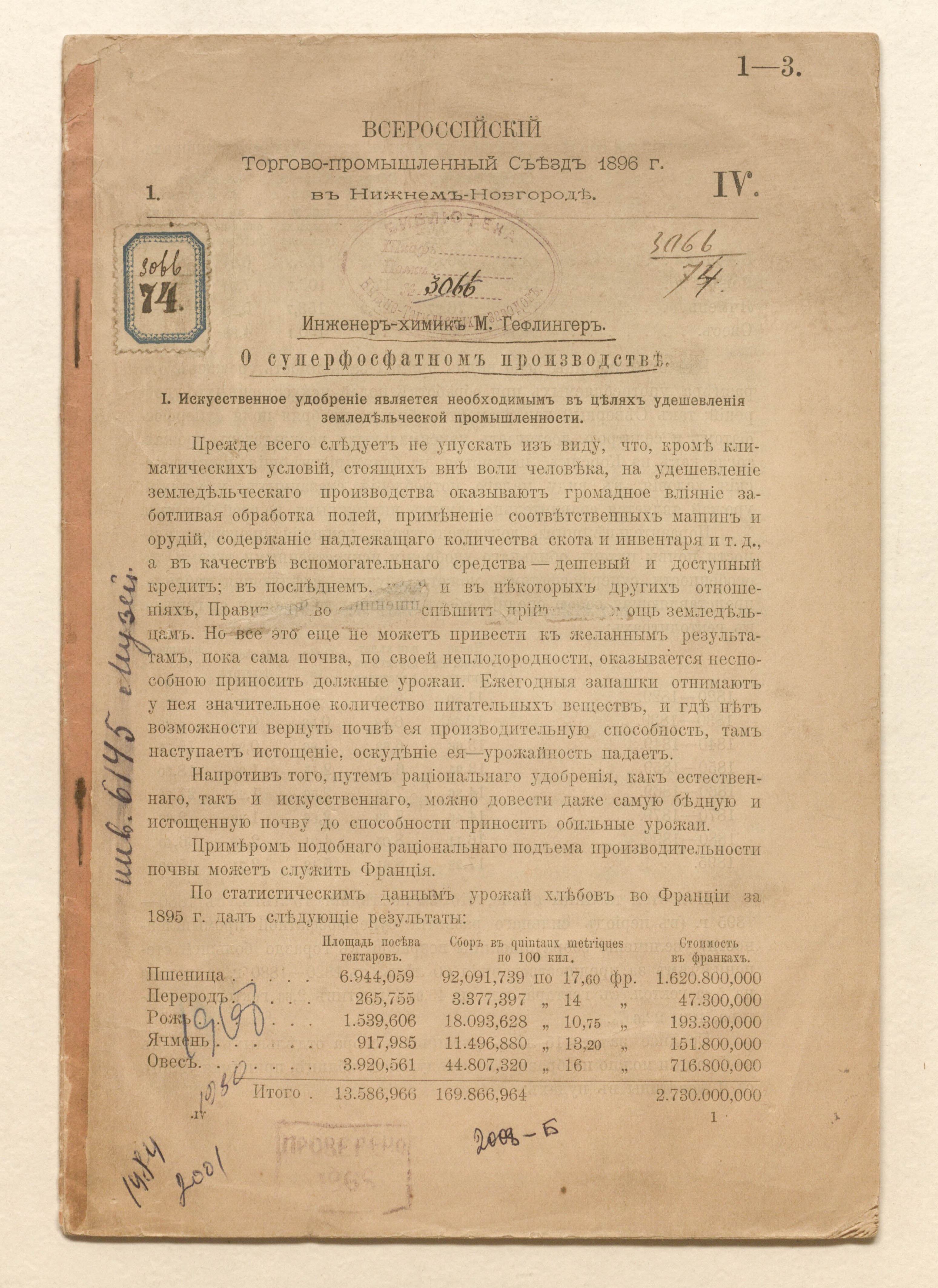 IV. Инженер-химик М. Гефлингер. О суперфосфатном производстве.