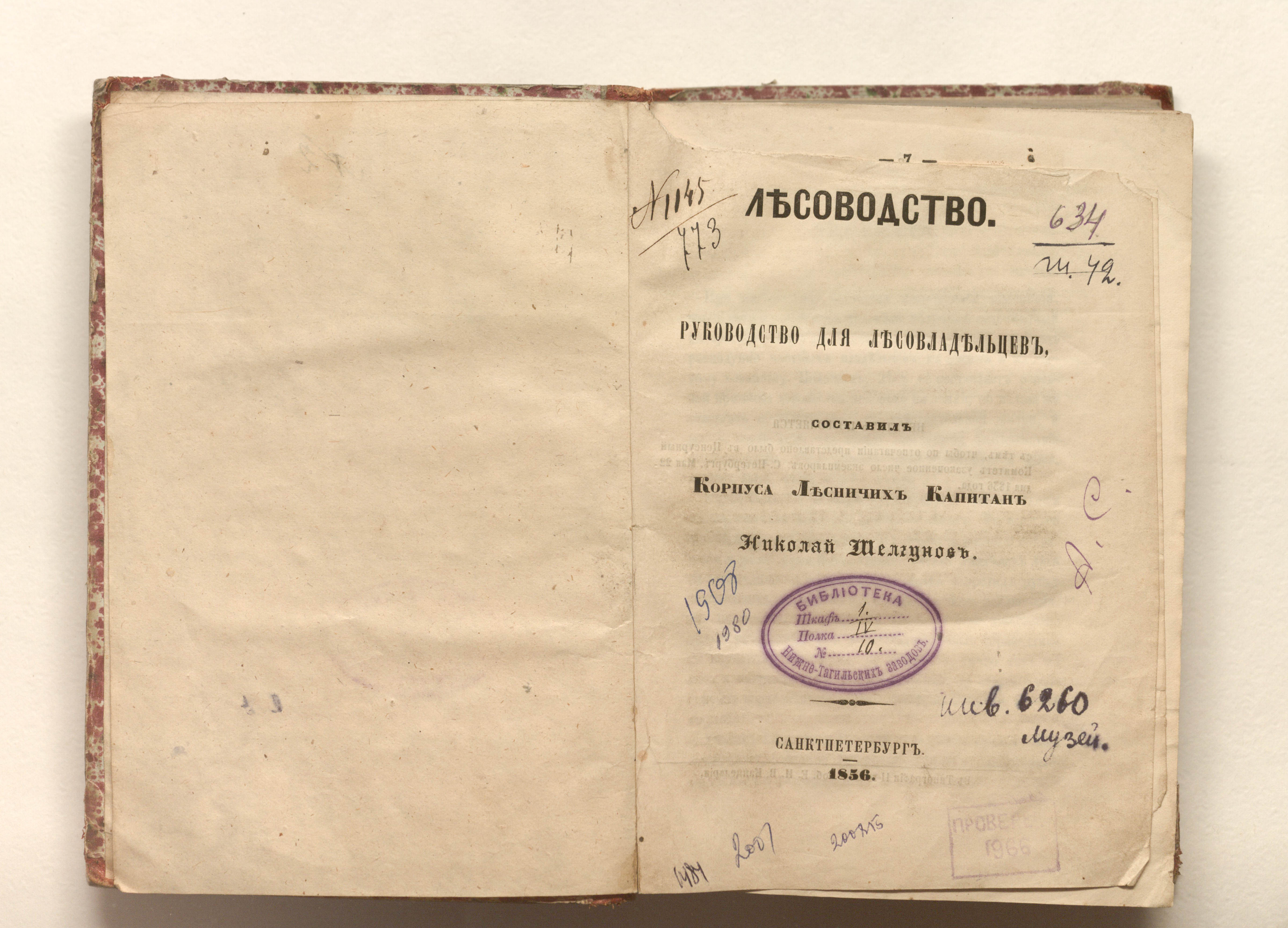 Лесоводство : руководство для лесовладельцев / Сост. Корпуса лесничих кап. Николай Шелгунов. — Санкт-Петербург : тип. 2-го Отд. Соб. Е. И. В. Канцелярии, 1856. — 423, 77 с. ; 21х14 см.