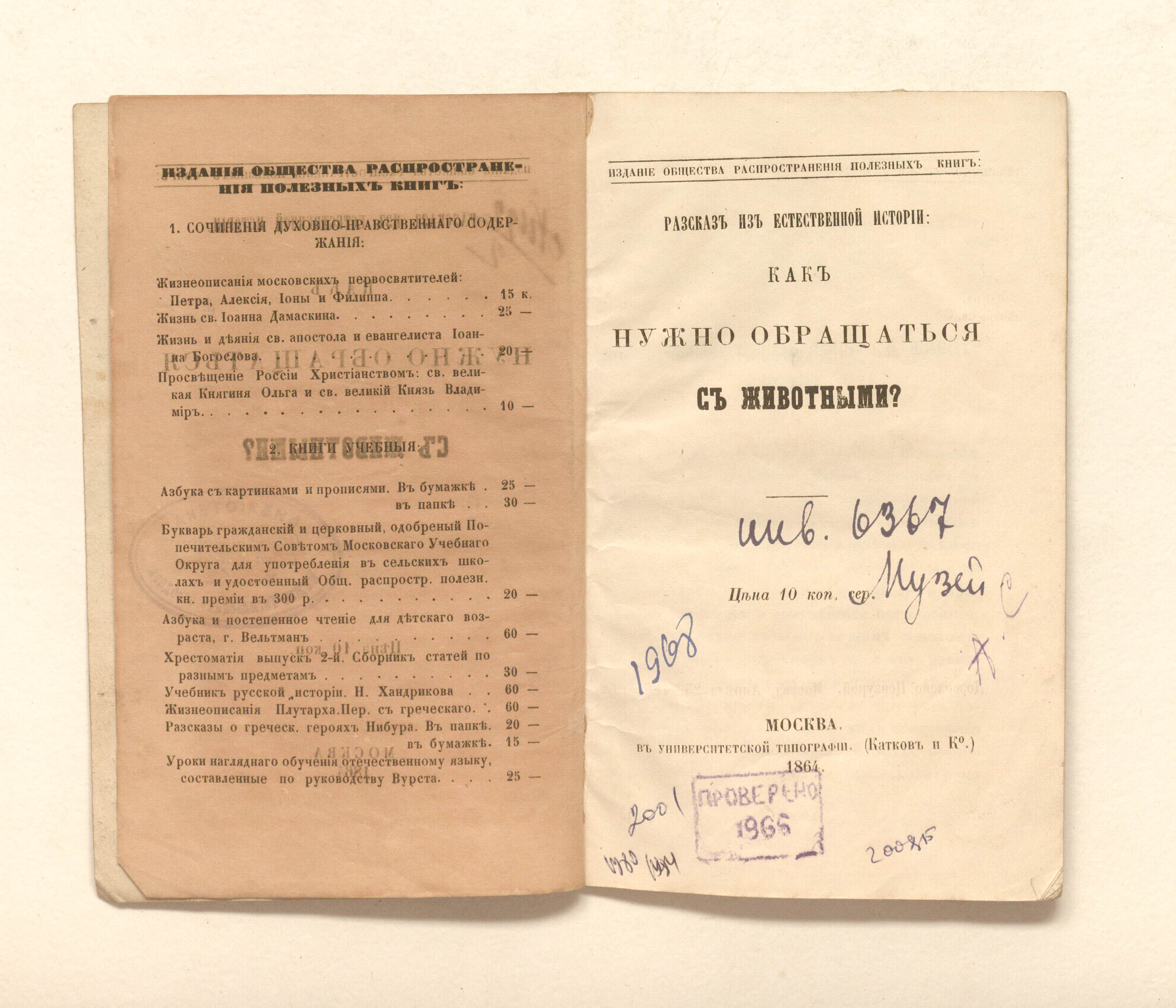 Разсказы из естественной истории : как нужно обращаться с животными?— Москва : В Университетской типографии, 1864. — 45 с. ; 17х11 см.