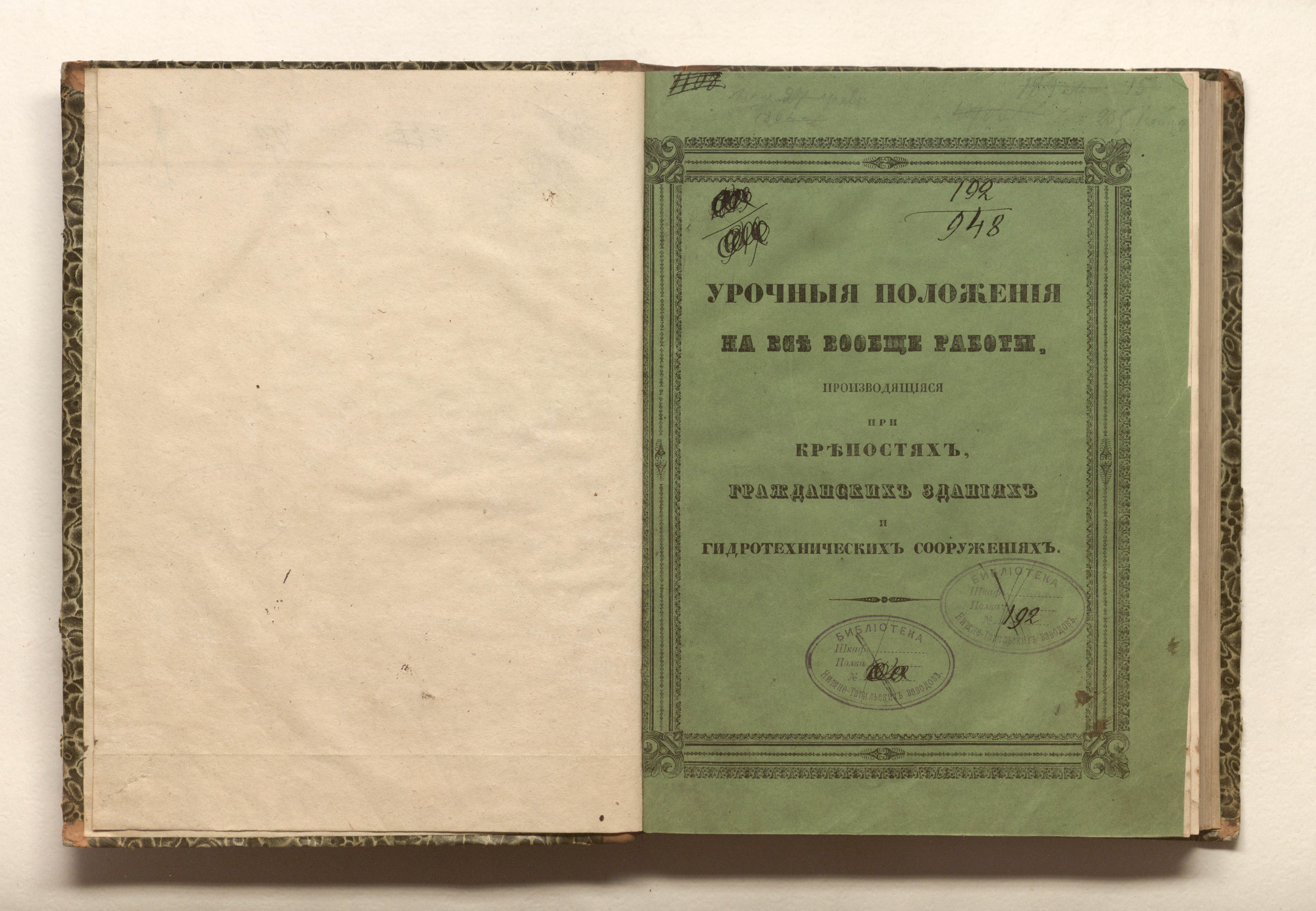 «Библиотека Нижне-Тагильских заводов. № 192 (изд. обл.,форзац).