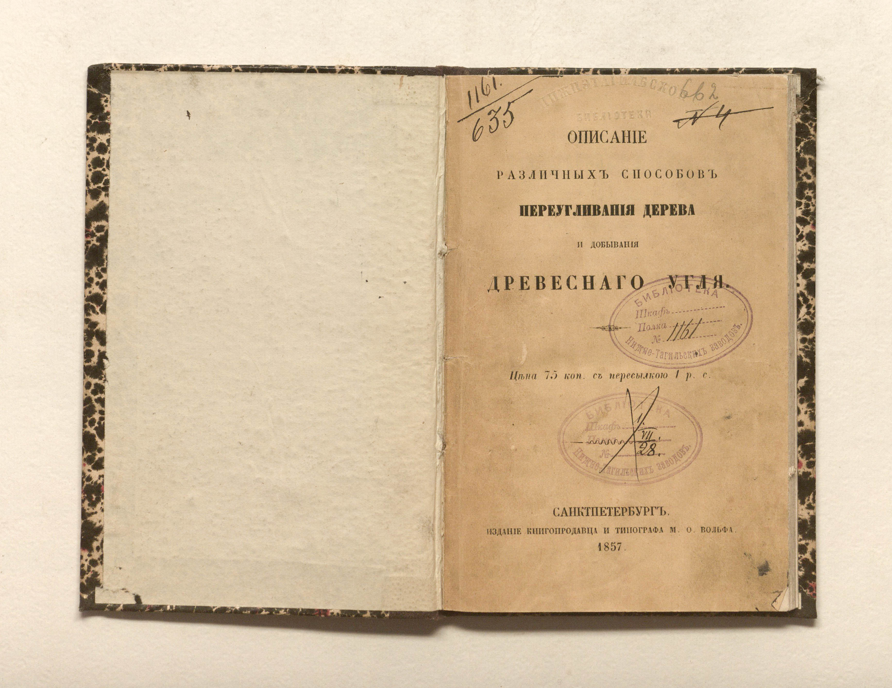 «Библиотека Нижне-Тагильских заводов. № 1161.» (изд. обл., тит. л.);