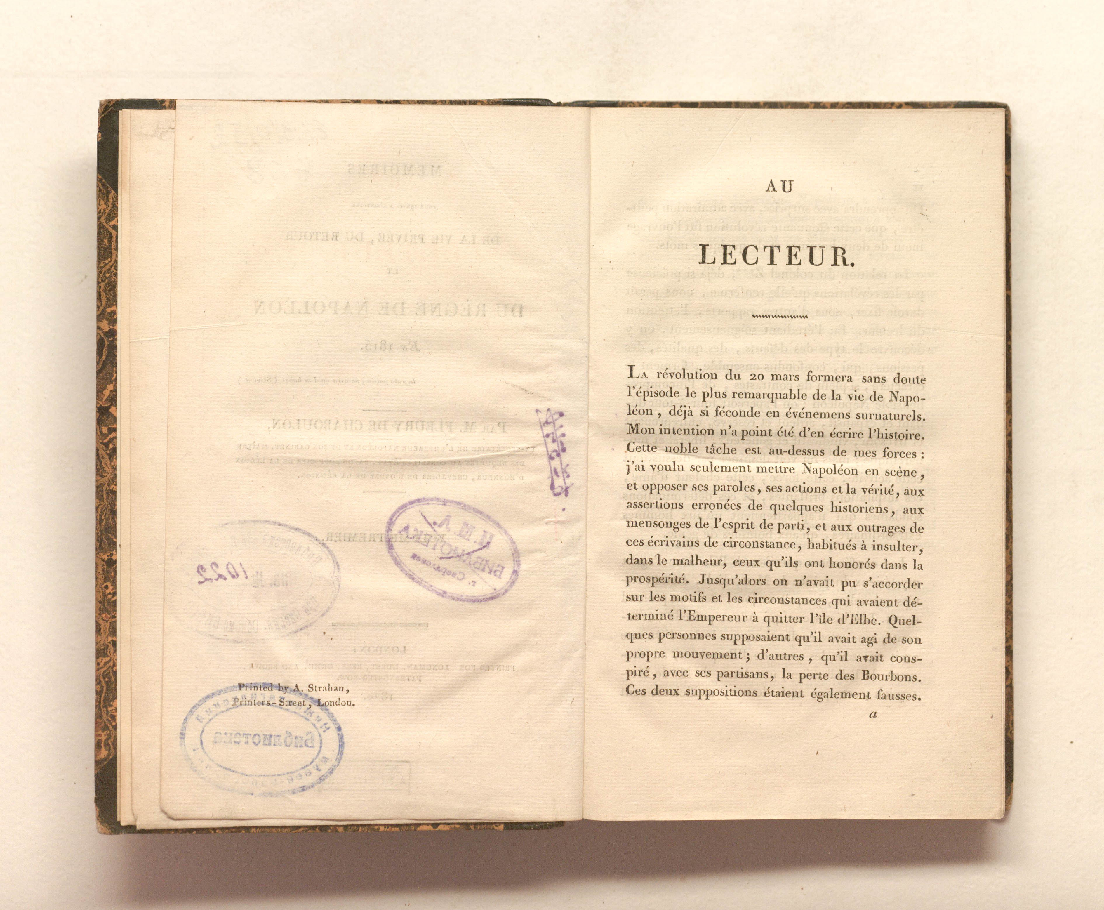 Флёри де Шабулон, Пьер-Александр-Эдуар. Записки, служащие историей частной жизни, возвращения и правления Наполеона в 1815 году… Том первый. - Лондон: Лонгман, Хёрст, Риз, Орме и Браун, 1820 - XI, 420 с.; 12,5х20 см.