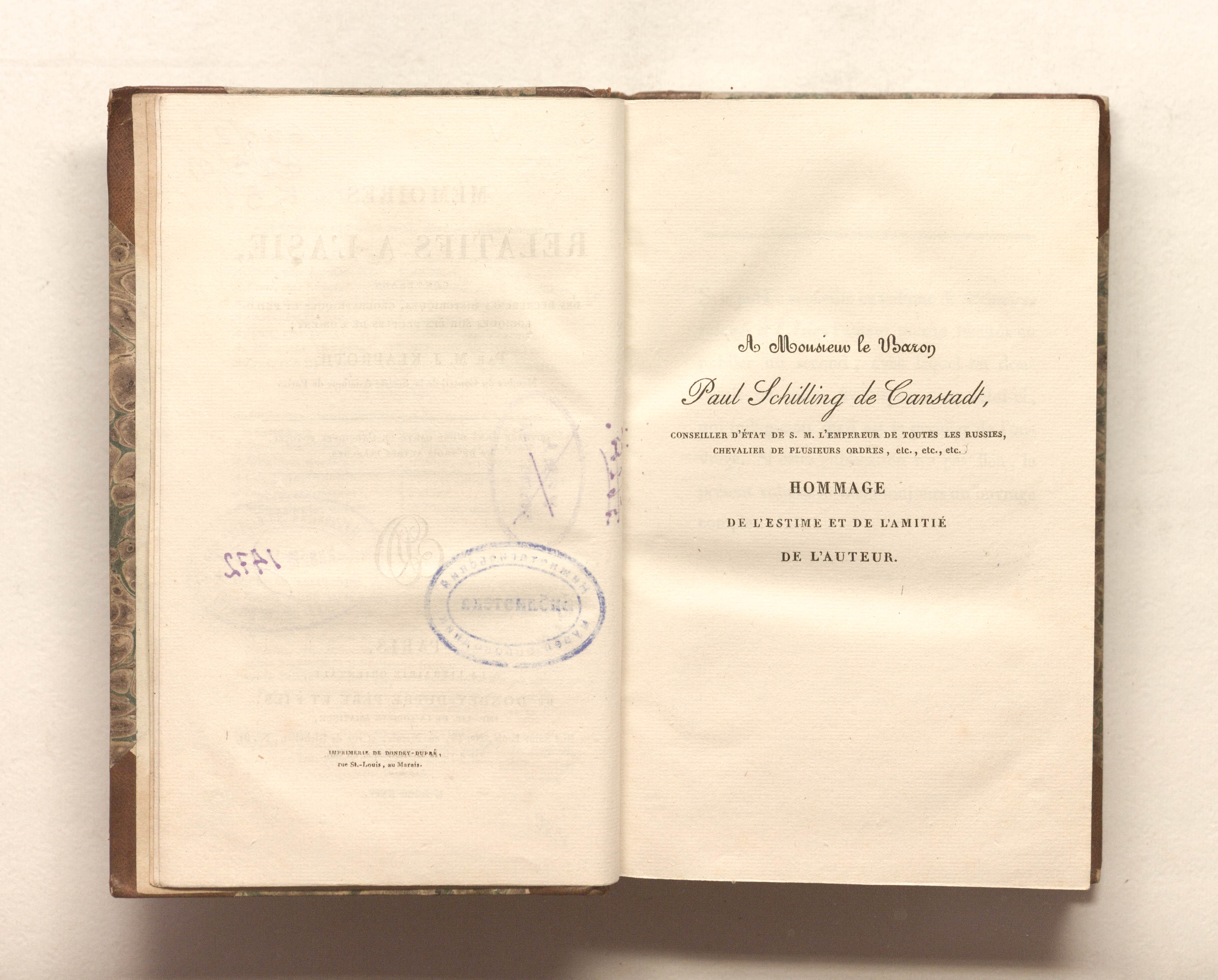 Memoires relatifs a l'Asie, contenant des recherches historiques, geographiques et philologiques sur les peuples de l'Orient. - Paris: Dondey-Dupre pere et fils, 1824. - [7], 479 p., 3 pl., carte. ; 13х20 cm.