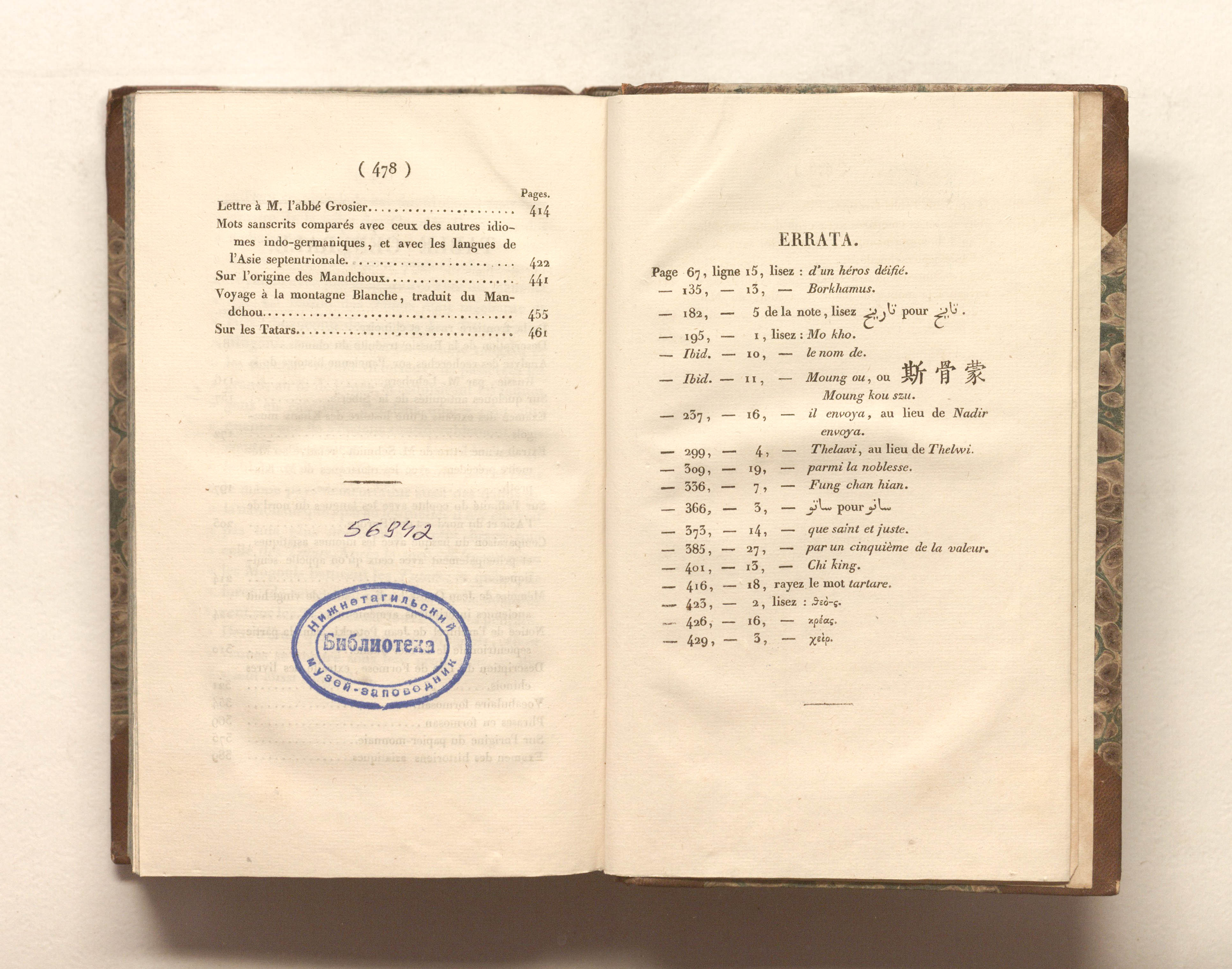 Сочинения, относящиеся к Азии, содержащие историко-географические и филологические исследования народов Востока. – Париж: Дондэ-Дюпре отец и сын, 1824. — [7], 479 с., 3 ил., карт.; 13х20 см.