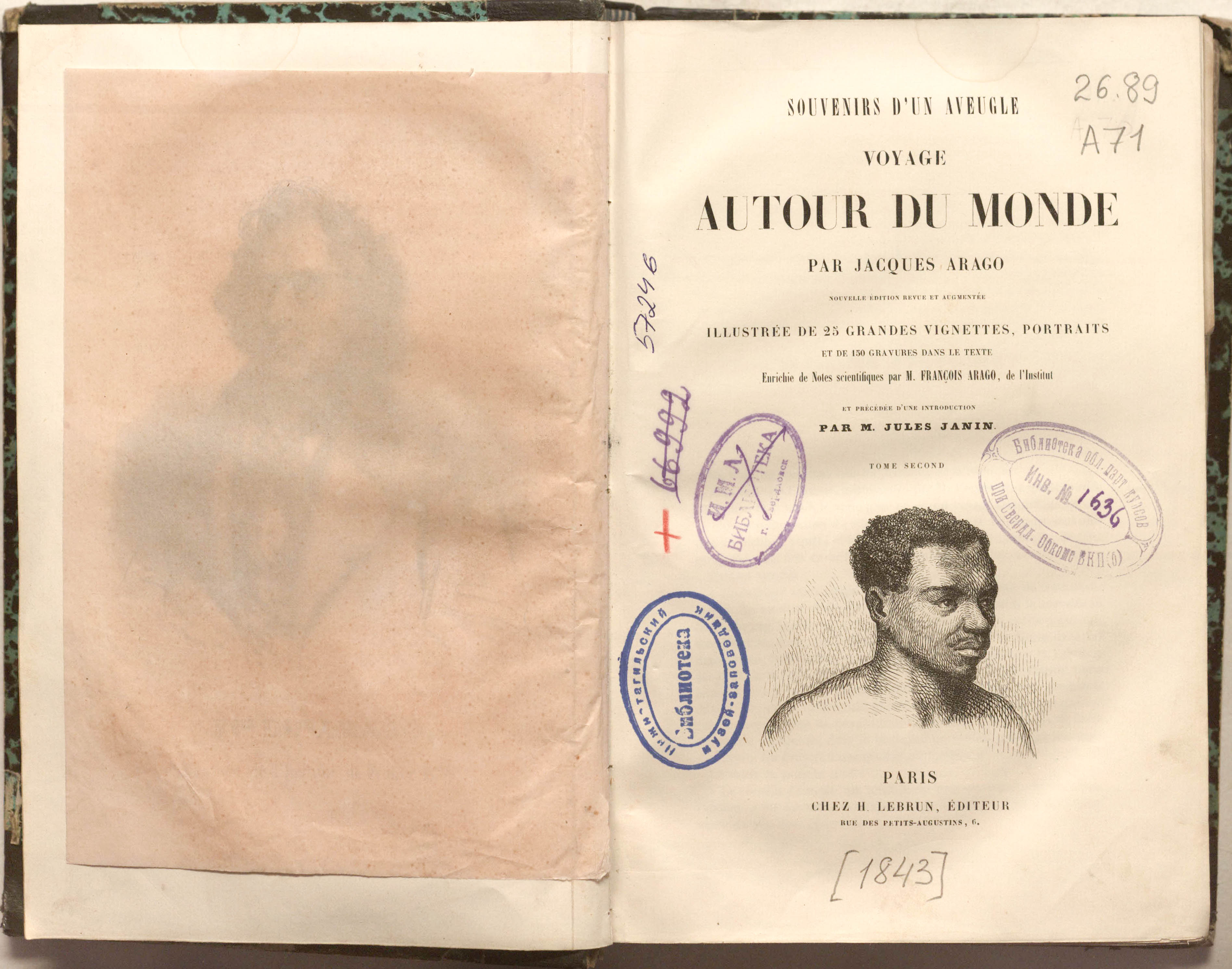 Souvenirs d'un aveugle: Voyage autour du monde. - Nouvelle ed. – 2 t. – T. 2. - Paris : Lebrun, [1843]. - 439, XXIV, [4] p. : grav. front., ill. 16x23,5 cm.
