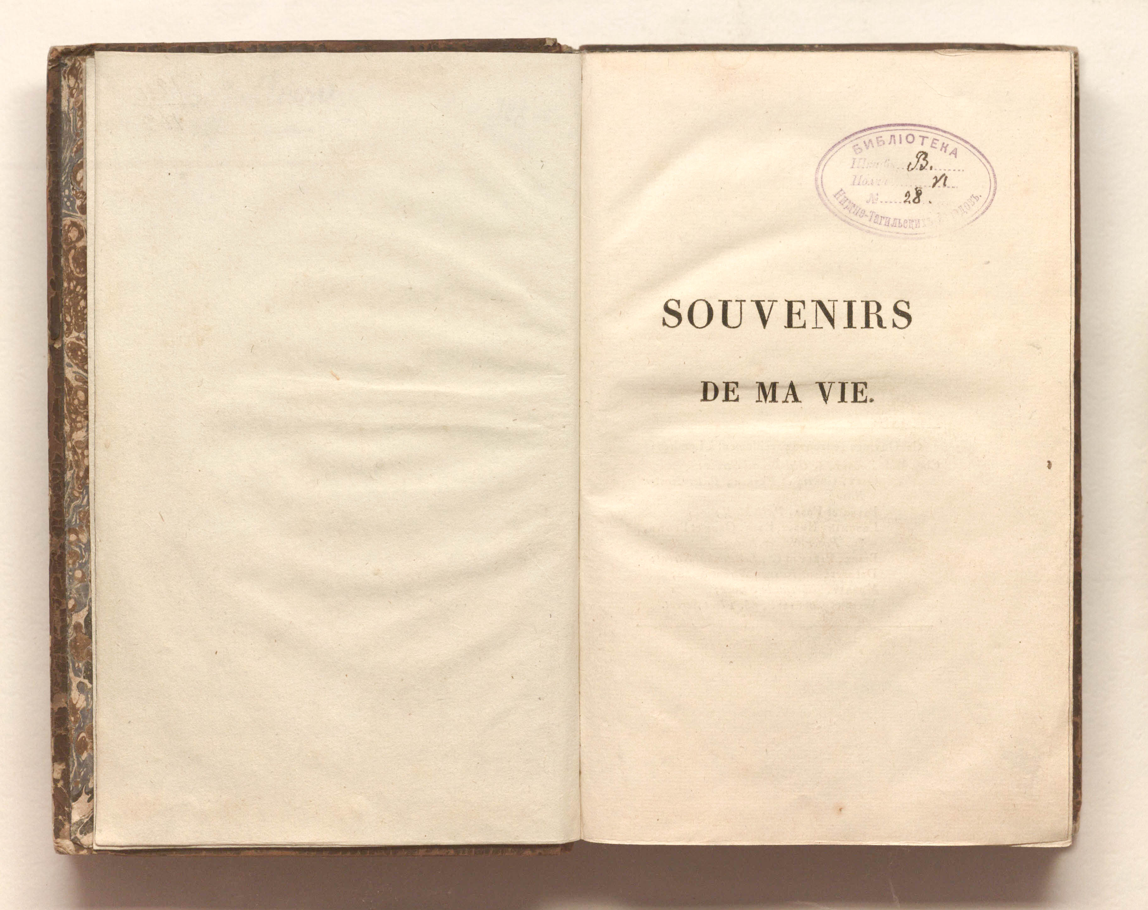 "Библиотека Нижне-Тагильских заводов" Шкаф B. Полка VI. №28"» (авантитул);