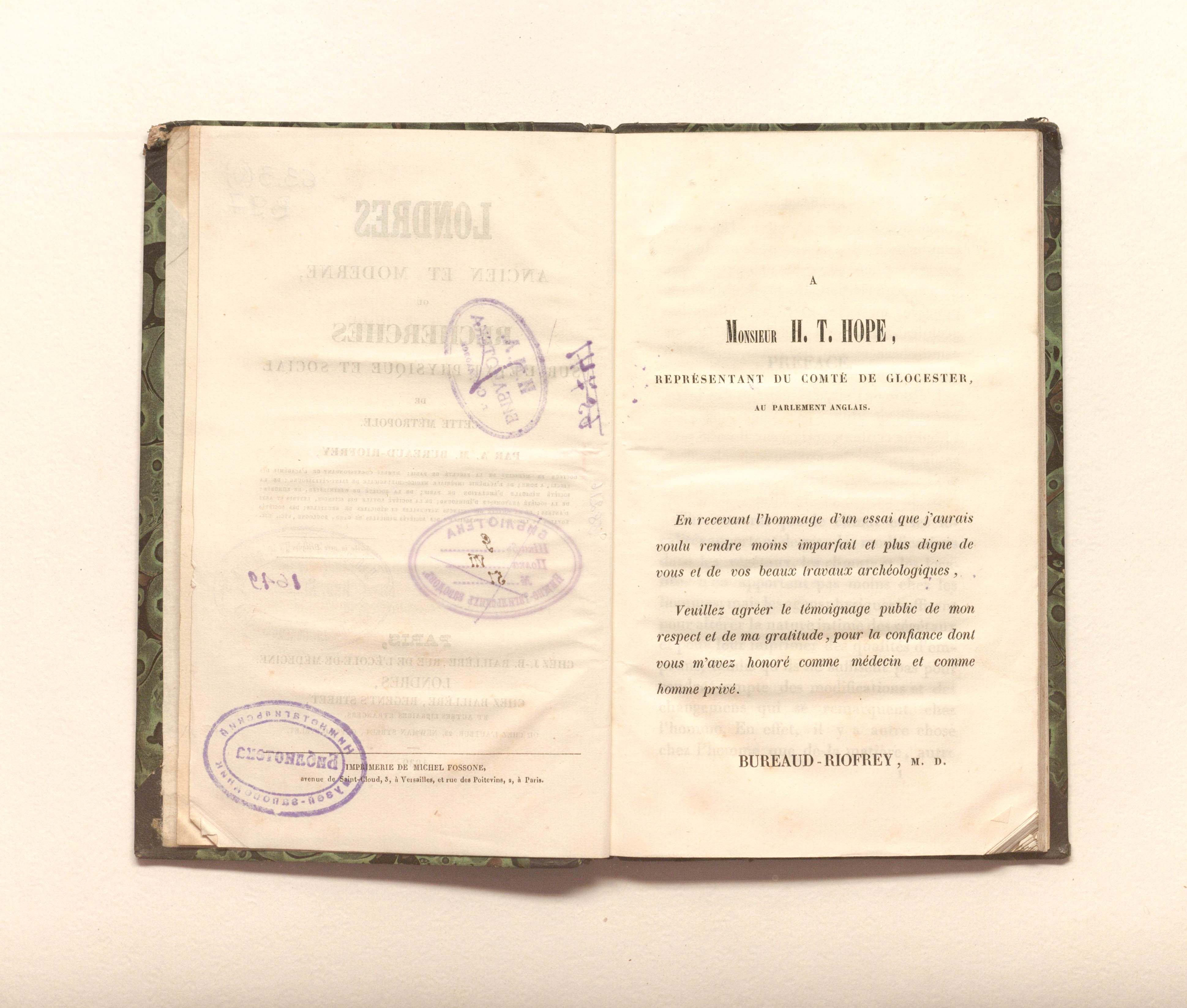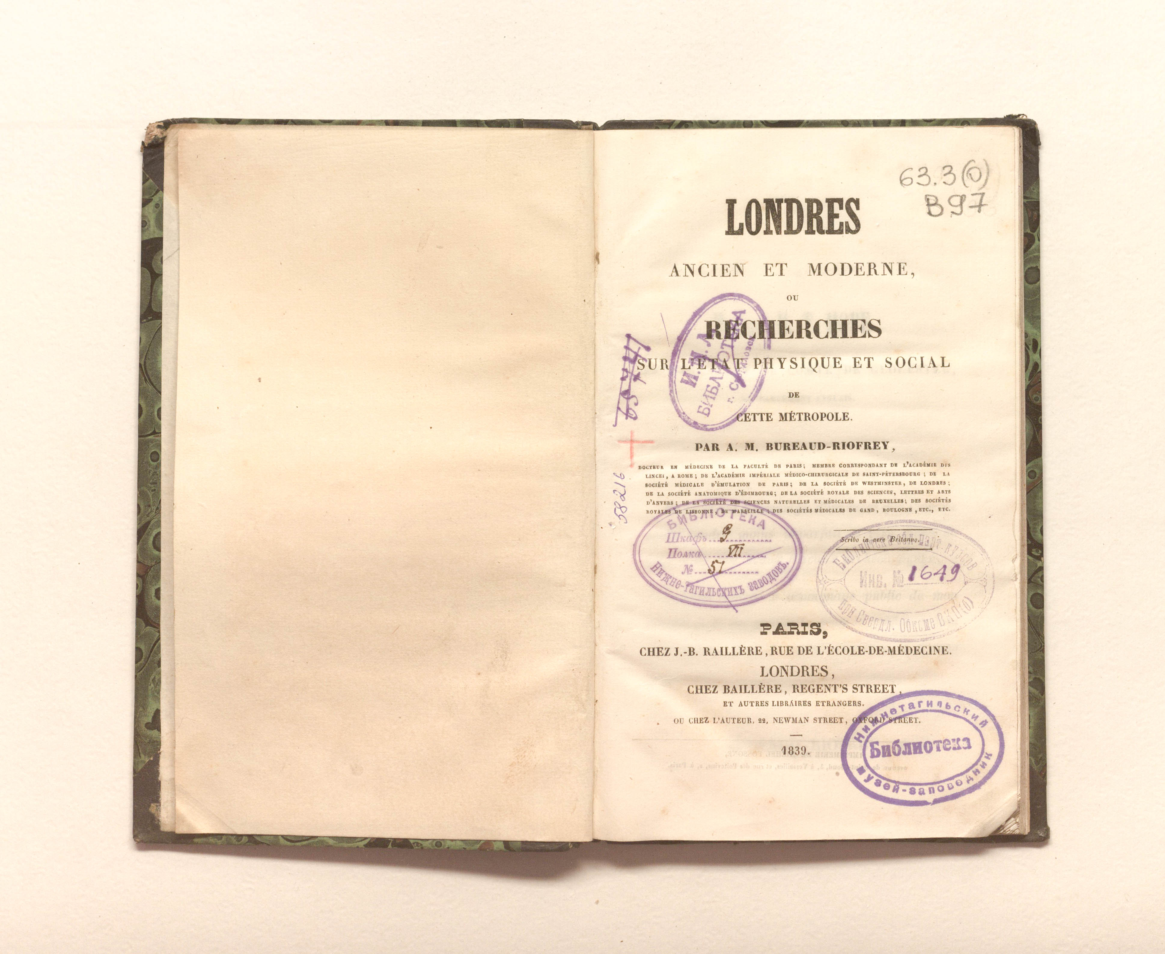 Бюро-Риофрэ, Антуан-Мартен. Древний и современный Лондон, или Исследование физического и социального состояния этого мегаполиса. – Париж: Ж.-Б. Байер, 1839. – XVI, 17-138 с. ; 20,5х12,5 см.