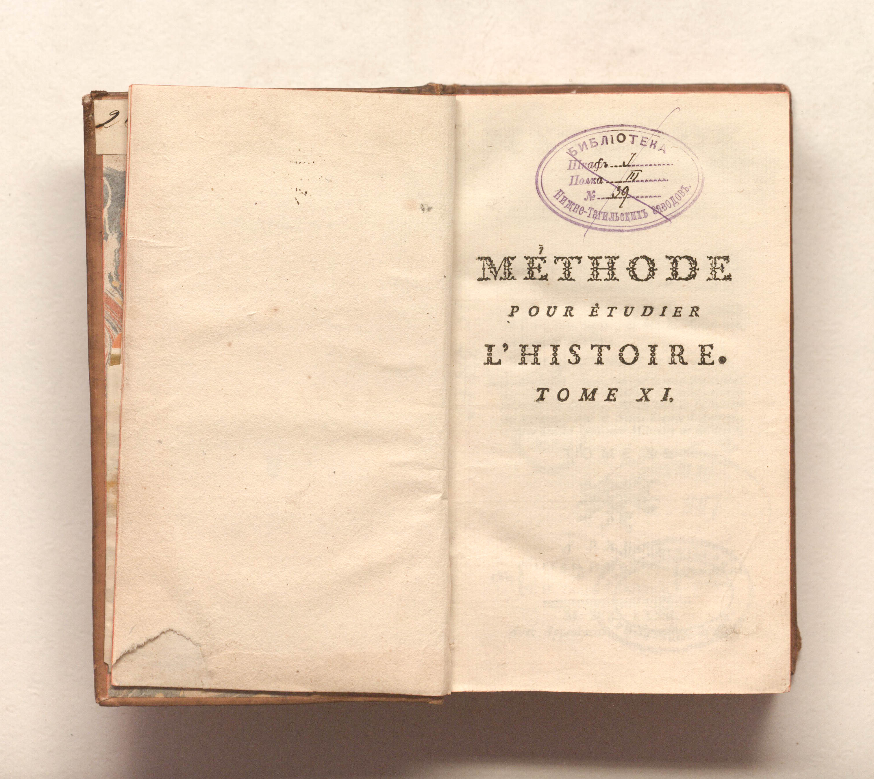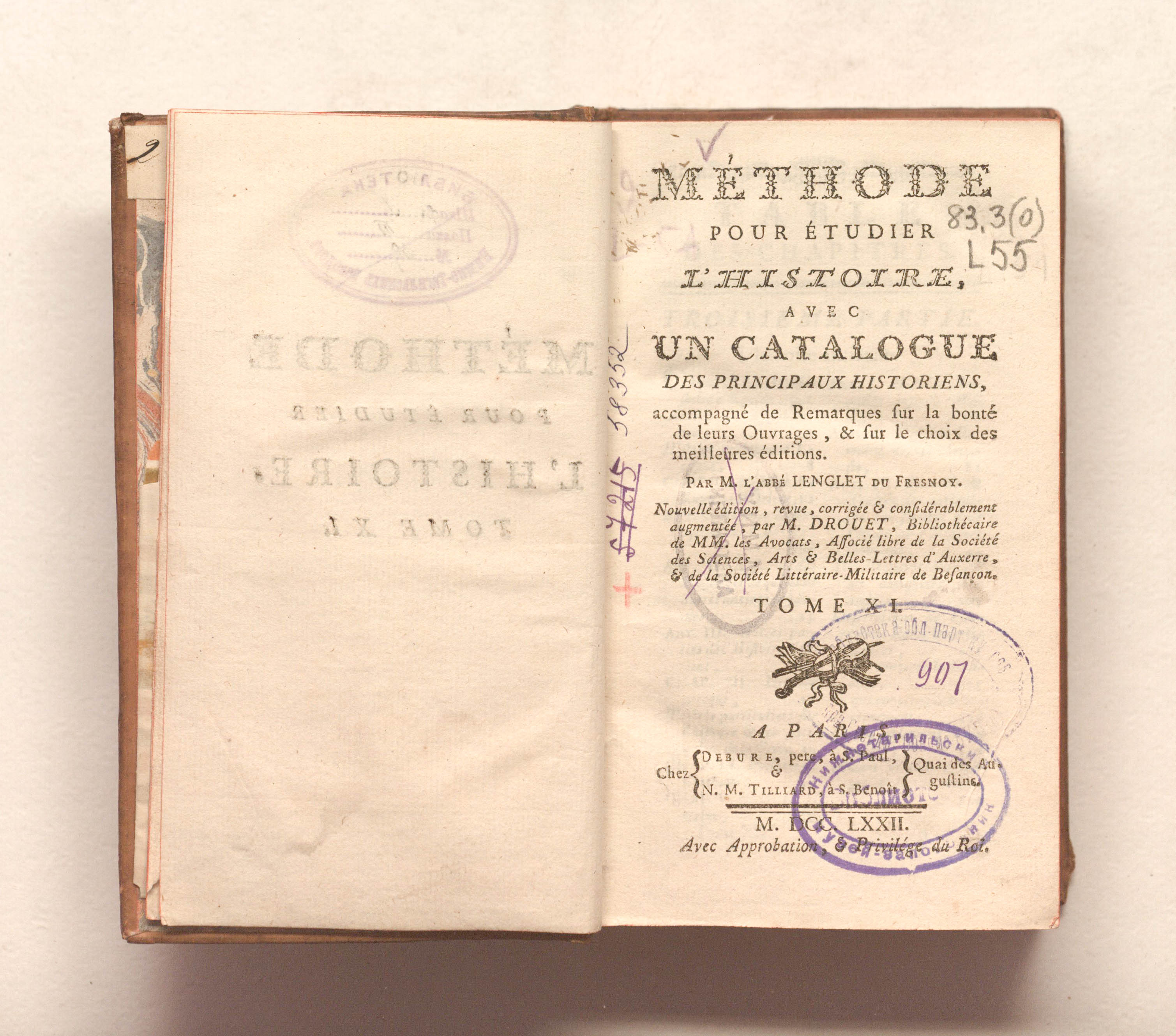 Метод изучения истории, с каталогом основных историков, сопровождаемым замечаниями о качестве их работ и выборе лучших изданий. Новое издание, переработанное, исправленное и значительно дополненное г-ном Друэ, ... Т.11. — Париж: Дебюр отец; Тийяр, 1772. — IV, 592 с.; 10х17 см.